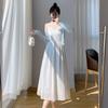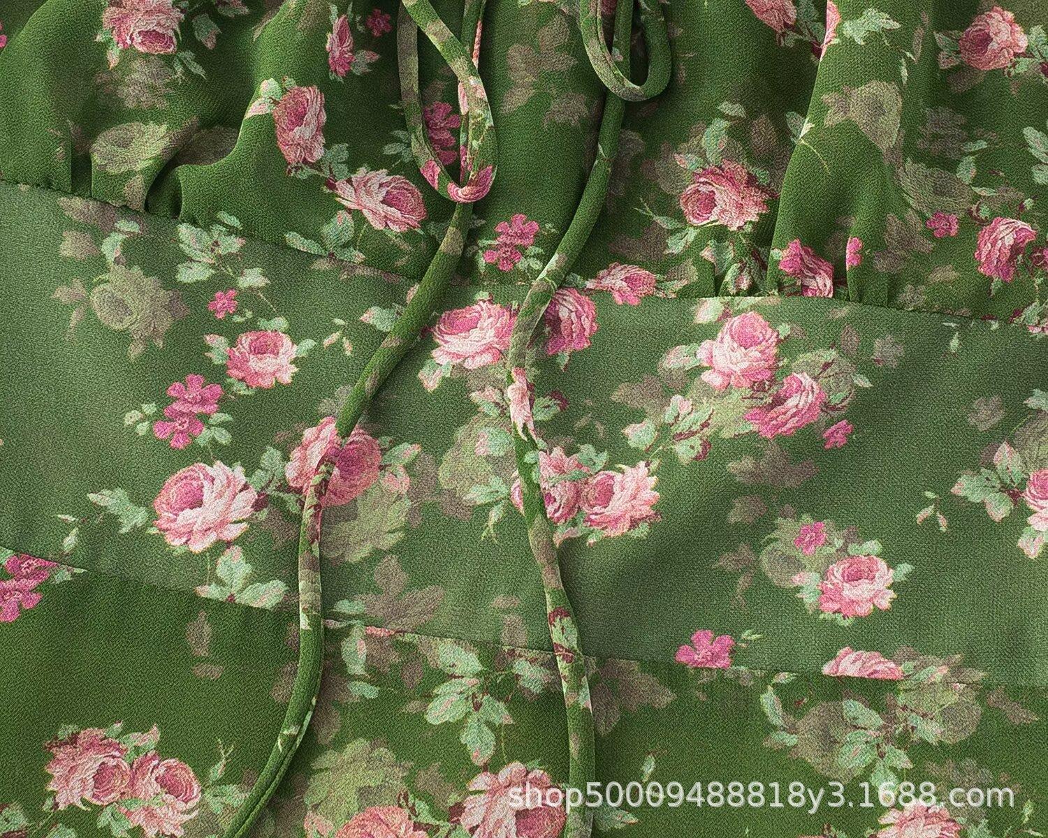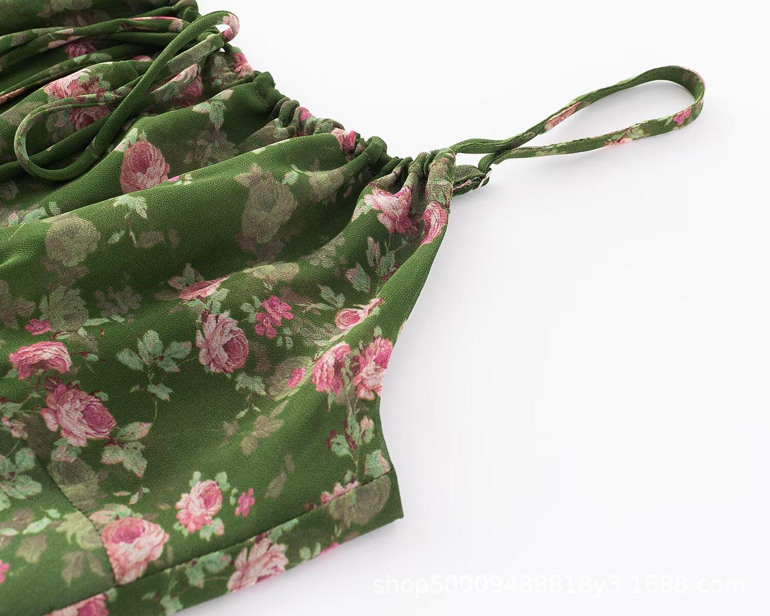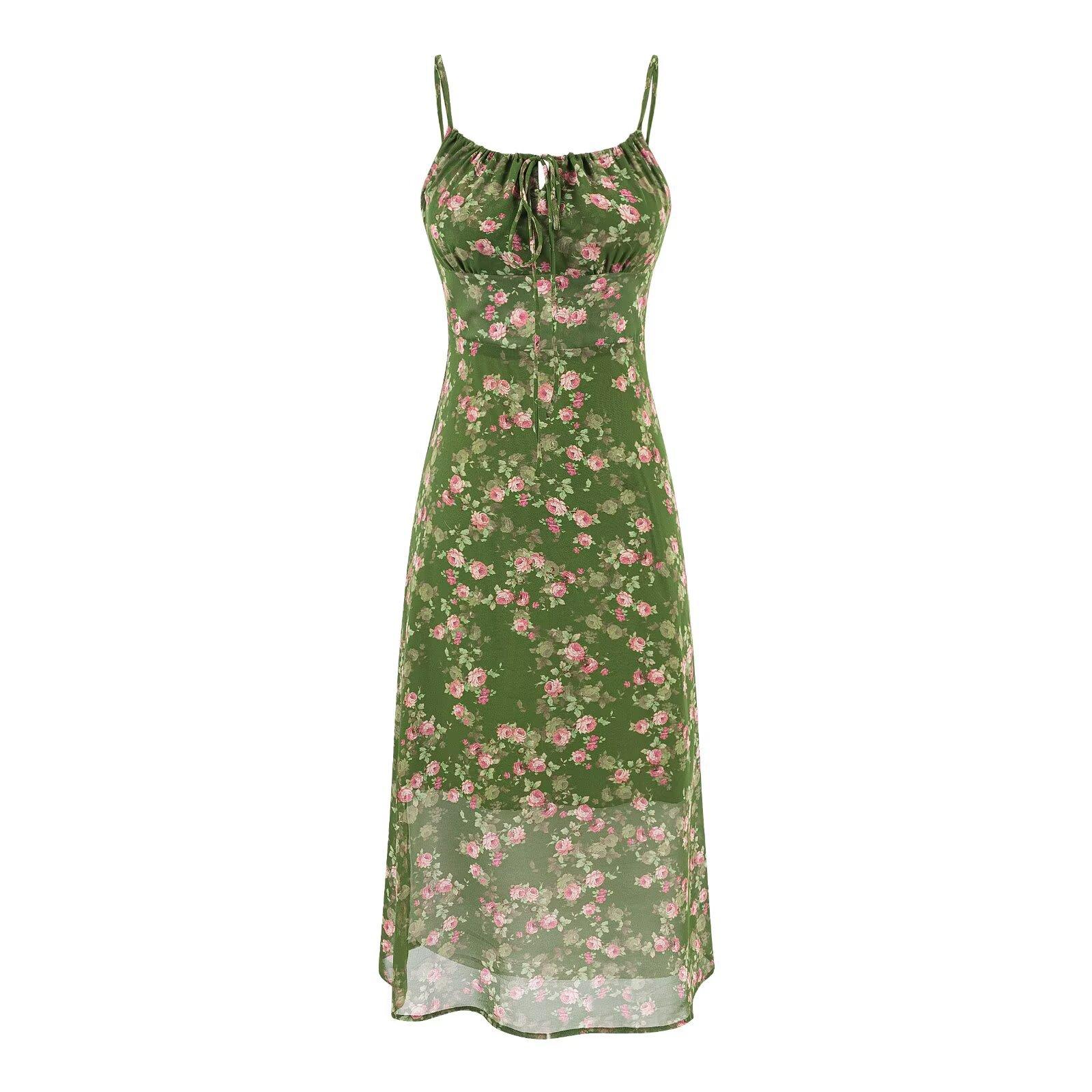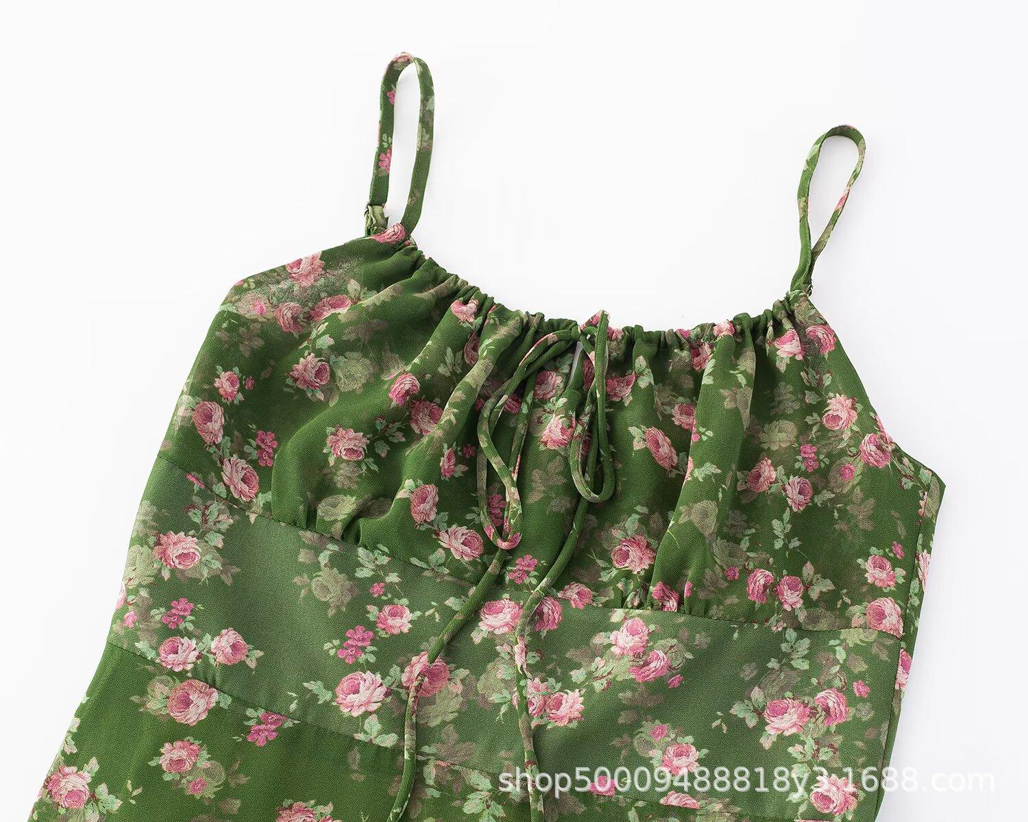 Vestido Dulce Floral de Estilo Francés con Tirantes Espagueti para Mujer, Nuevo Vestido de Verano Fresco Ajustado con Lazo para Vacaciones de Largo Medio