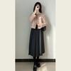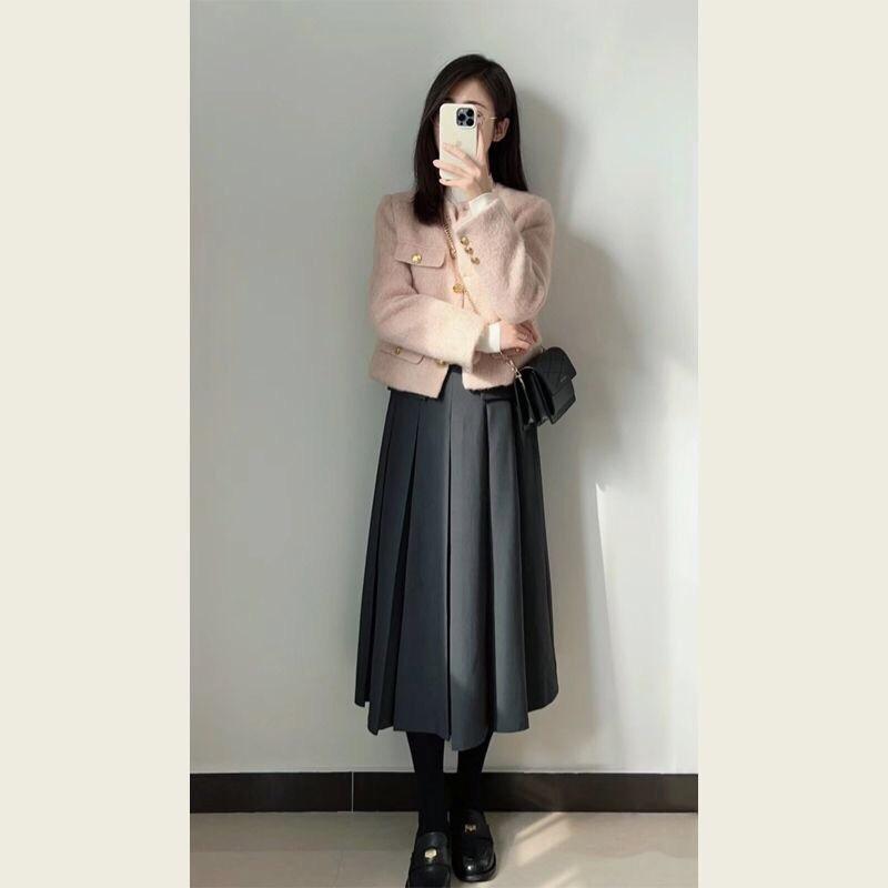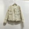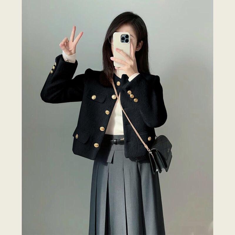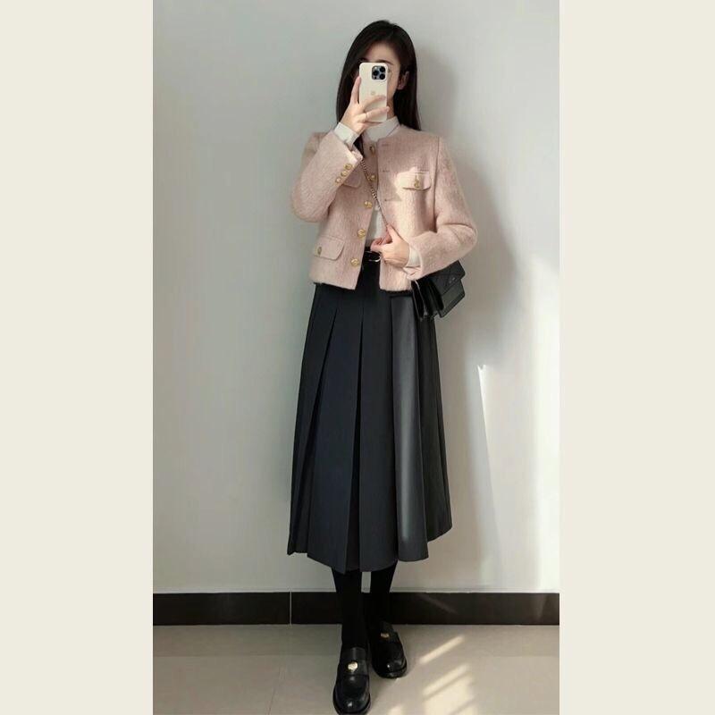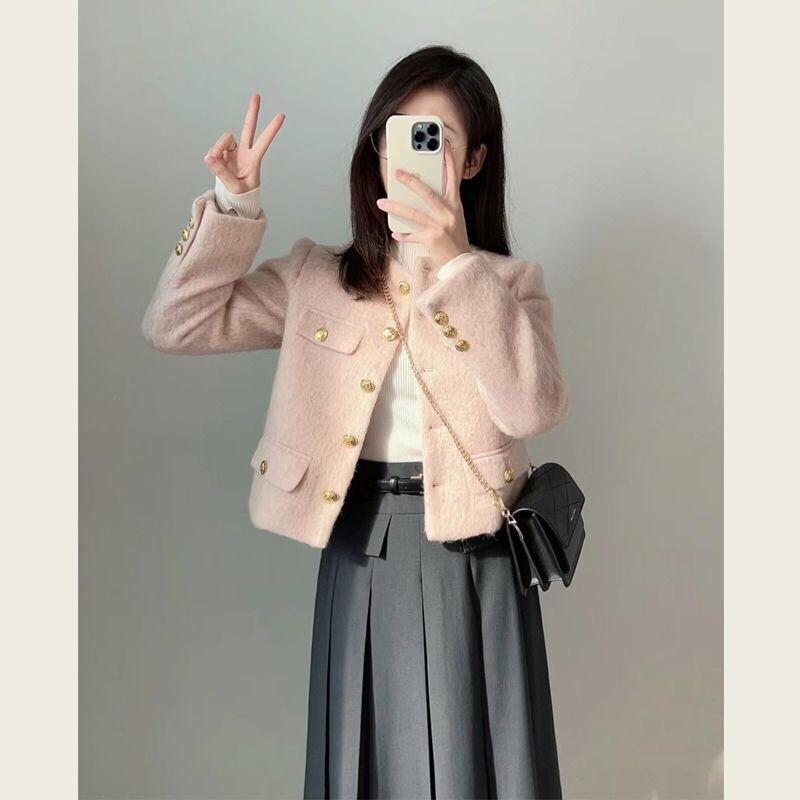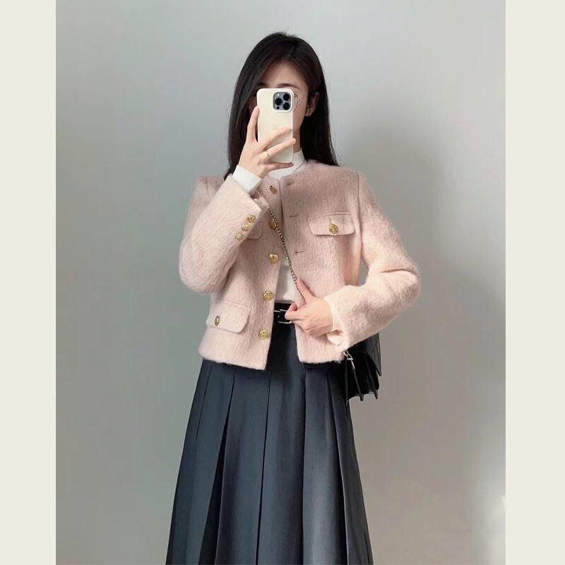 Abrigo de Lana Elegante de Alta Gama Estilo Petite Otoño e Invierno Rosa Chaqueta Corta de Lana Estilo Chanel para Mujer