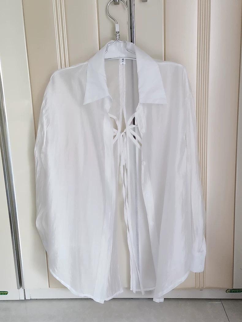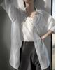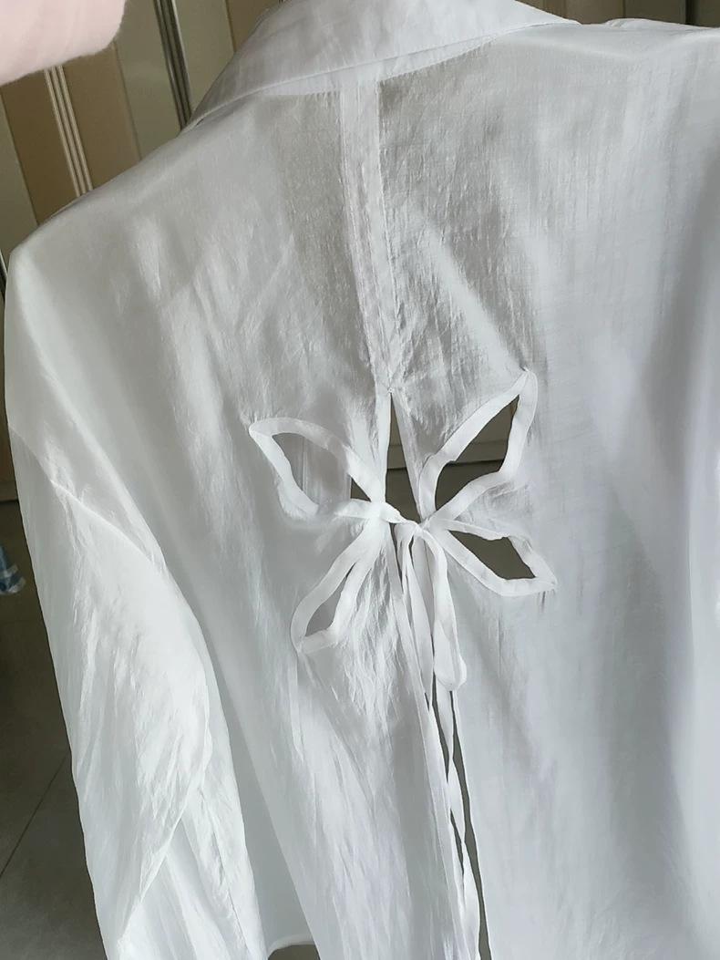 Camisa Tencel Chifón con Abertura Trasera para Mujer Verano Cárdigan Delgado Chaqueta Sentido del Diseño Nicho Protección Solar Top Camisa para Aire Acondicionado