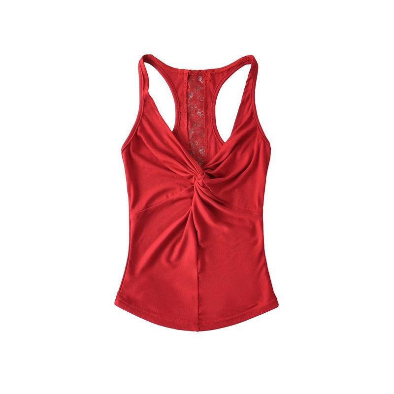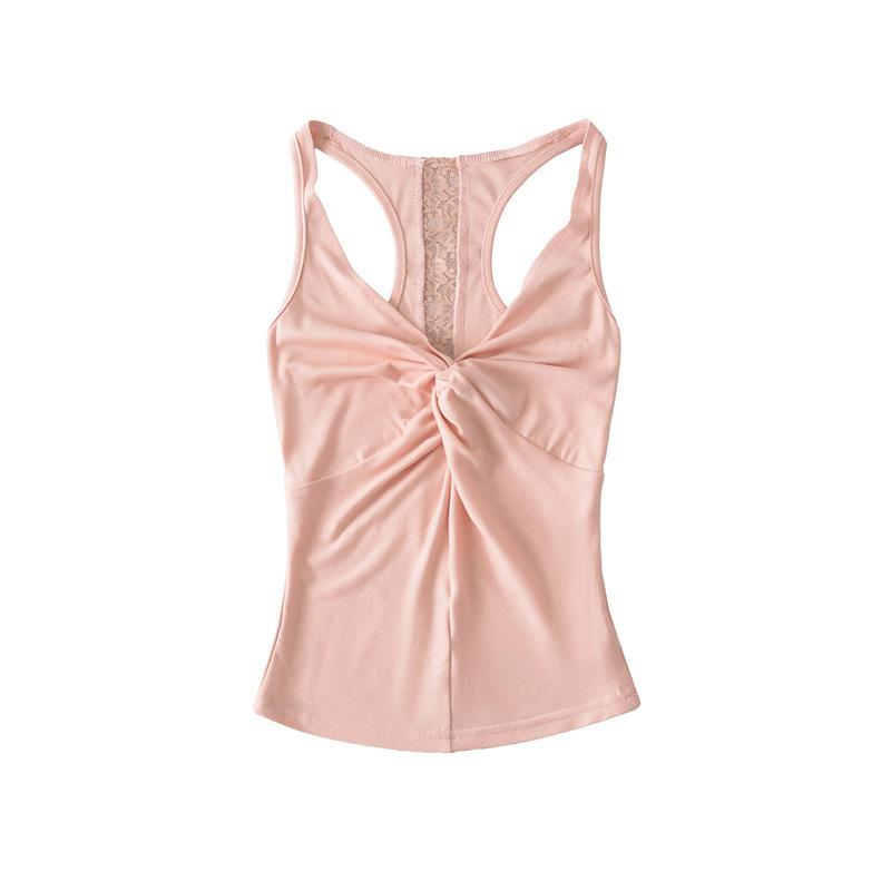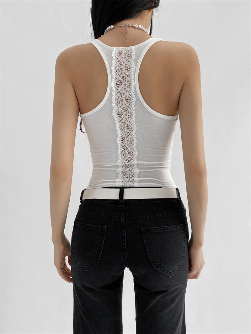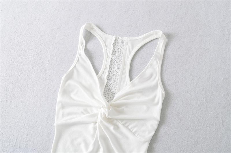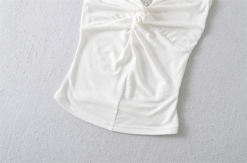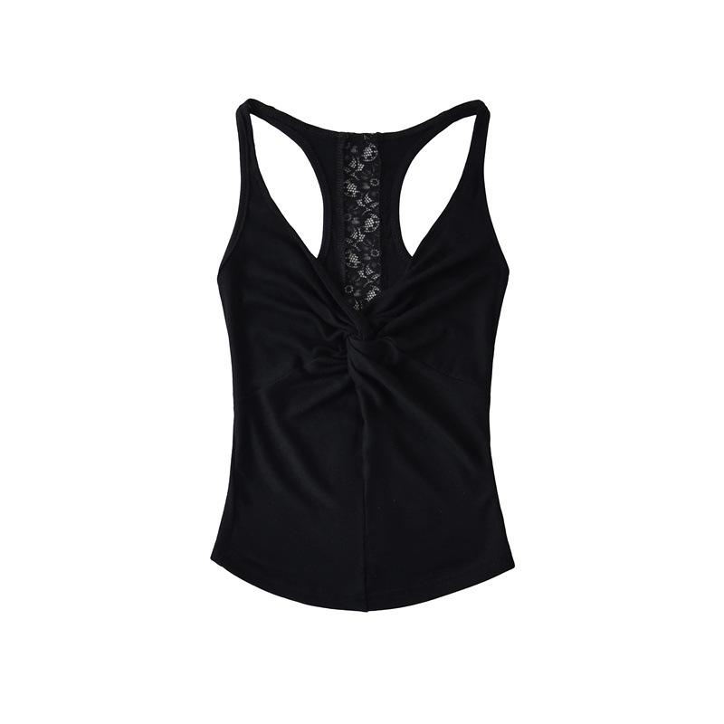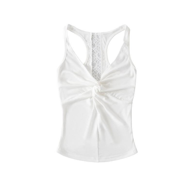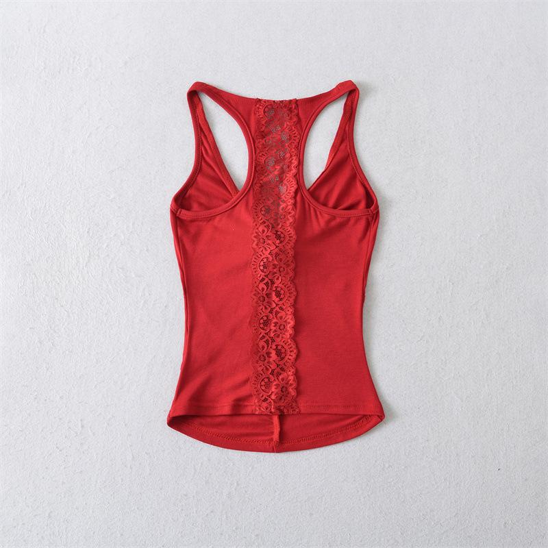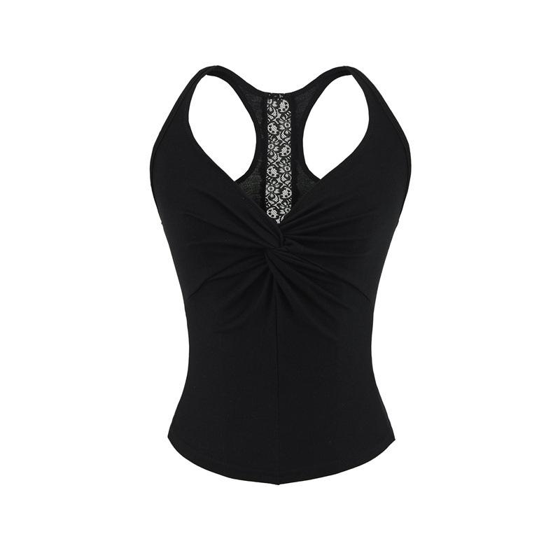 Estilo Deseo Puro Top Chaleco Verano Delgado Corto Sexy Tirantes Encaje Empalme Espalda Cuello V Torcido