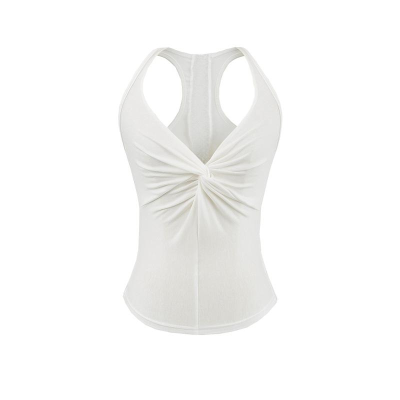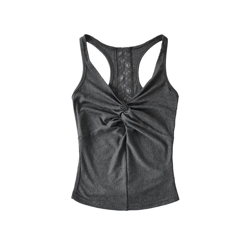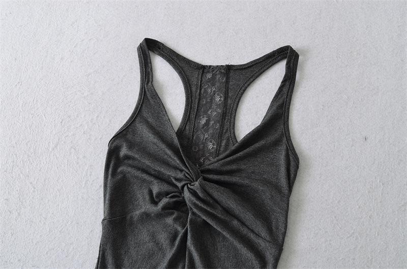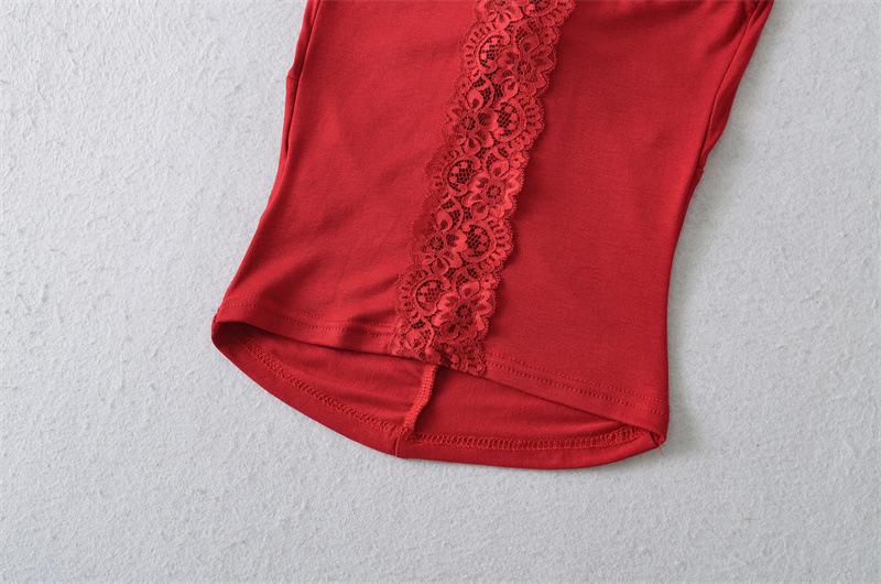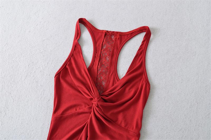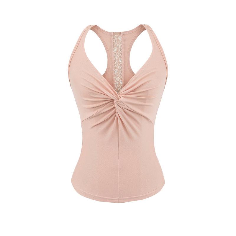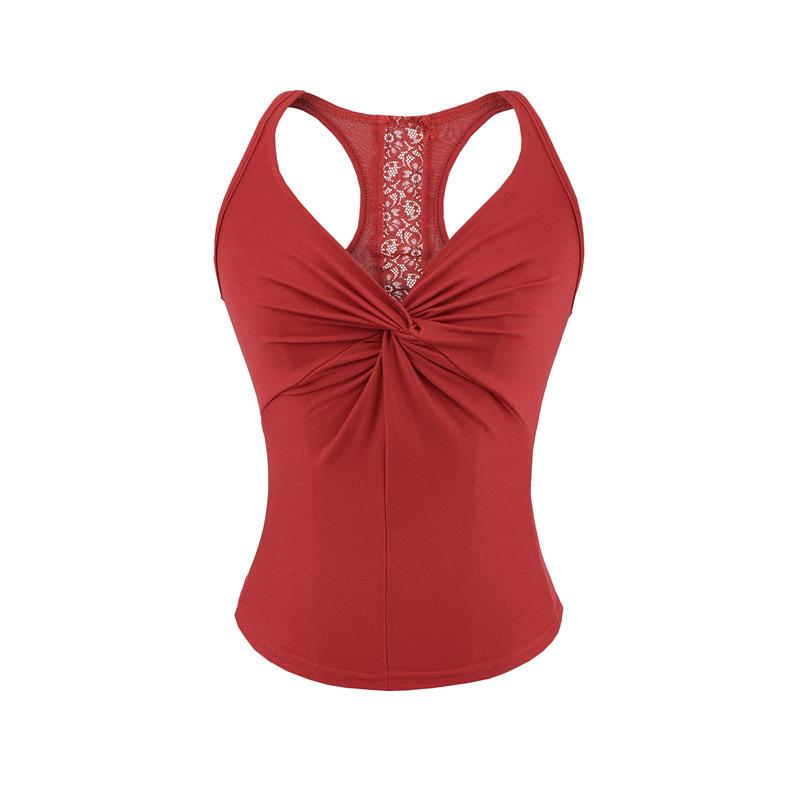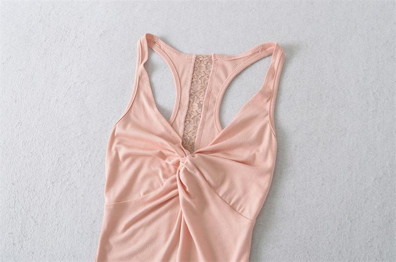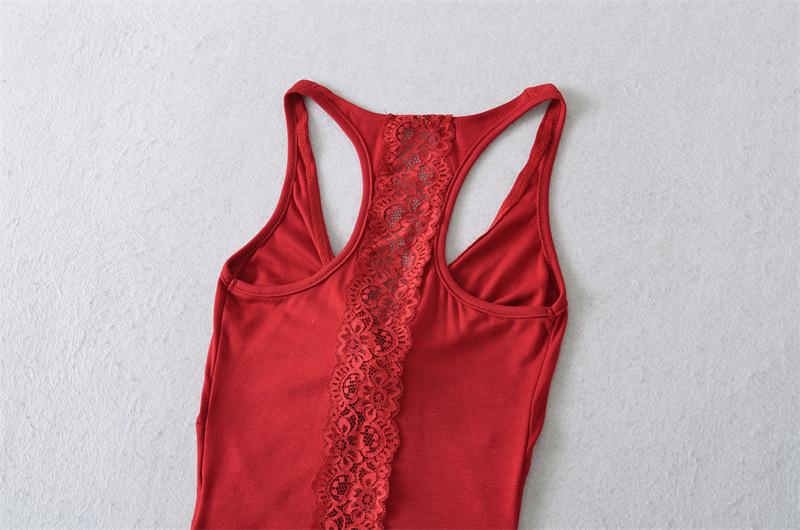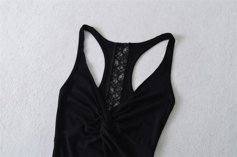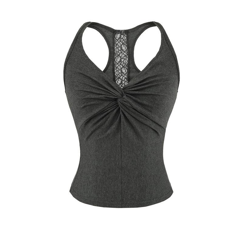 Estilo Deseo Puro Top Chaleco Verano Delgado Corto Sexy Tirantes Encaje Empalme Espalda Cuello V Torcido