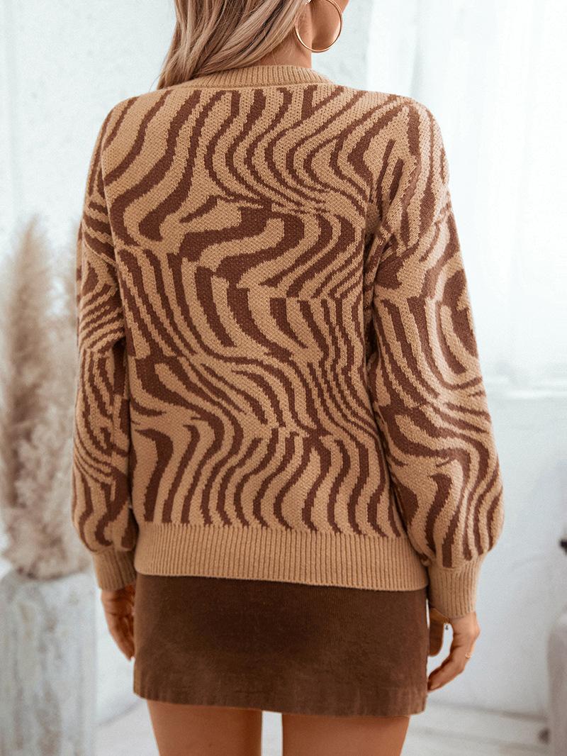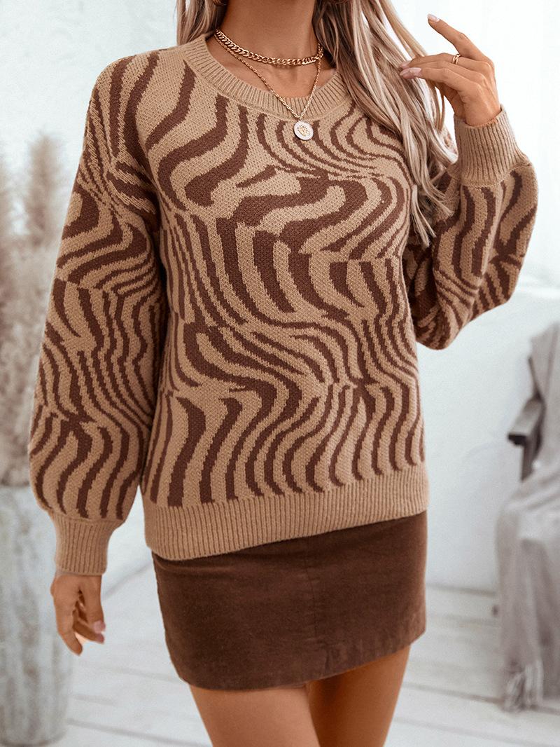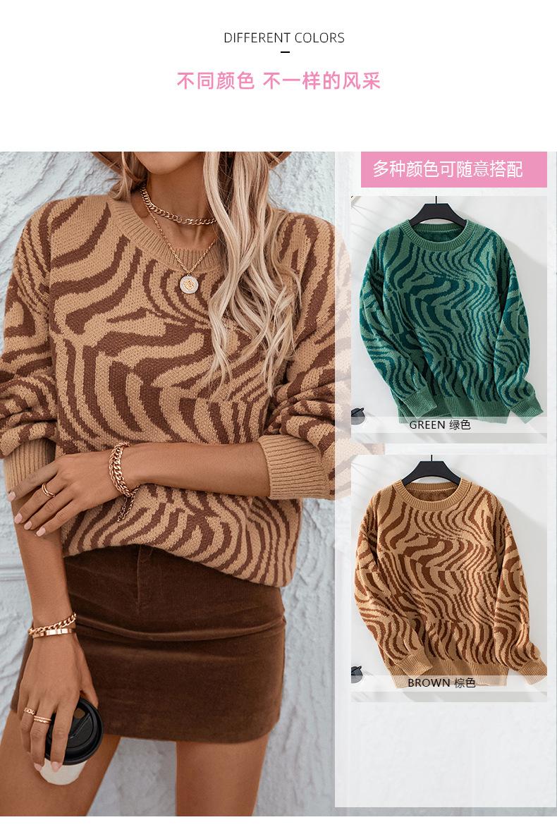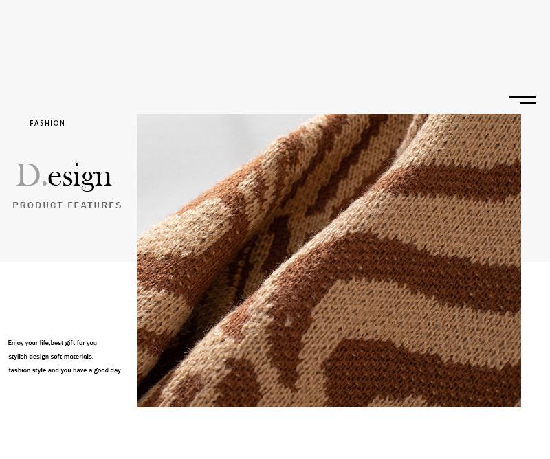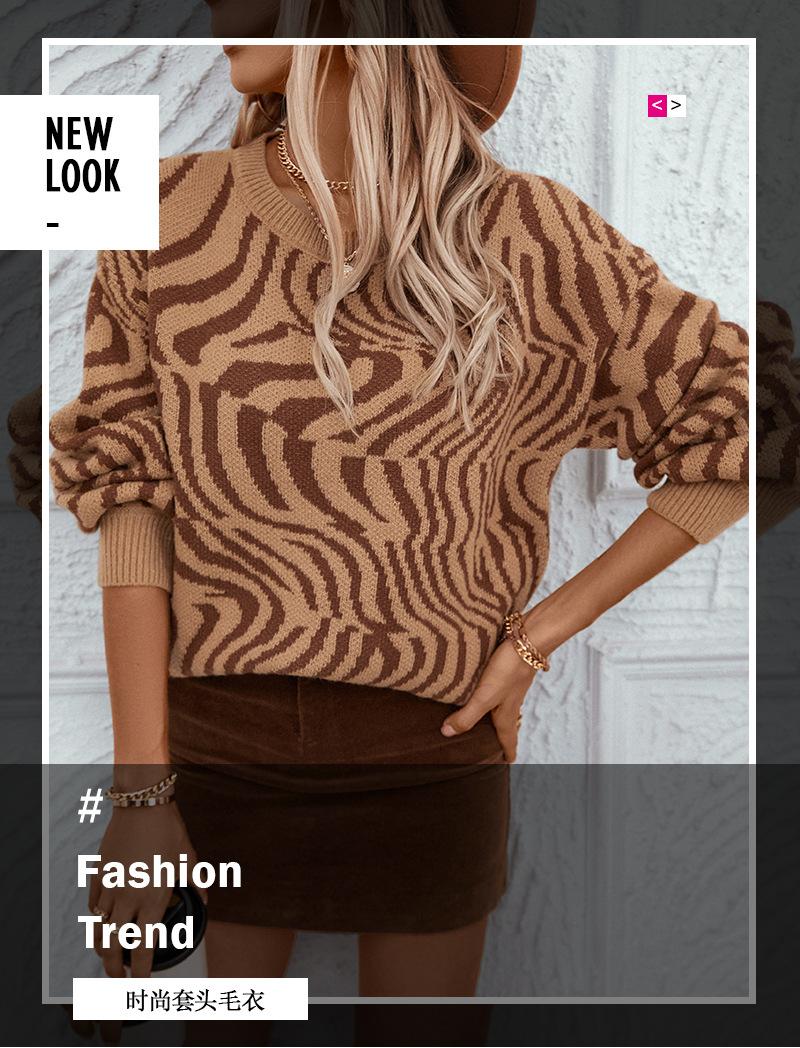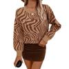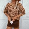 Suéter Transfronterizo para Mujer 2025 Otoño e Invierno Nuevo Amazon Comercio Exterior Cuello Redondo Jersey Estampado Leopardo Bloque de Color Estilo Europeo y Americano Manga Larga