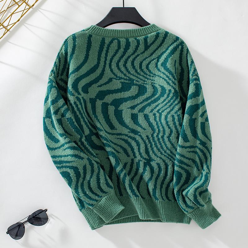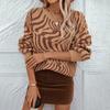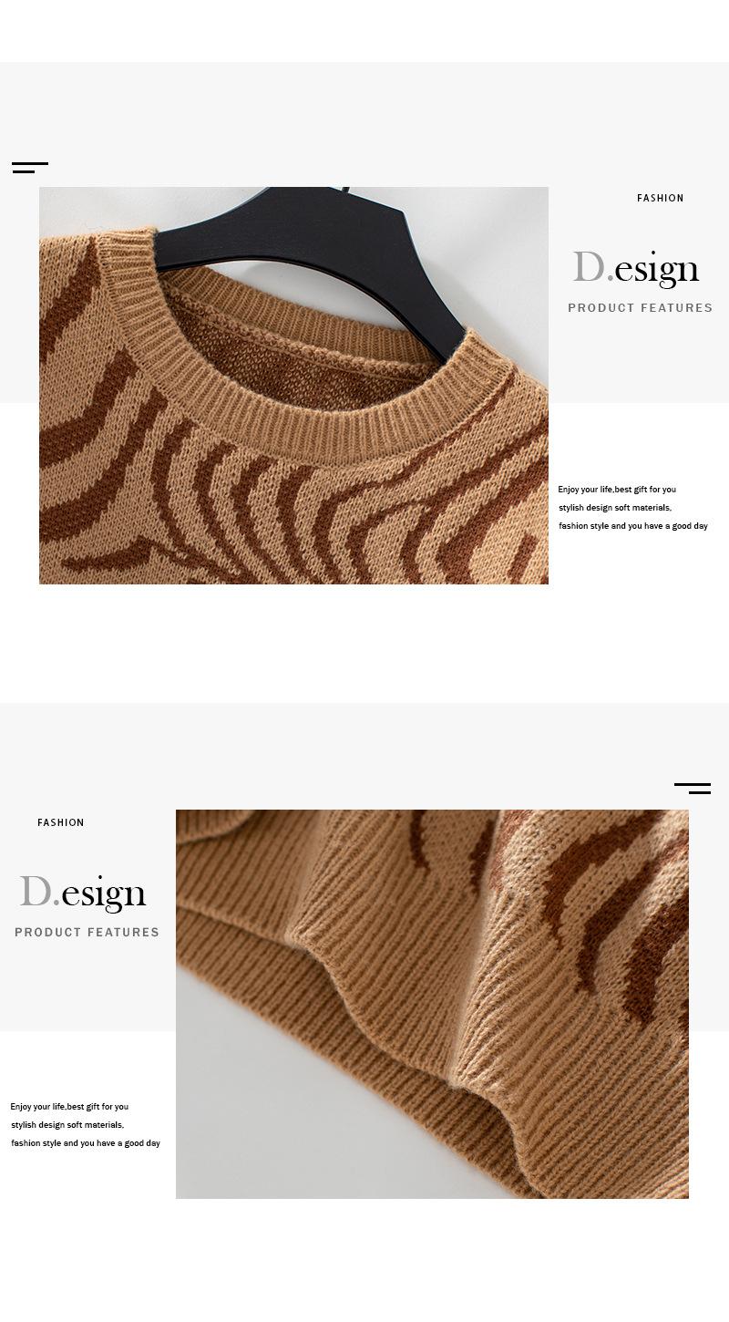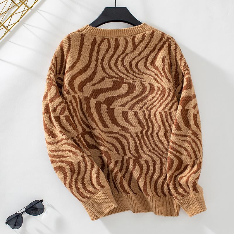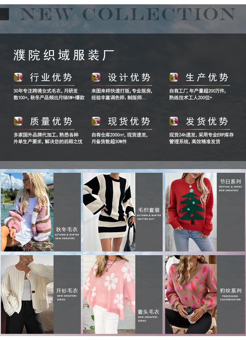 Suéter Transfronterizo para Mujer 2025 Otoño e Invierno Nuevo Amazon Comercio Exterior Cuello Redondo Jersey Estampado Leopardo Bloque de Color Estilo Europeo y Americano Manga Larga