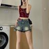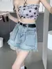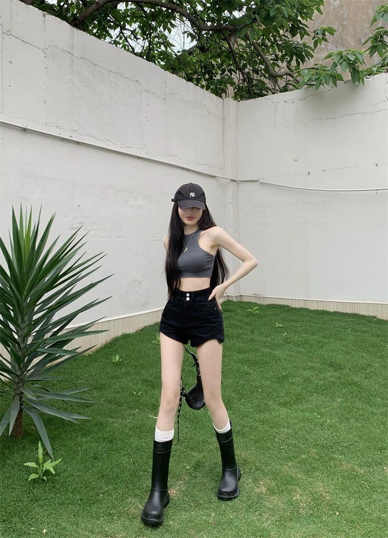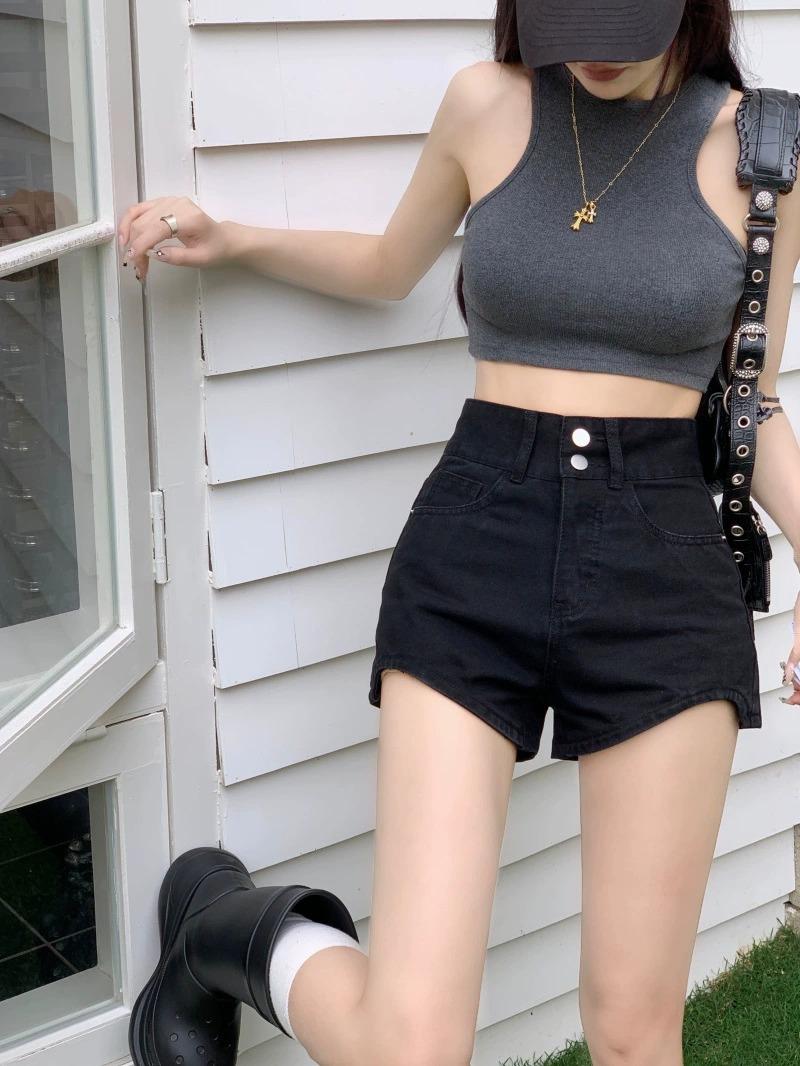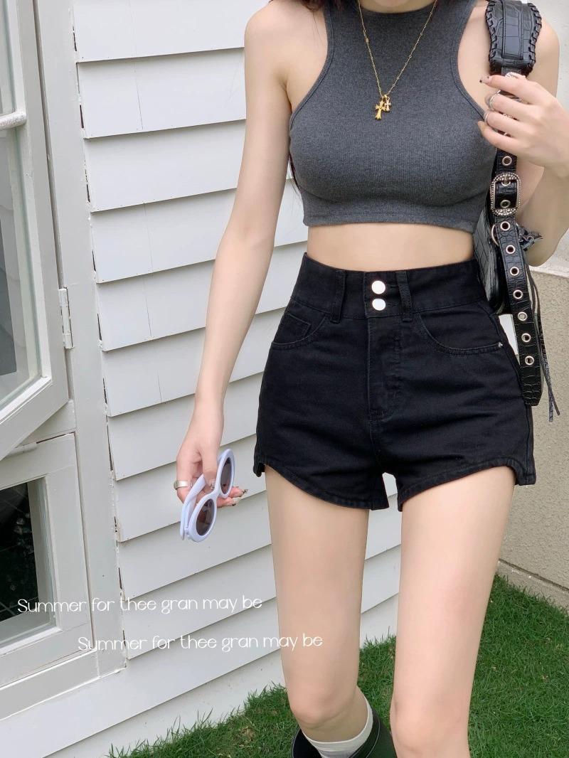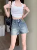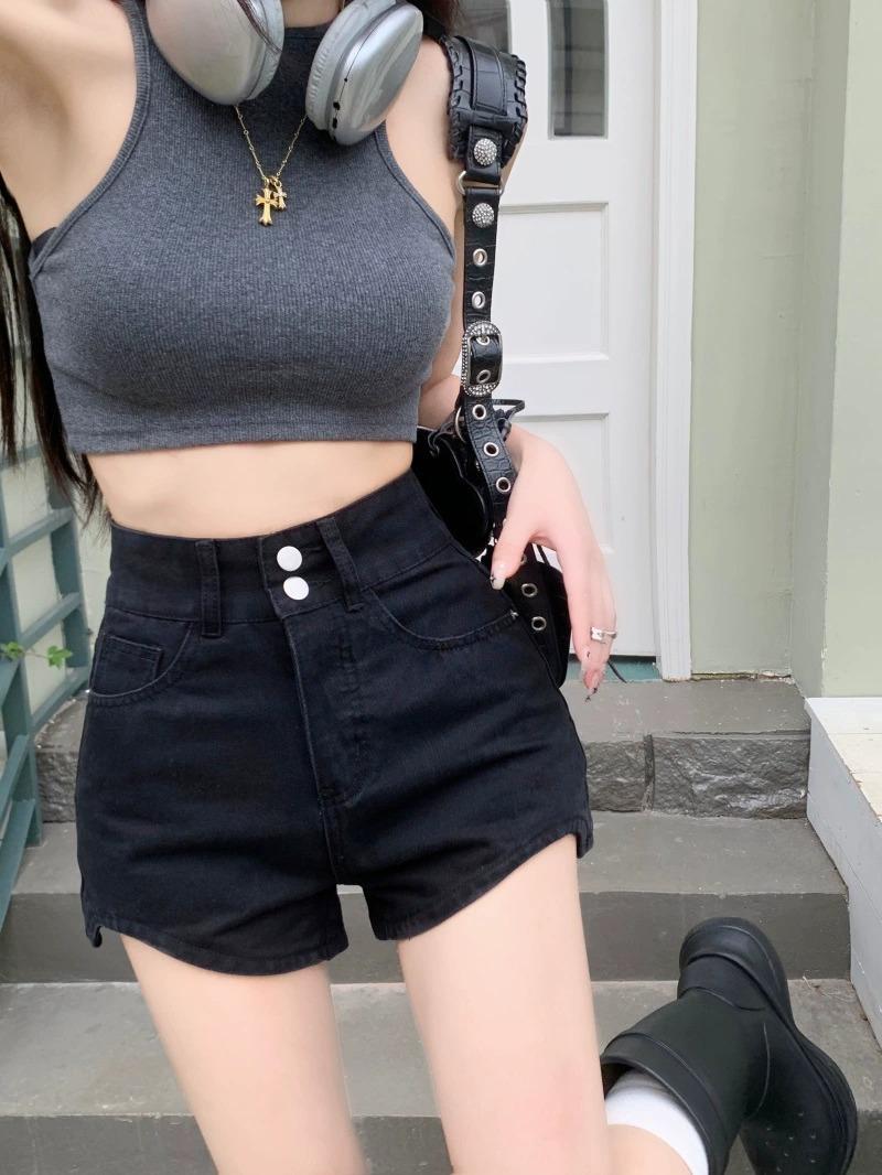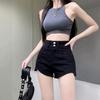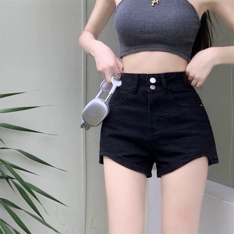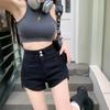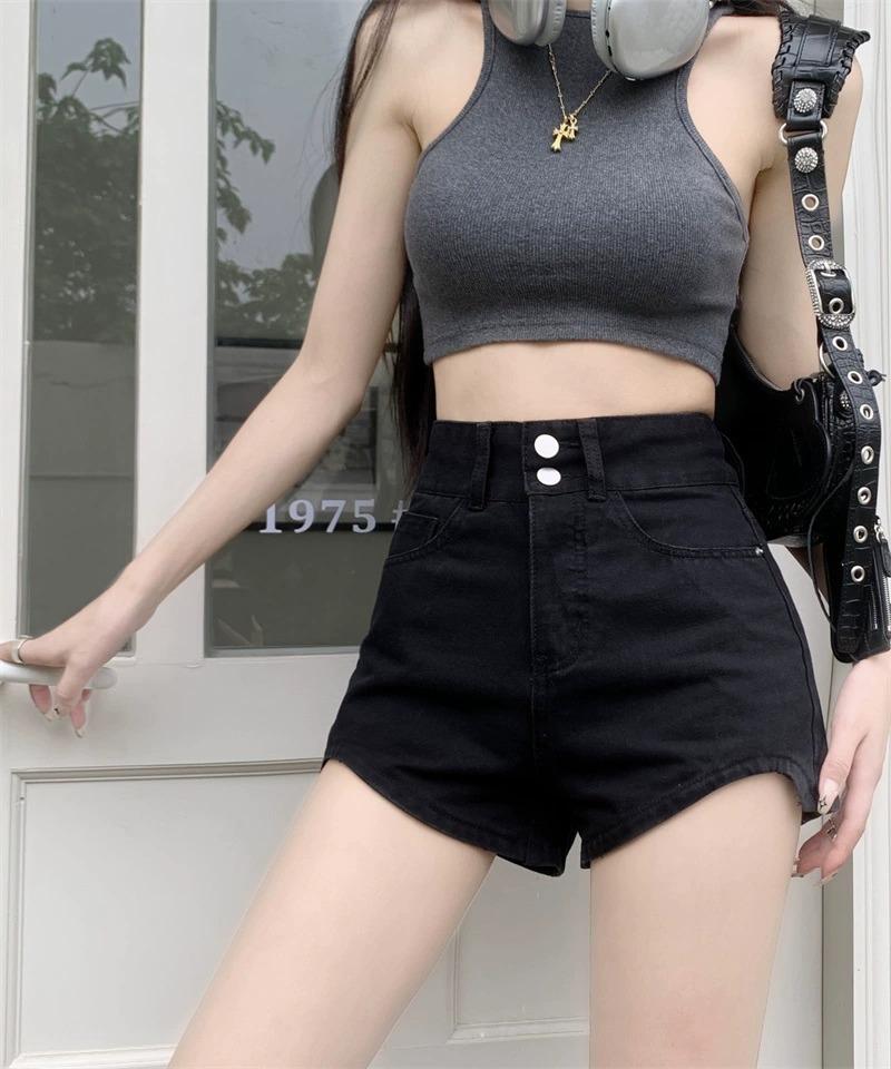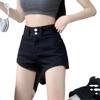 Pantalones cortos vaqueros negros de cintura alta para mujer, verano 2024, nuevo estilo Spice Girls, adelgazantes, elásticos, combinables, palabra A, pantalones cortos súper cortos, de moda.