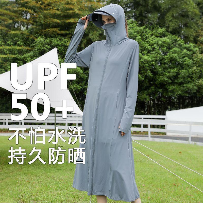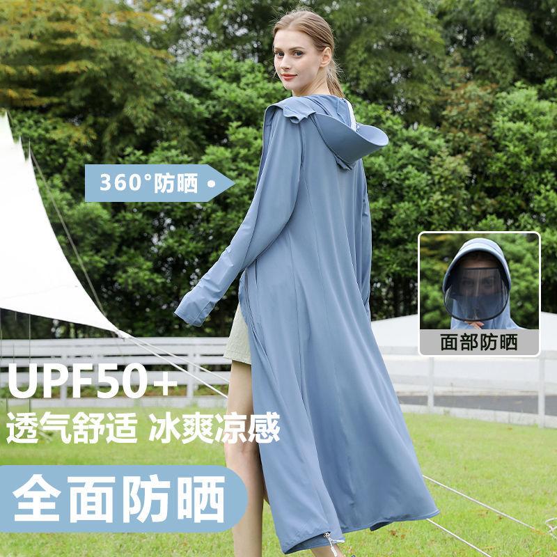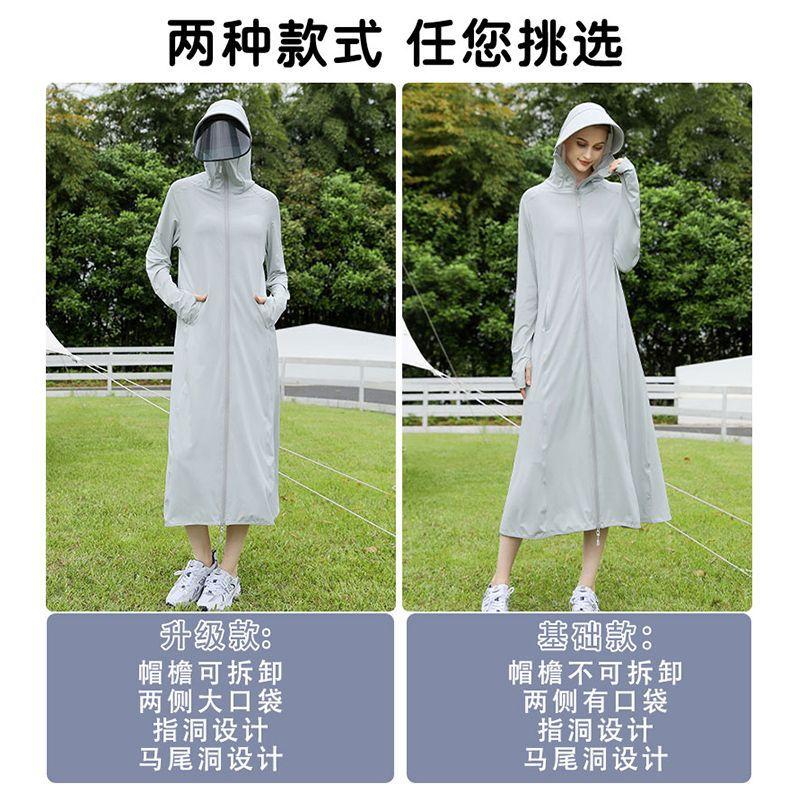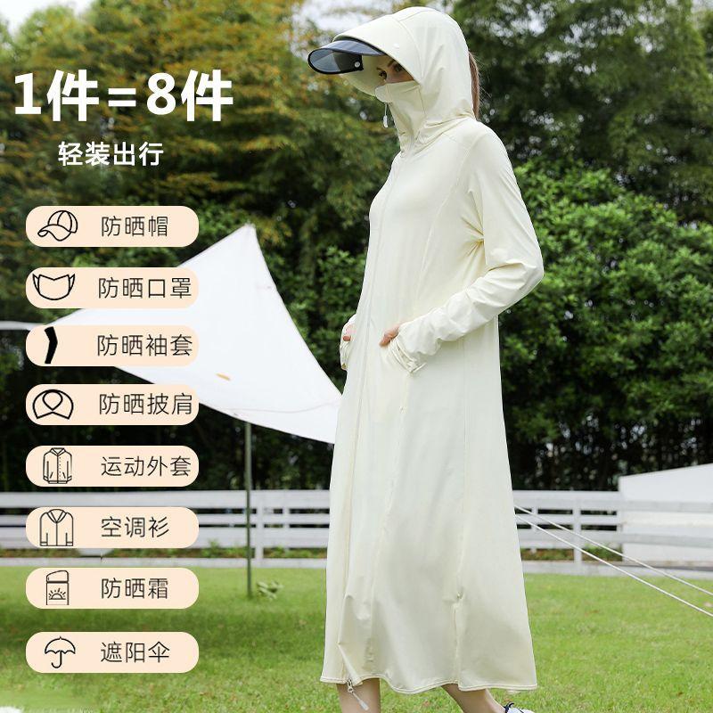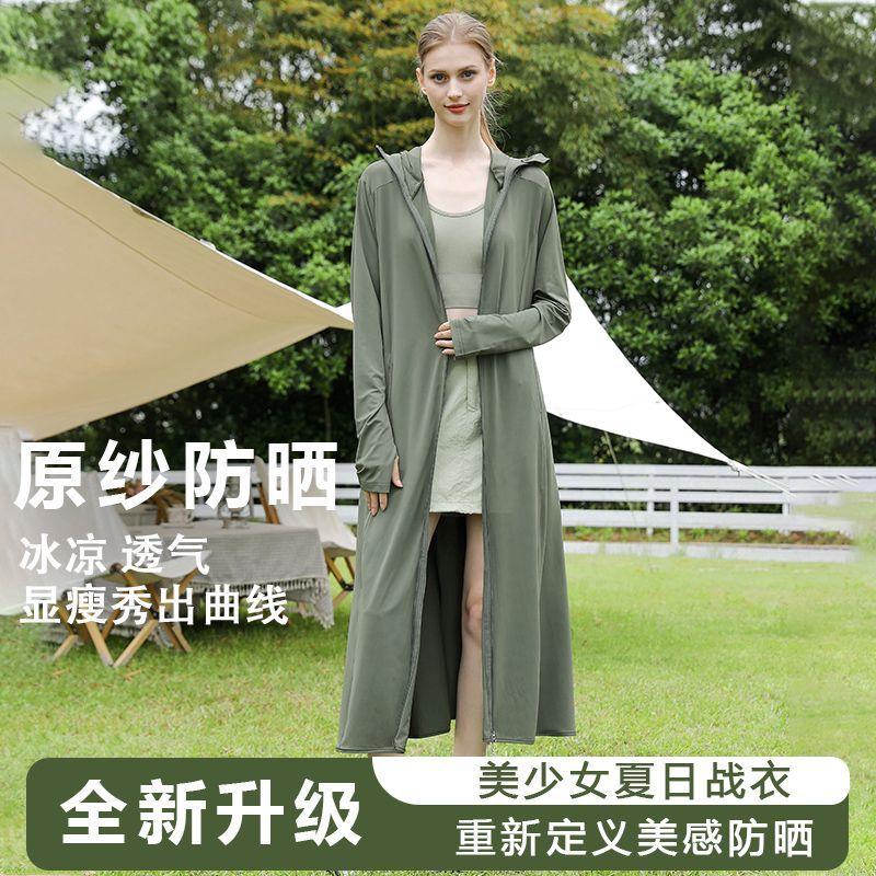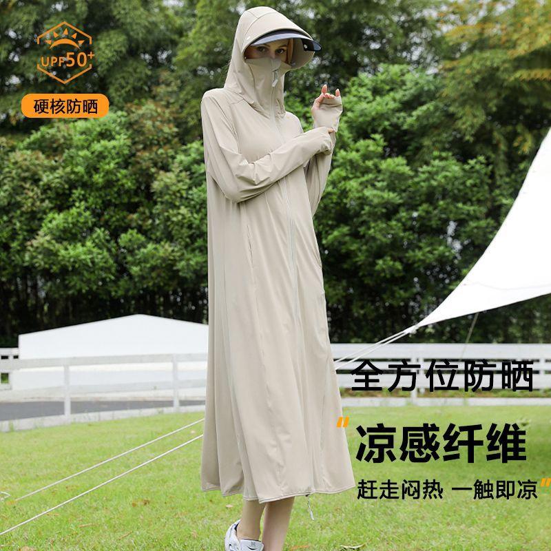 Ropa de Protección Solar Super Larga para Mujer 2025 Nuevo Verano Cuerpo Completo Delgada Exterior Anti-UV Abrigo de Protección Solar de Seda de Hielo