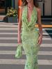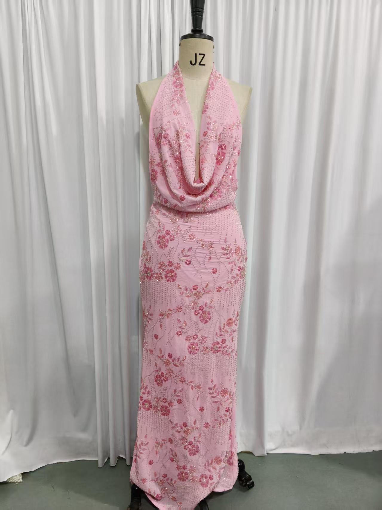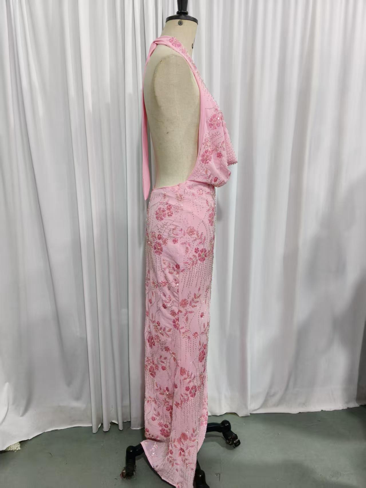 Vestido Elegante Europeo y Americano con Lentejuelas sin Mangas con Elegante Cuello Halter 2025 Lentejuelas Cuello en V Espalda Descubierta Grande Vestido Largo