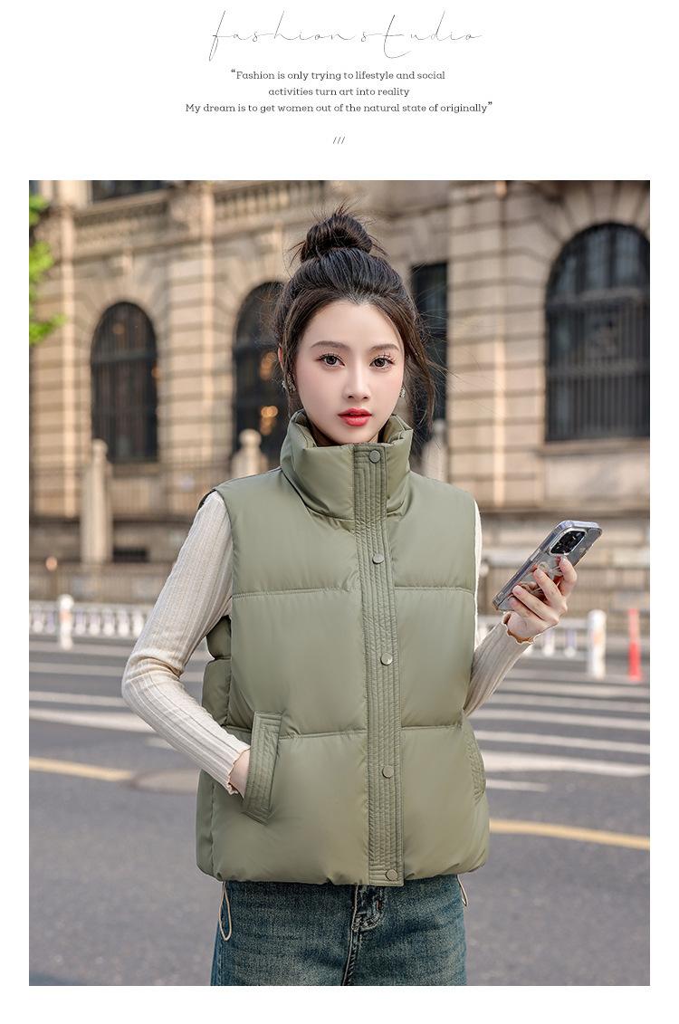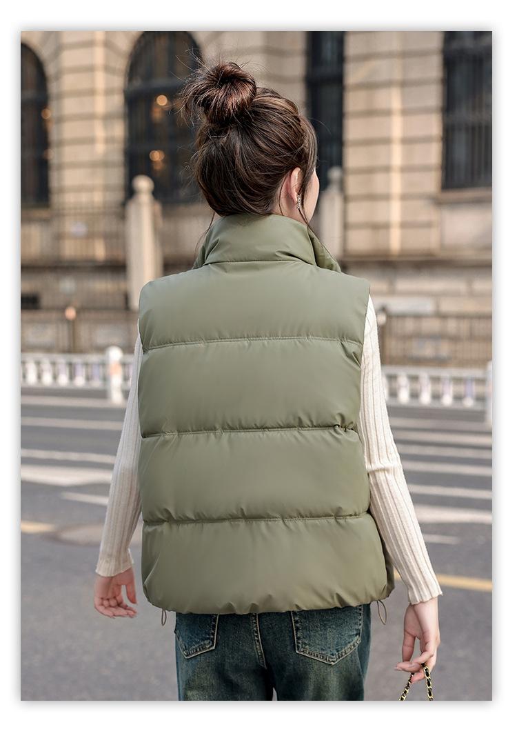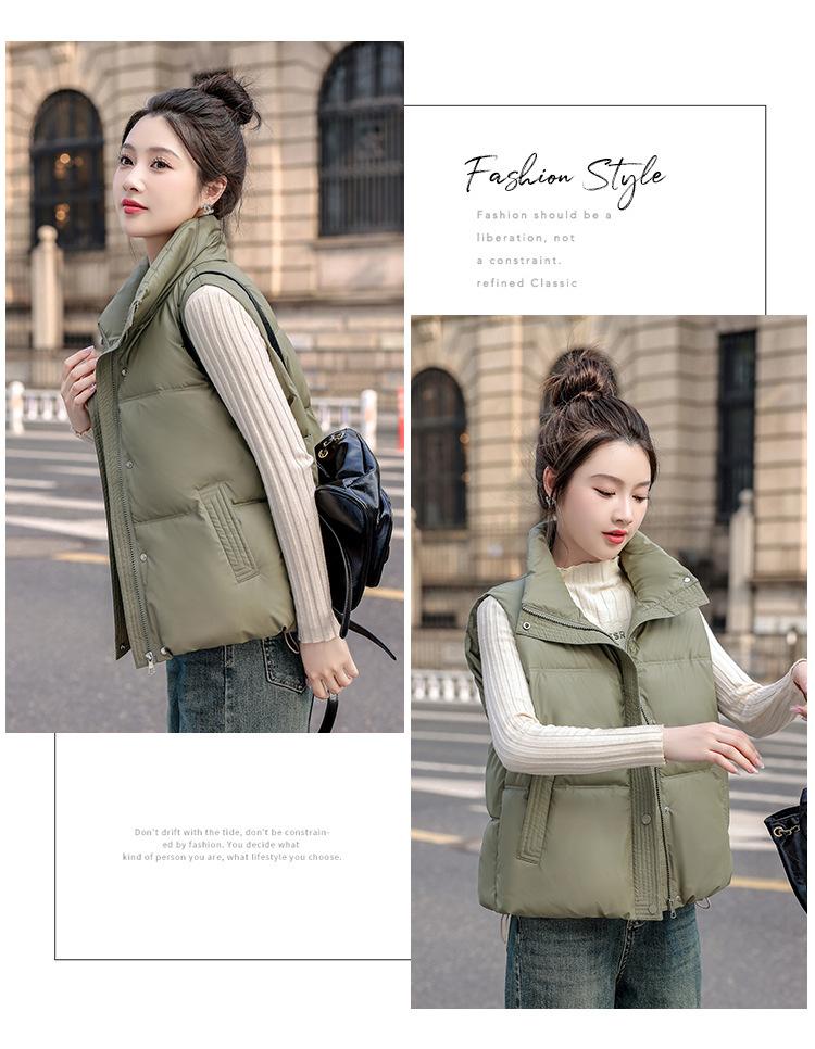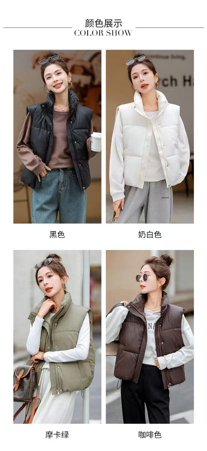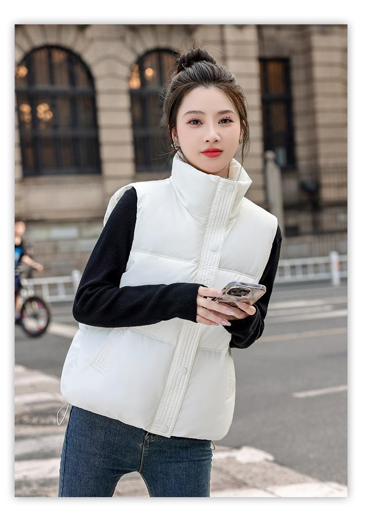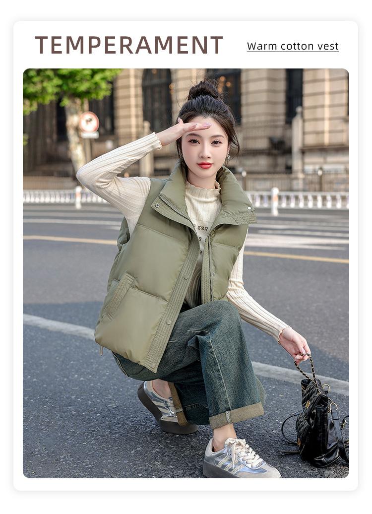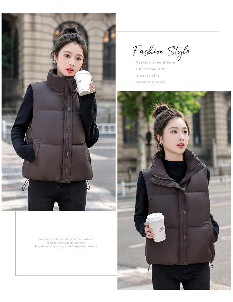 Chaleco Corto de Algodón Plumón para Mujer Cuello Alto Chaleco Sin Lavado 2024 Otoño e Invierno Nueva Moda Chaleco de Algodón Suelto Chaleco de Algodón