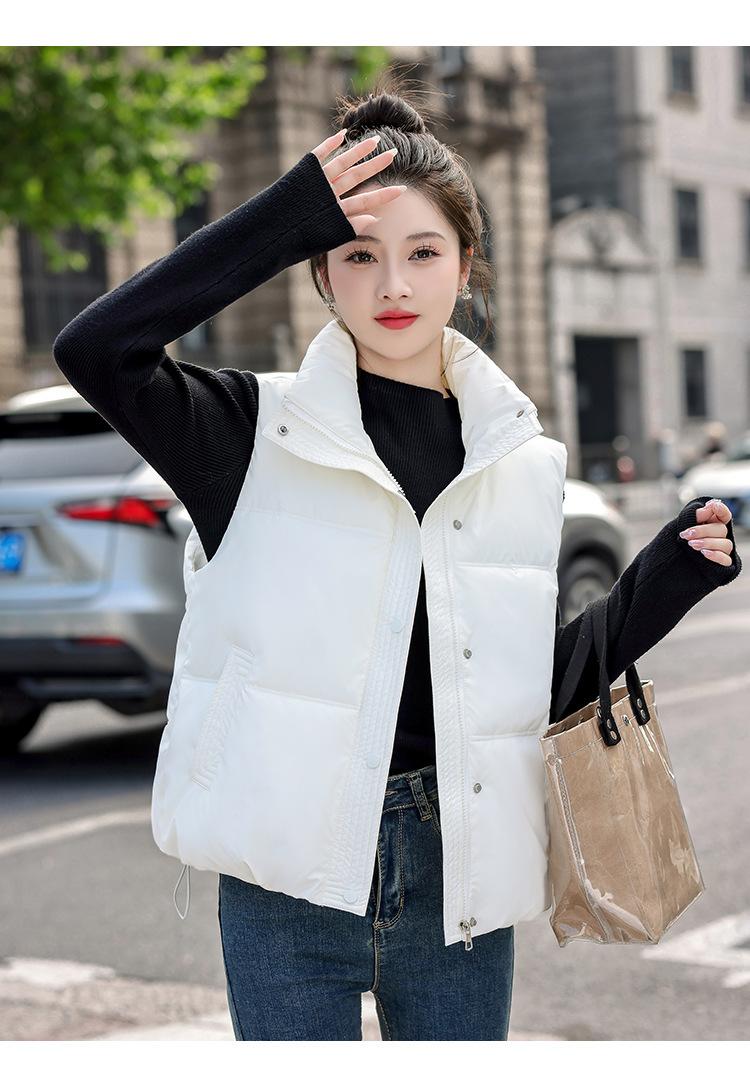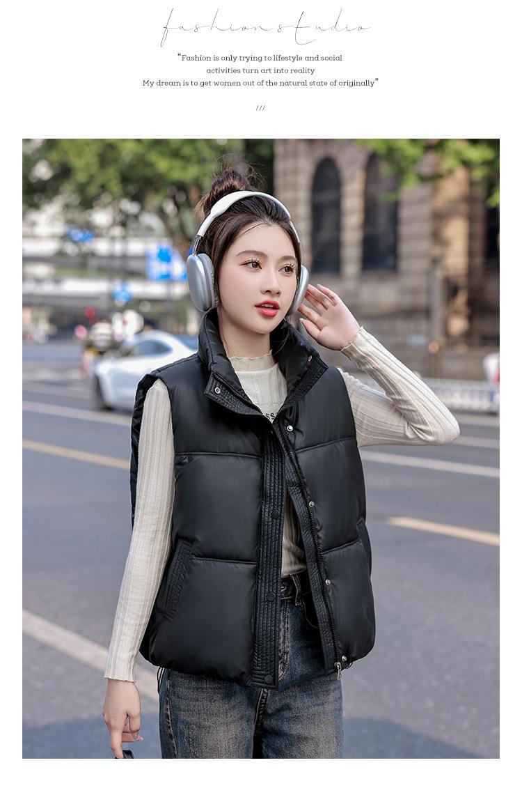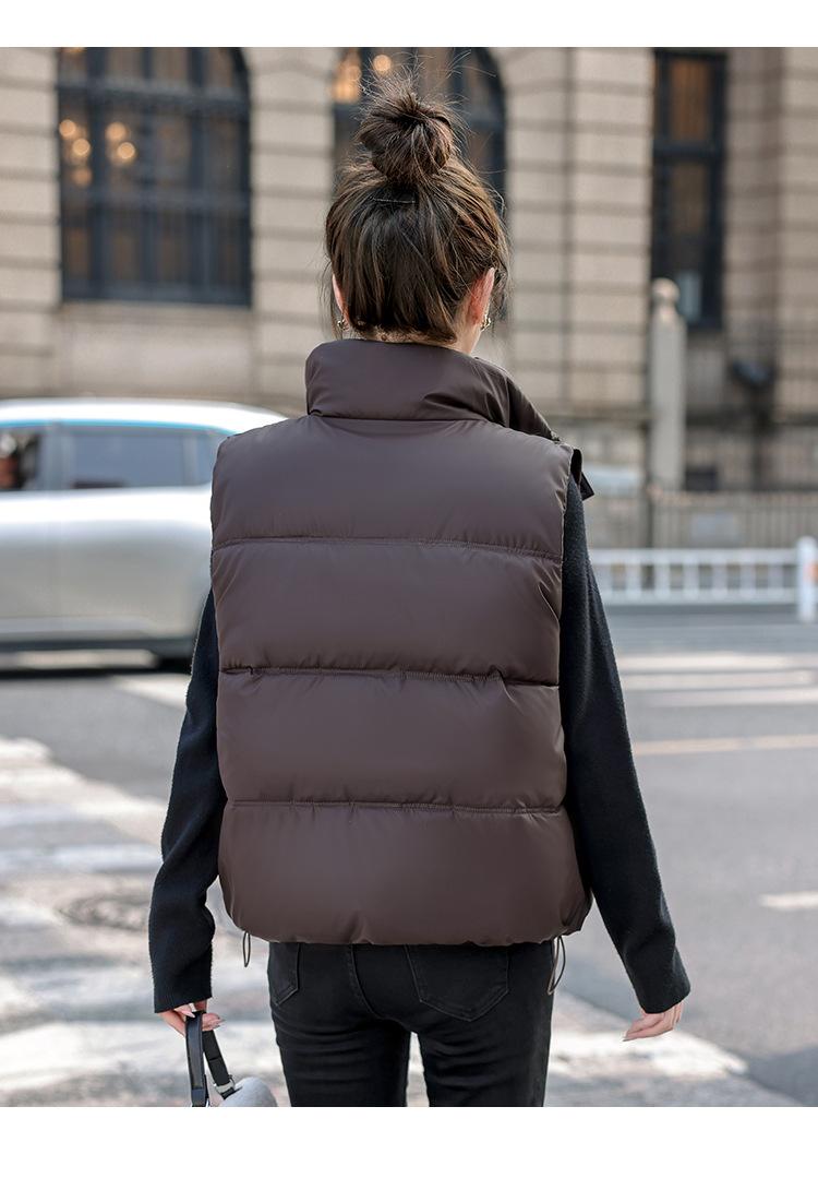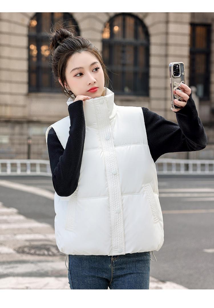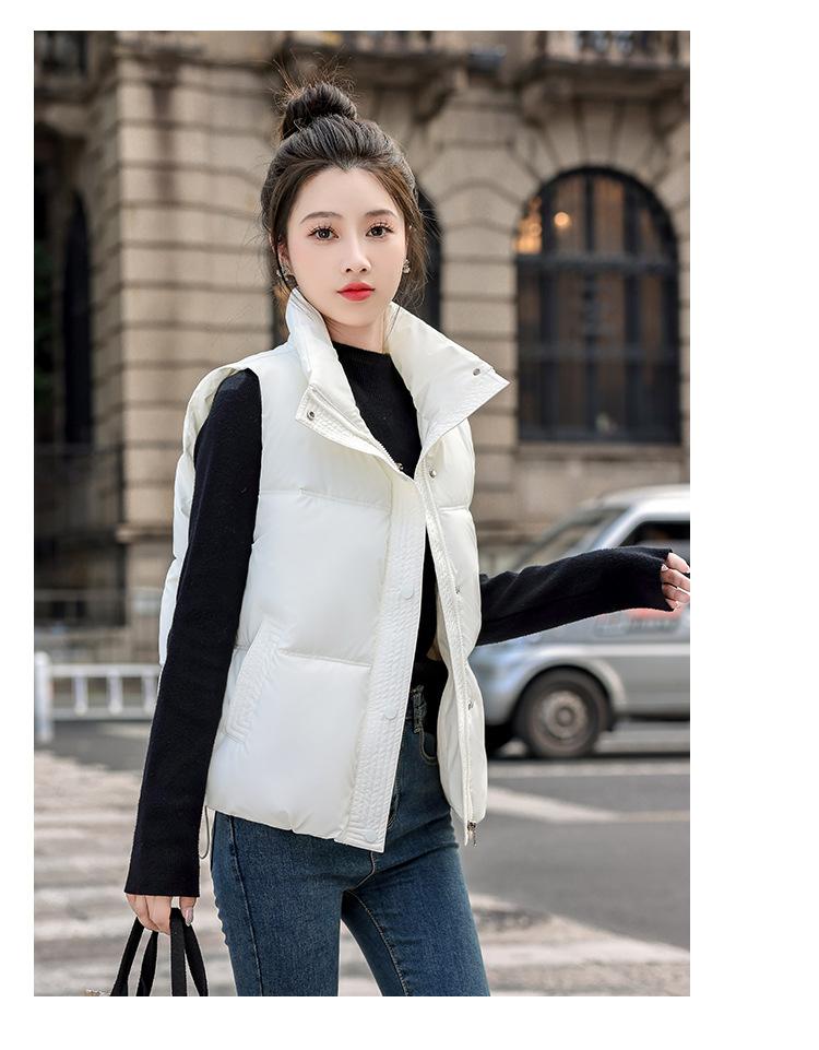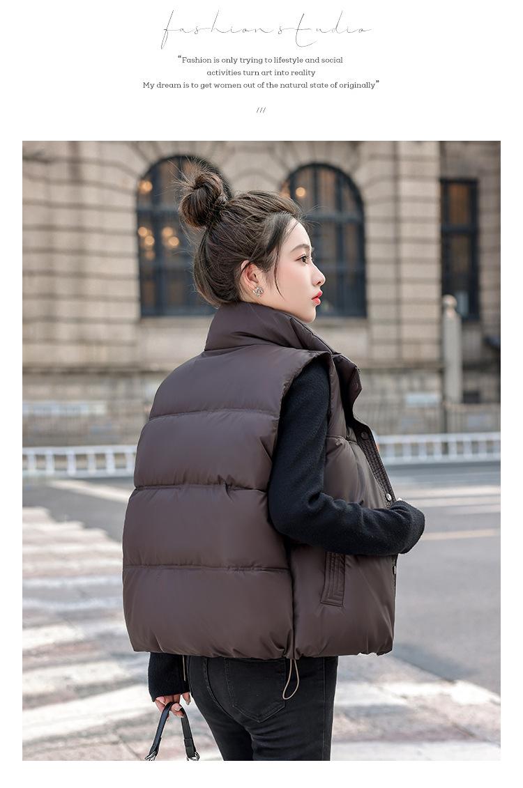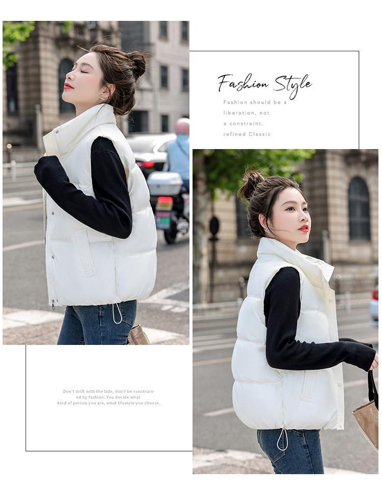 Chaleco Corto de Algodón Plumón para Mujer Cuello Alto Chaleco Sin Lavado 2024 Otoño e Invierno Nueva Moda Chaleco de Algodón Suelto Chaleco de Algodón