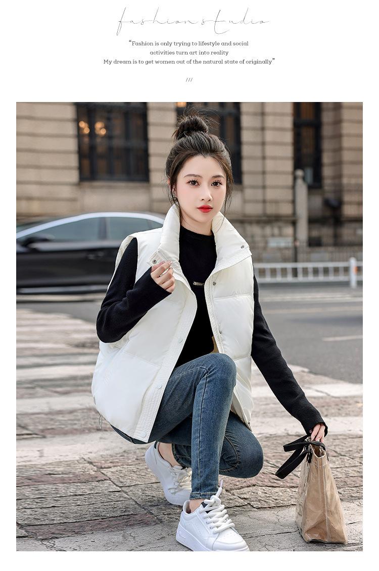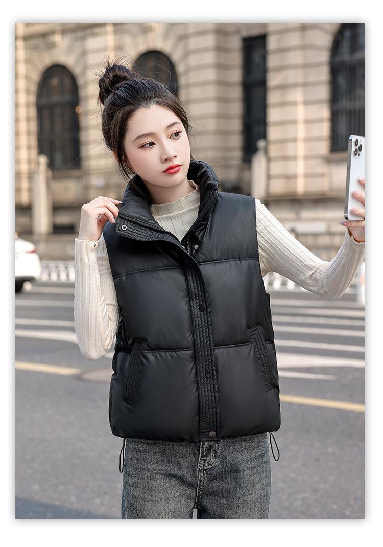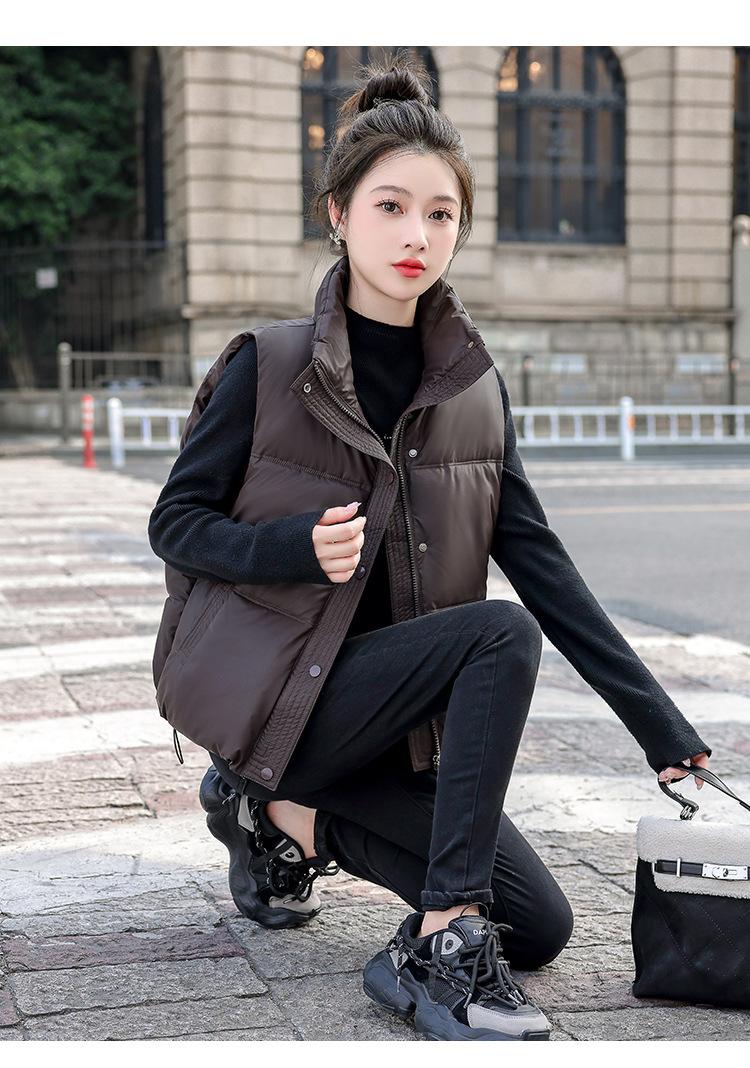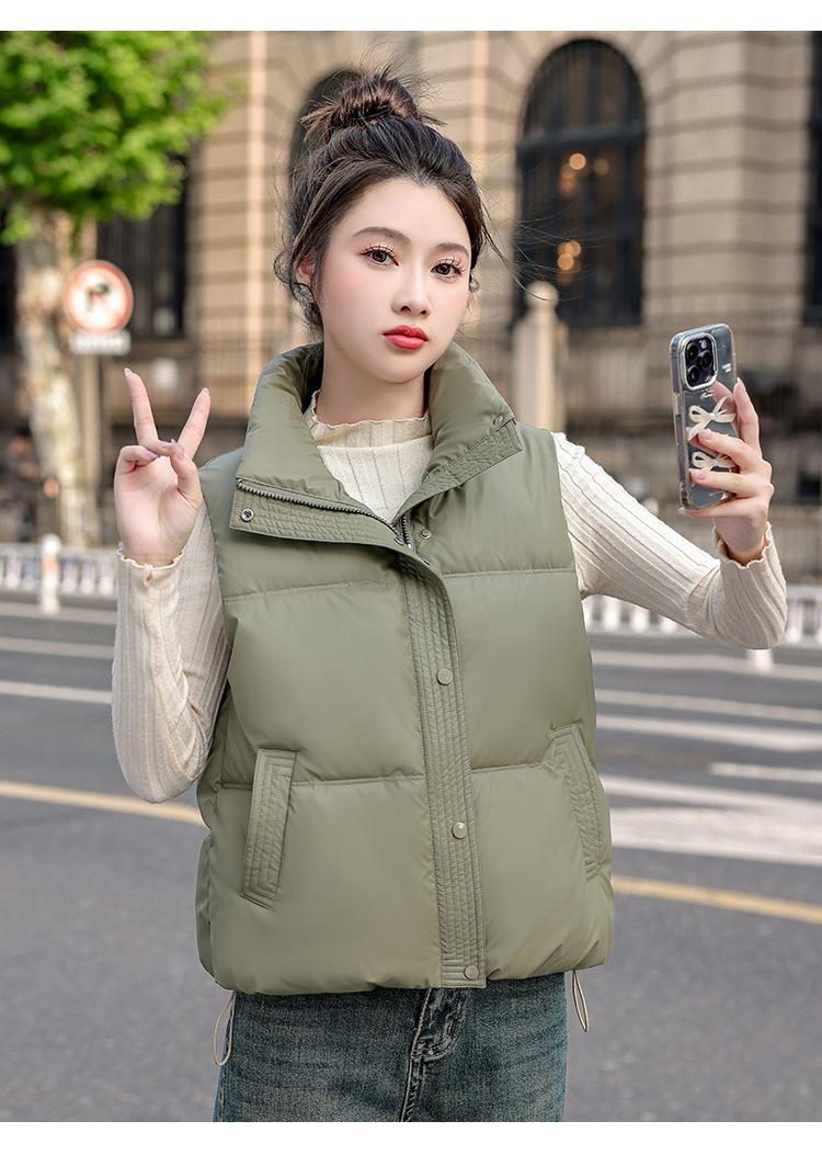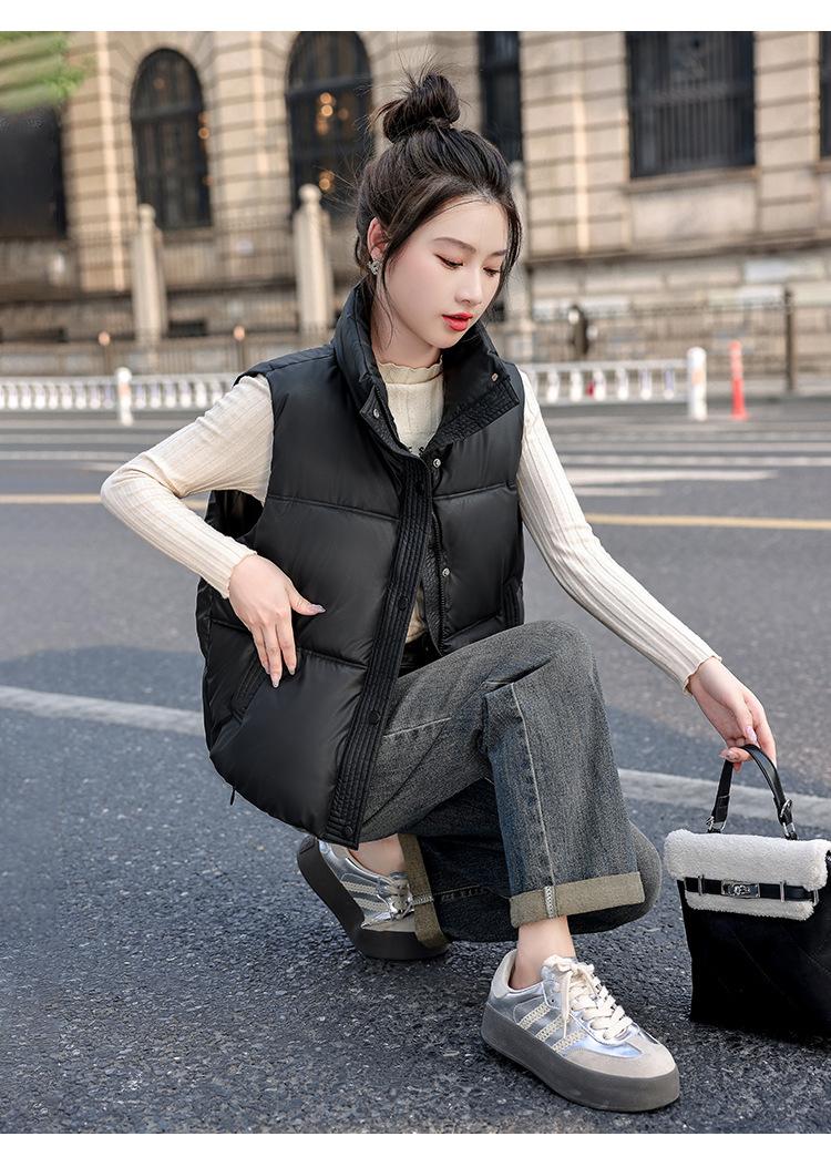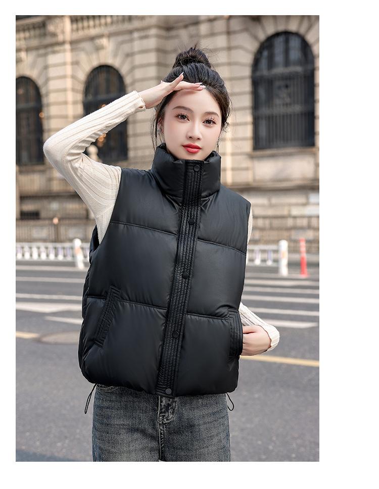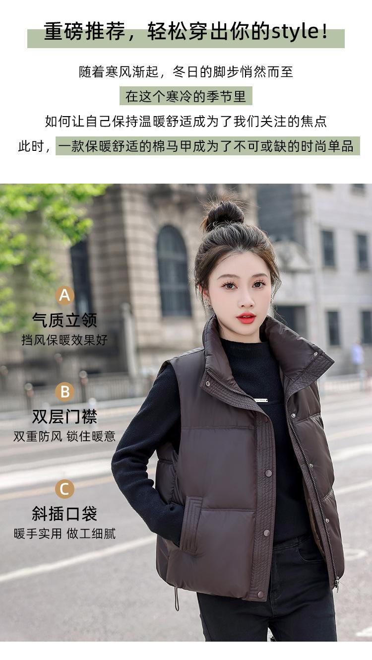 Chaleco Corto de Algodón Plumón para Mujer Cuello Alto Chaleco Sin Lavado 2024 Otoño e Invierno Nueva Moda Chaleco de Algodón Suelto Chaleco de Algodón