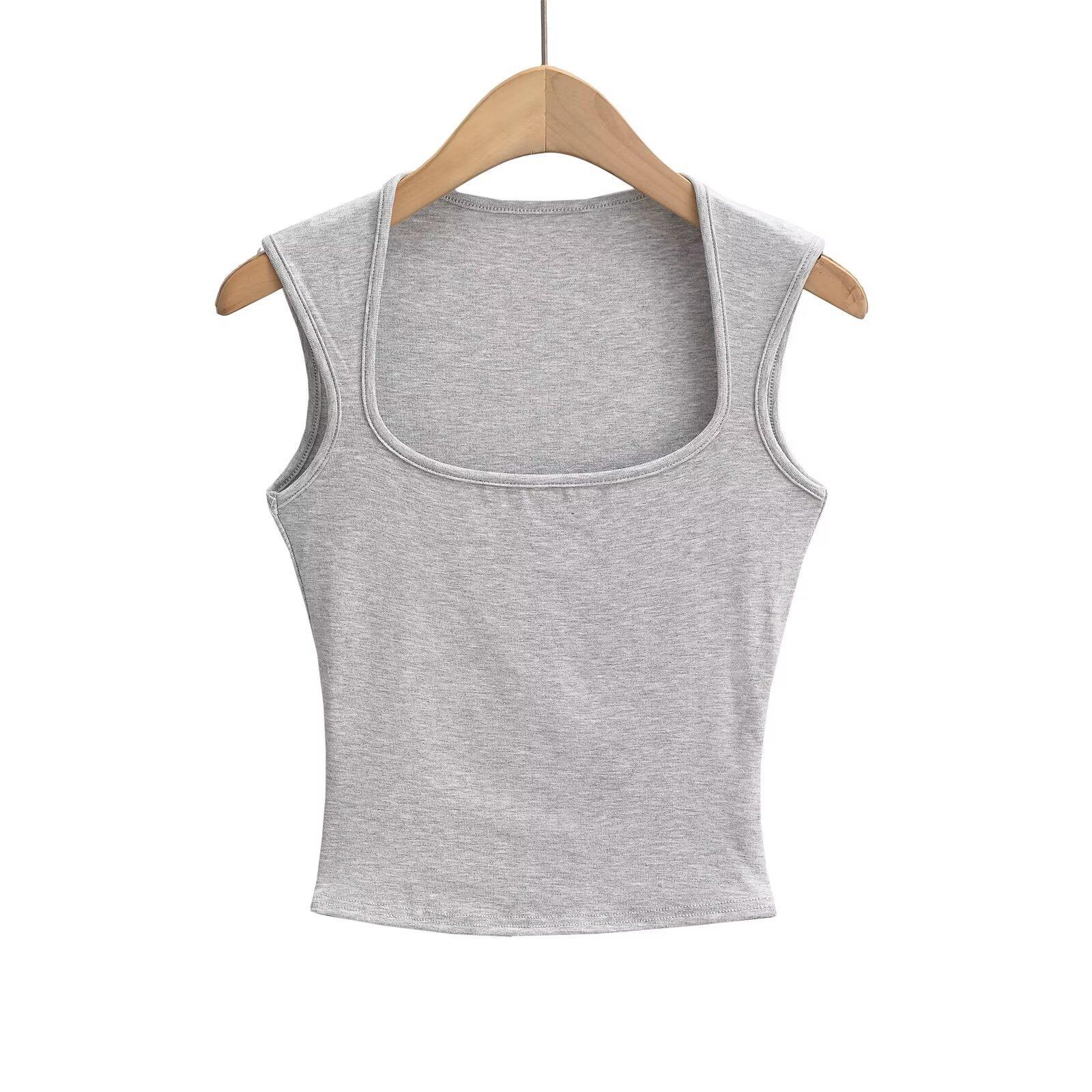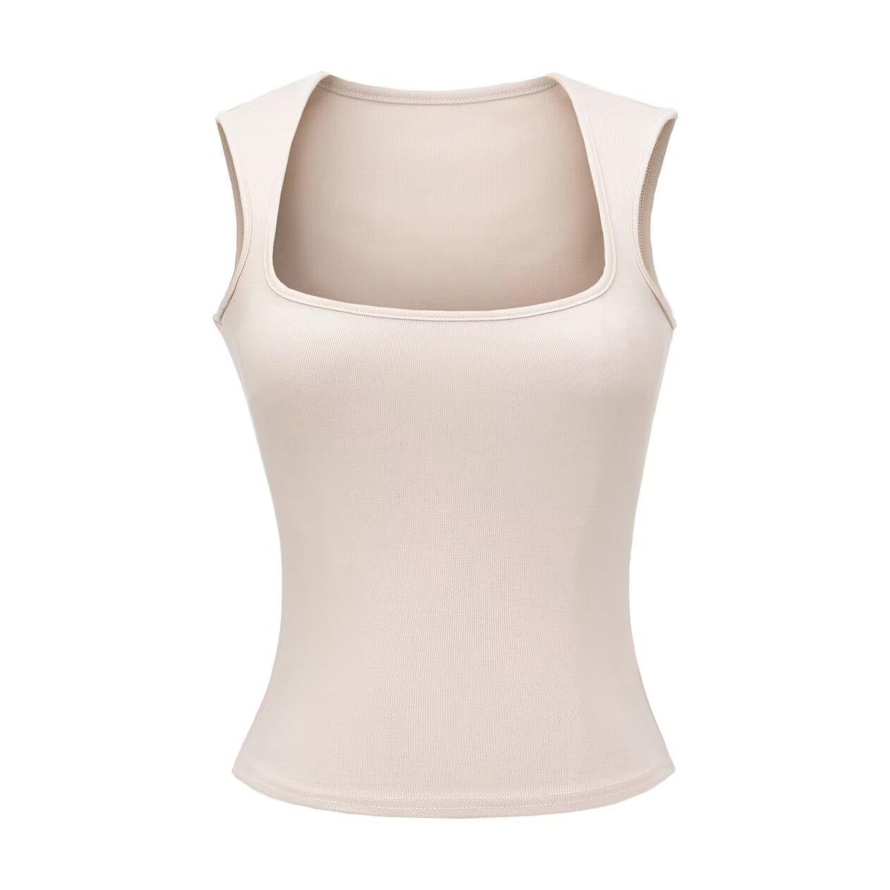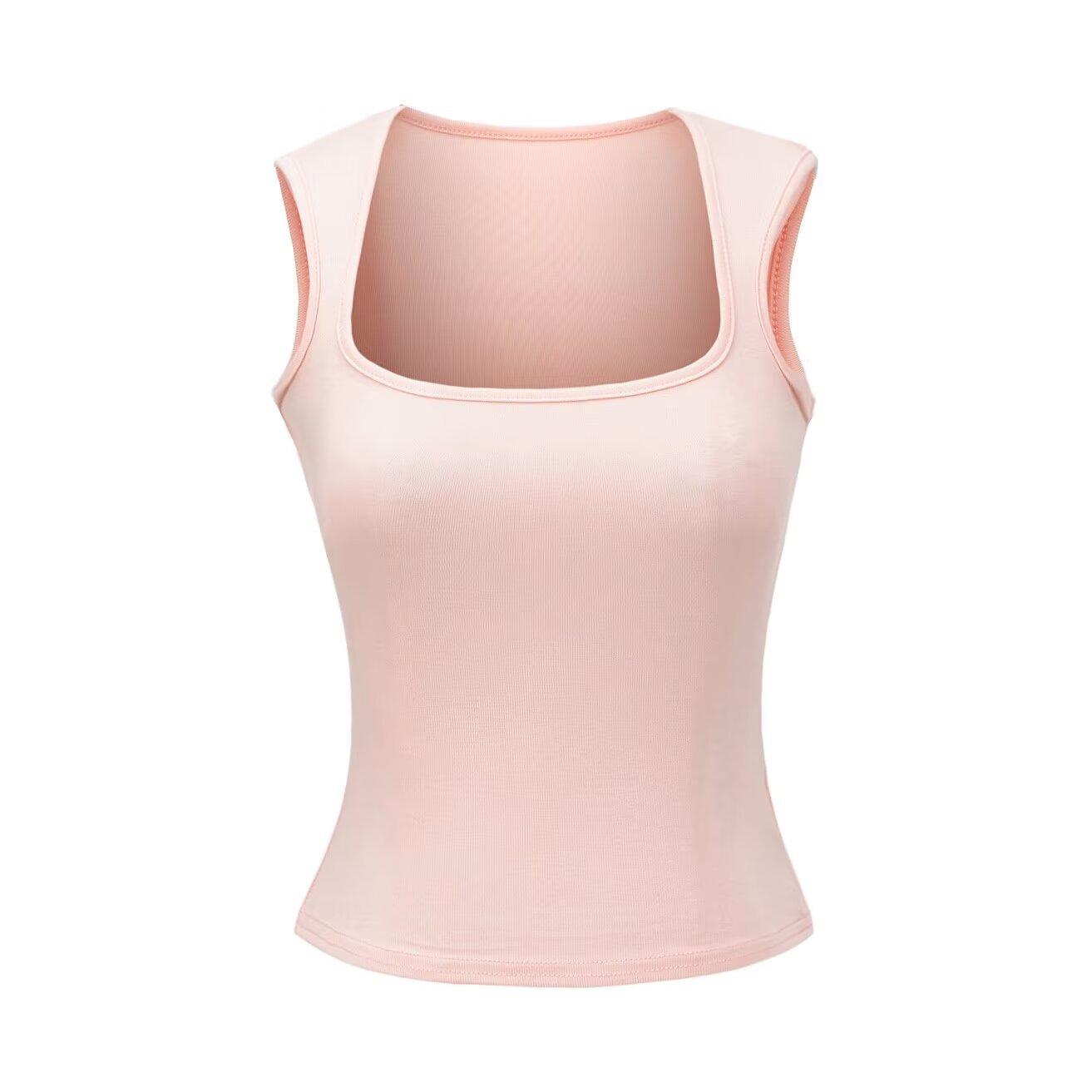 Camiseta básica sin mangas para mujer con cuello cuadrado, tirantes anchos y cobertura lateral del busto en color rosa, para verano, corte ajustado, sin mangas, puro deseo, corta