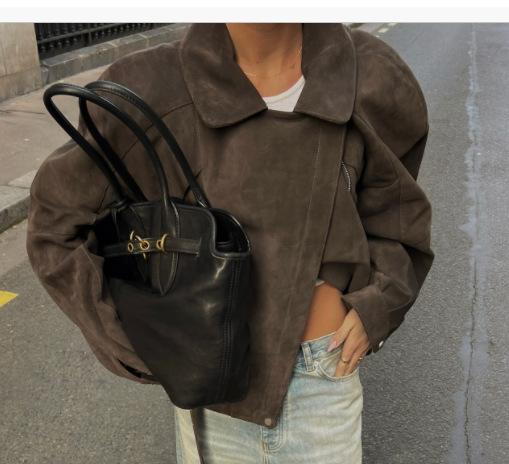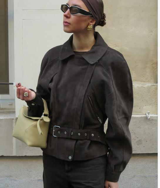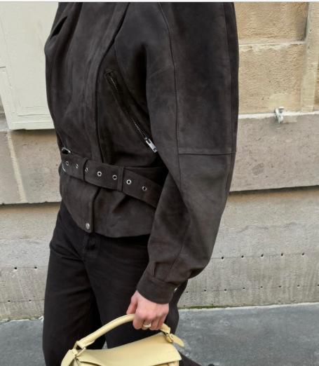 Moda Transfronteriza Europea y Americana Aliexpress Moda Popular Versátil Chaqueta Estilo Motociclista de Gamuza con Cinturón