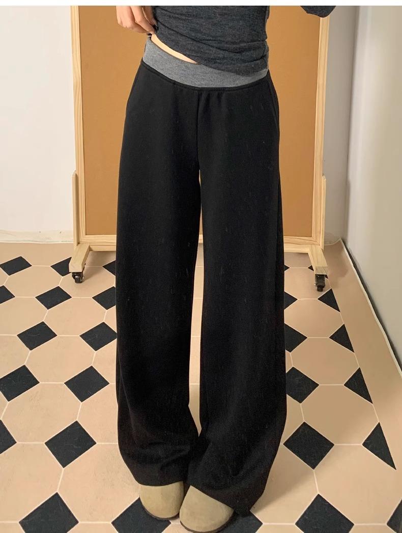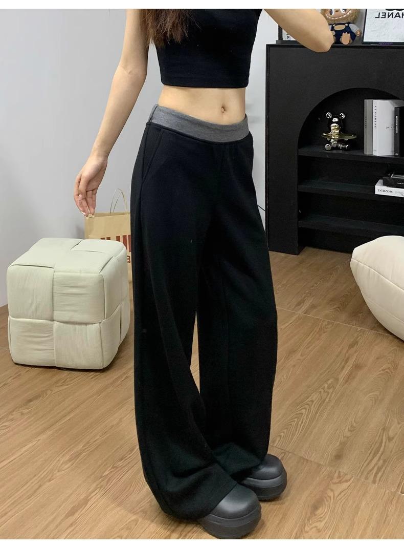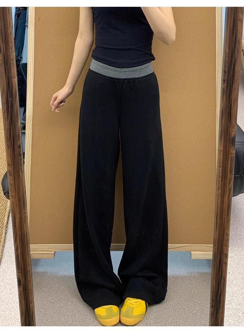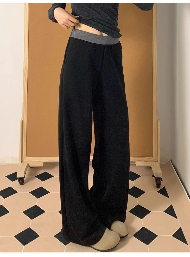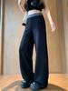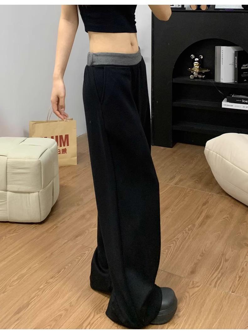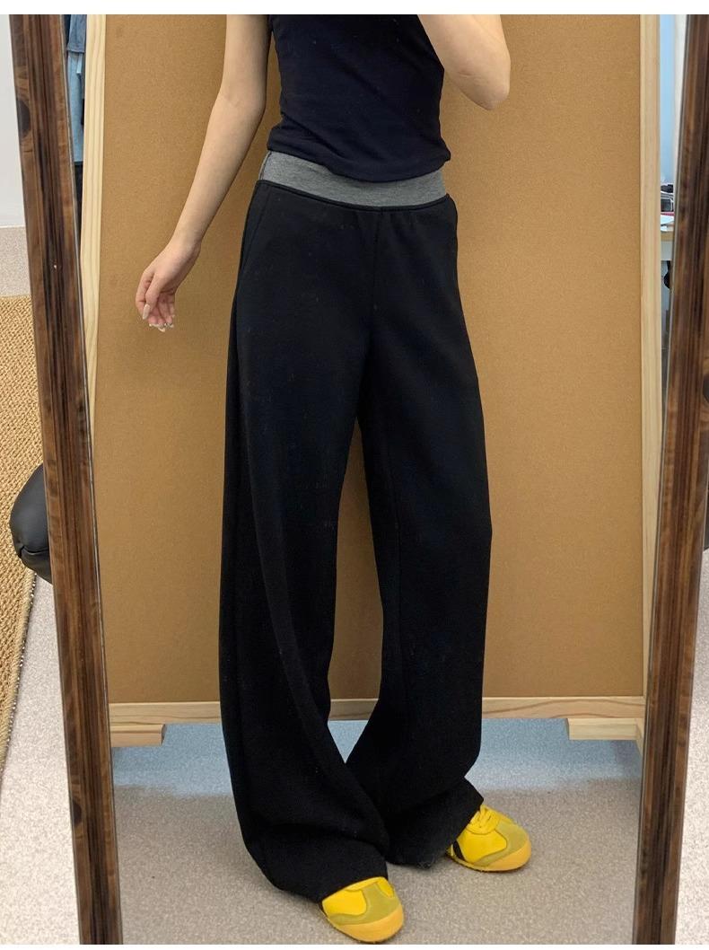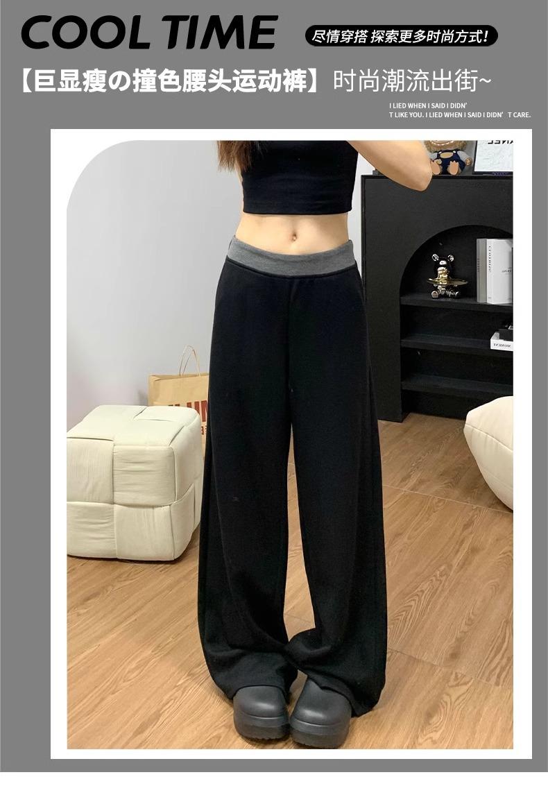 Pantalones Deportivos Casuales con Costuras a Contraste para Mujer Primavera 2025 Nuevo Cintura Alta Sueltos Adelgazantes Pierna Ancha