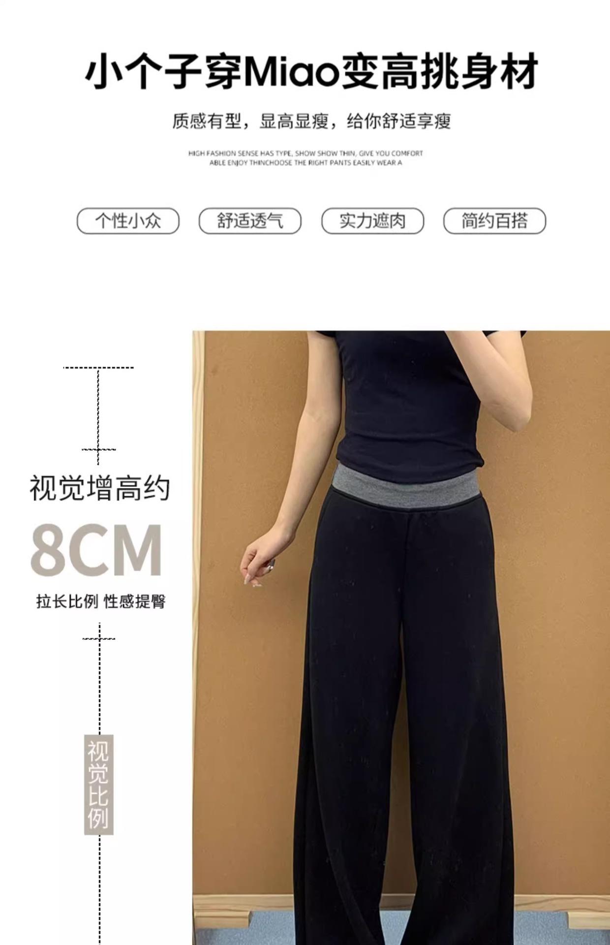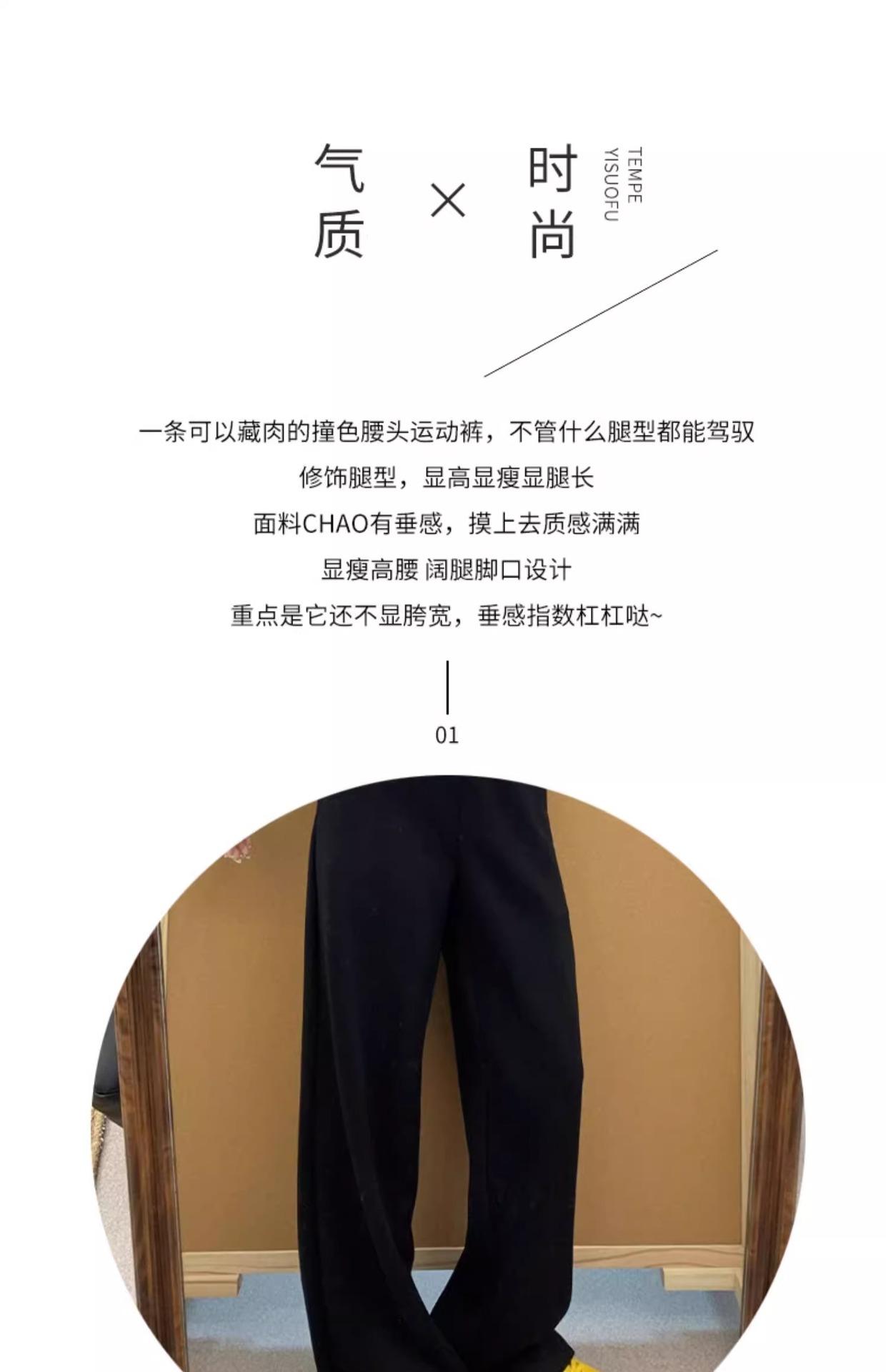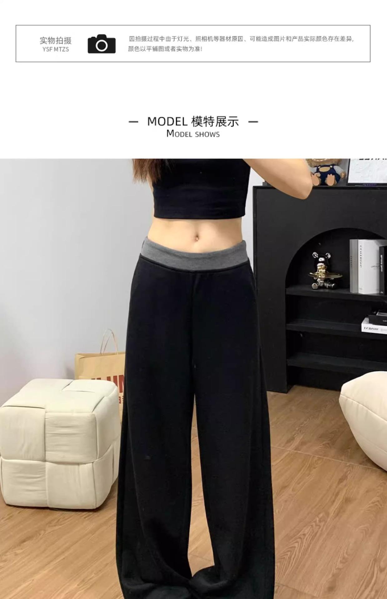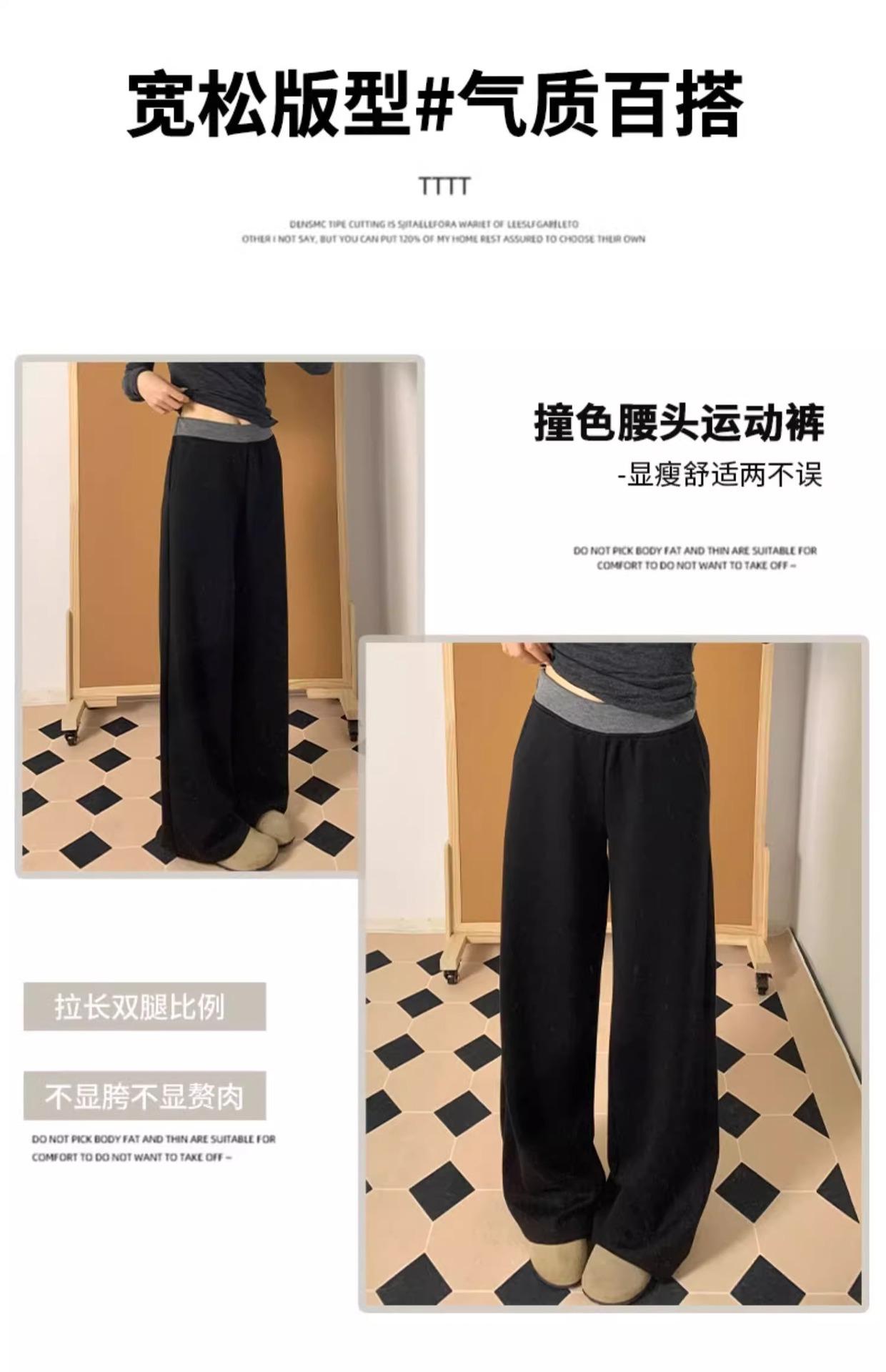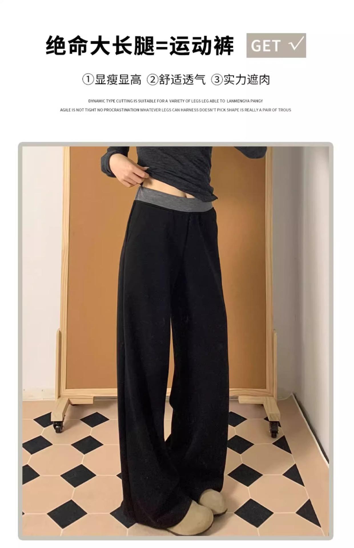 Pantalones Deportivos Casuales con Costuras a Contraste para Mujer Primavera 2025 Nuevo Cintura Alta Sueltos Adelgazantes Pierna Ancha