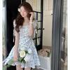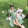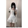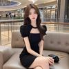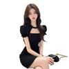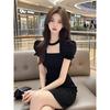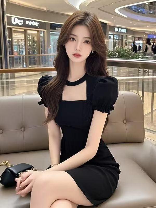 Verano Deseo Puro Nuevo Negro Cuello Cuadrado Manga Farol Francesa Diseño Vestido Negro Pequeño Ajustado Elegante Vestido Ajustado Mujer