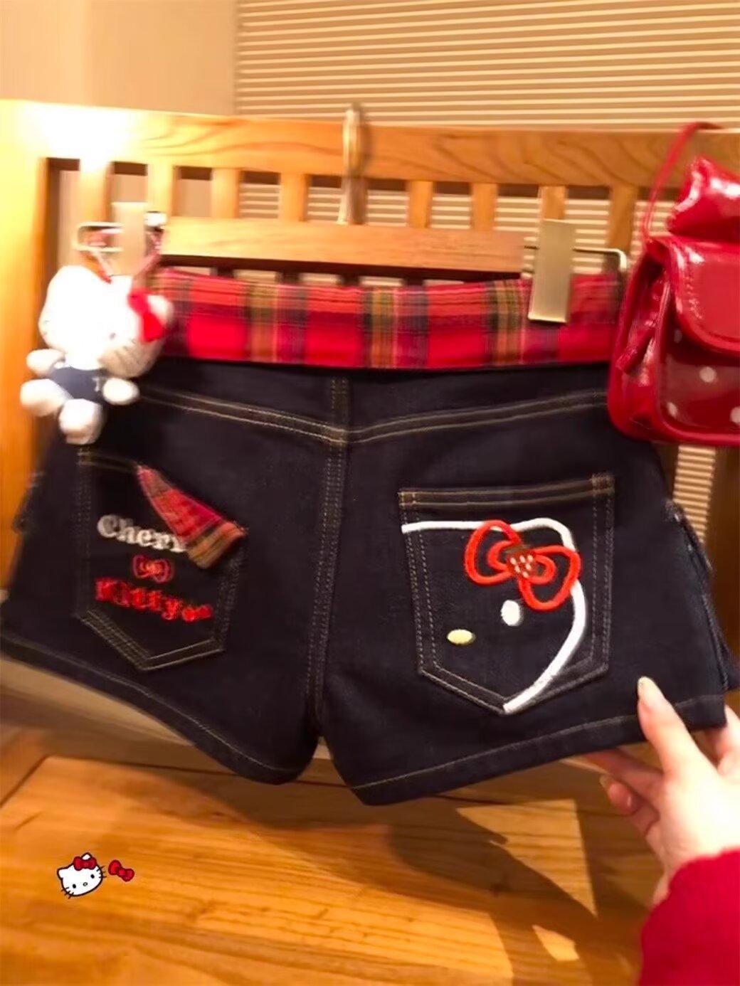 Shorts de Mezclilla Bordados de Gato Retro Hot Girl para Mujer Verano 2025 Nuevo Diseño Adelgazantes Super Shorts