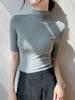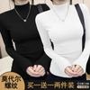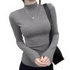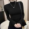 Otoño e Invierno Nuevo Temperamento Adelgazante Interior Camiseta de Manga Larga Top de Punto Fino Negro Cuello Semi-Alto Camisa Base Mujer