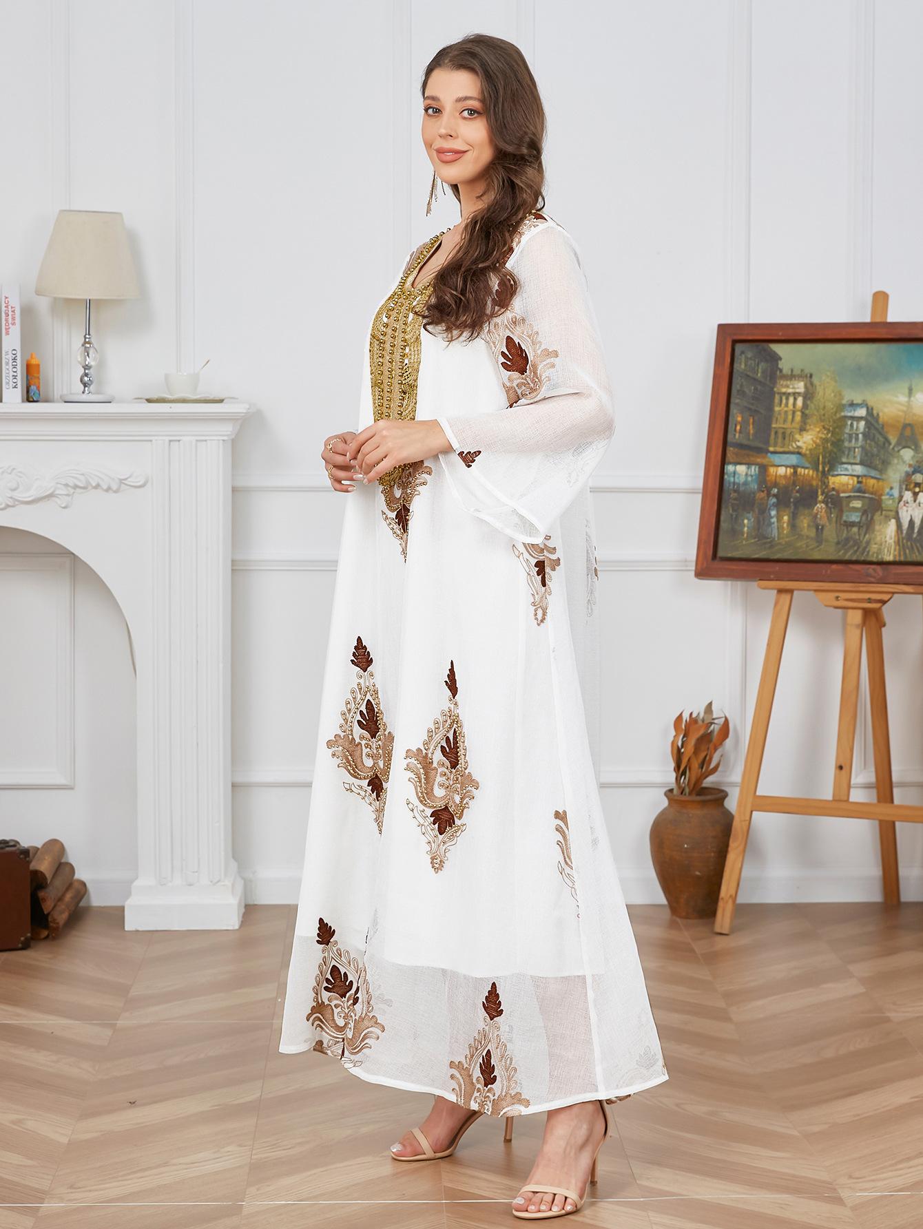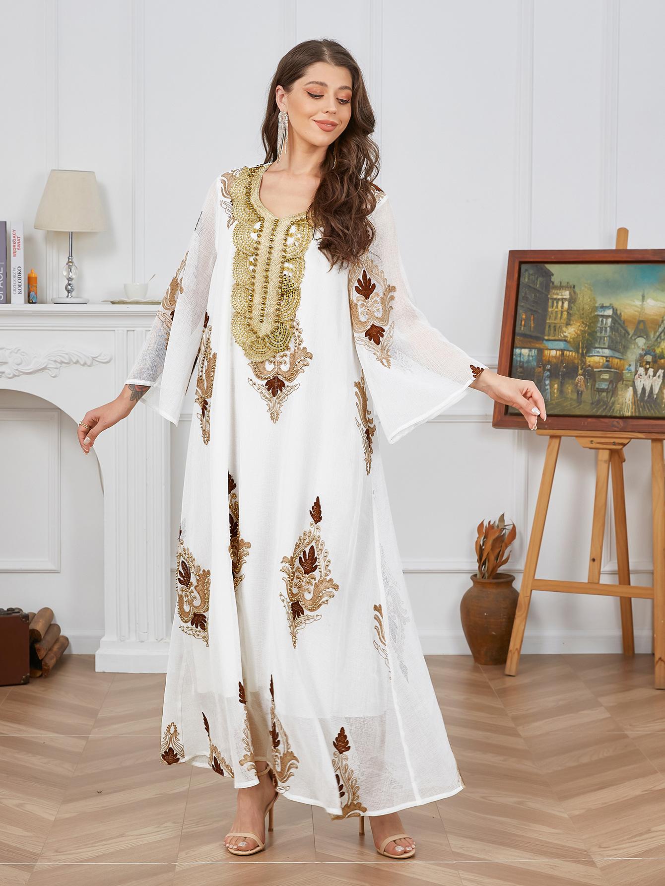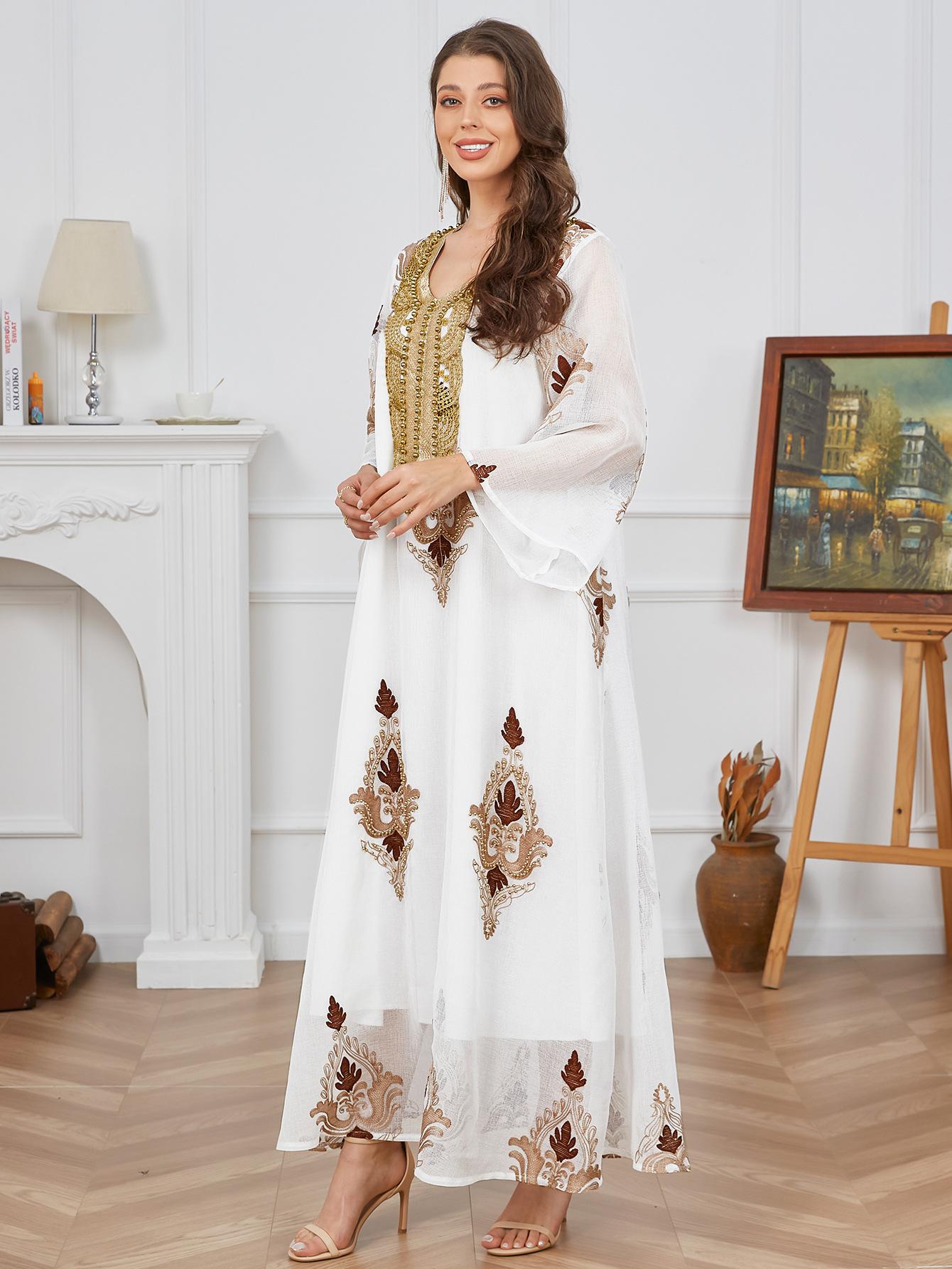 Zd199 Estilo Étnico Nuevo de Oriente Medio Bata Musulmana para Mujer Vestido de Noche Dubái Vestido Bordado con Lentejuelas