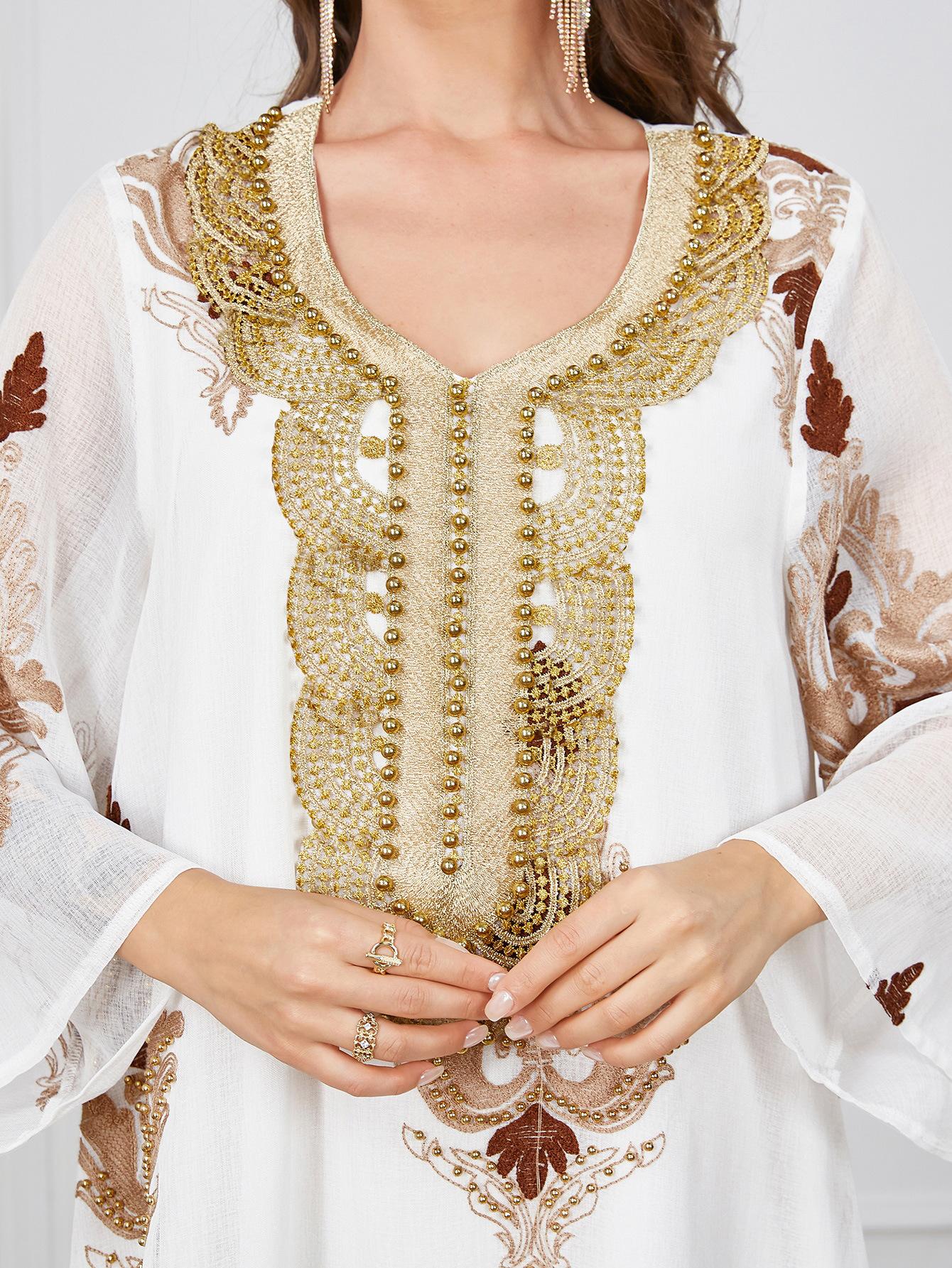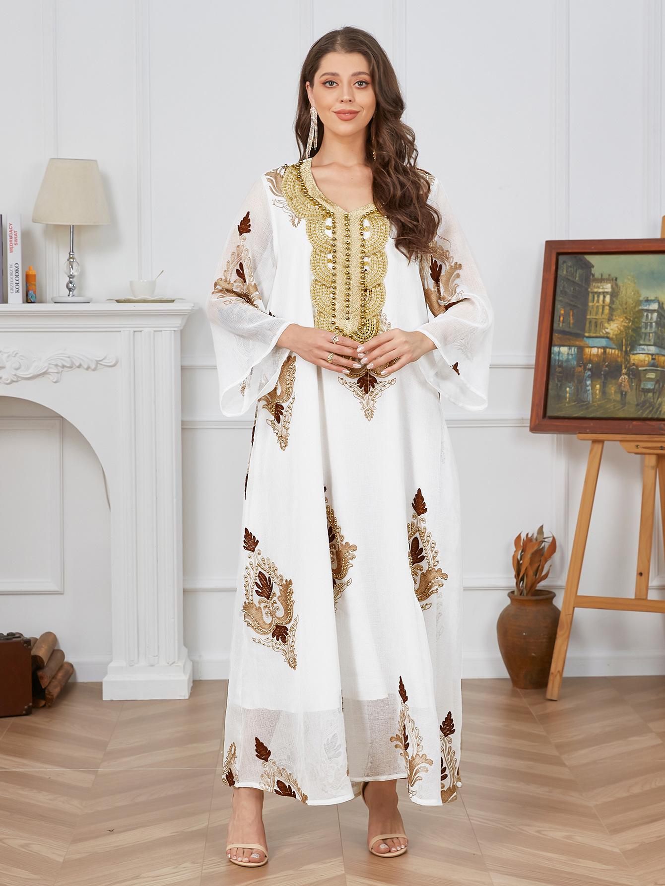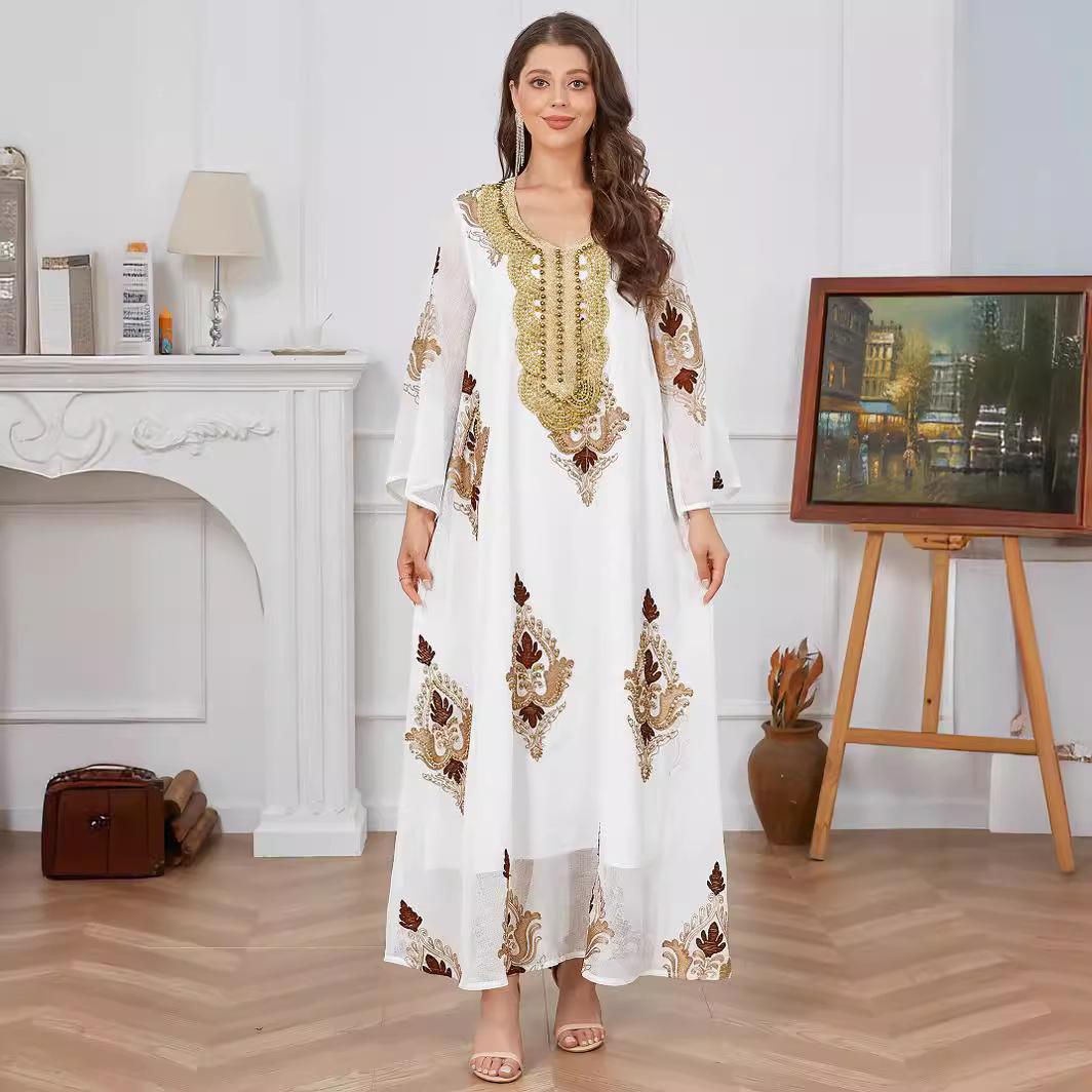 Zd199 Estilo Étnico Nuevo de Oriente Medio Bata Musulmana para Mujer Vestido de Noche Dubái Vestido Bordado con Lentejuelas