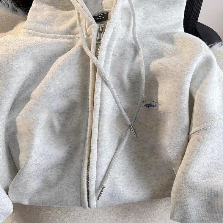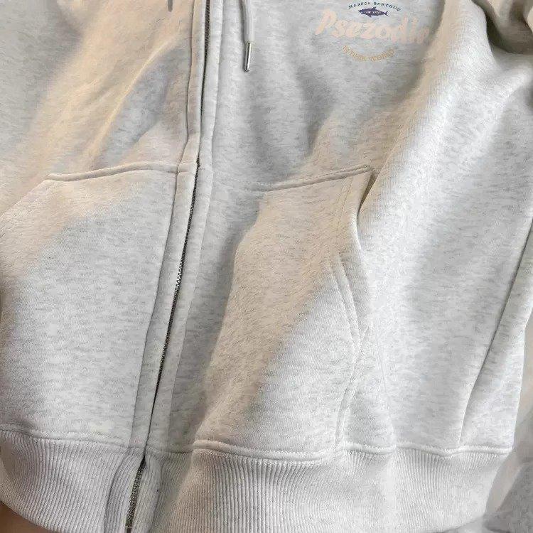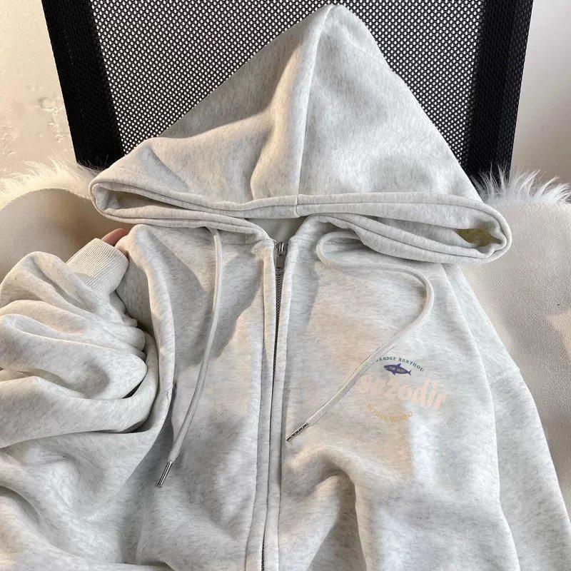 Sudadera con capucha Rock Top engrosada con forro polar Sudadera con capucha estampada Sudadera de personalidad pequeña Abrigo de mujer Minimalista