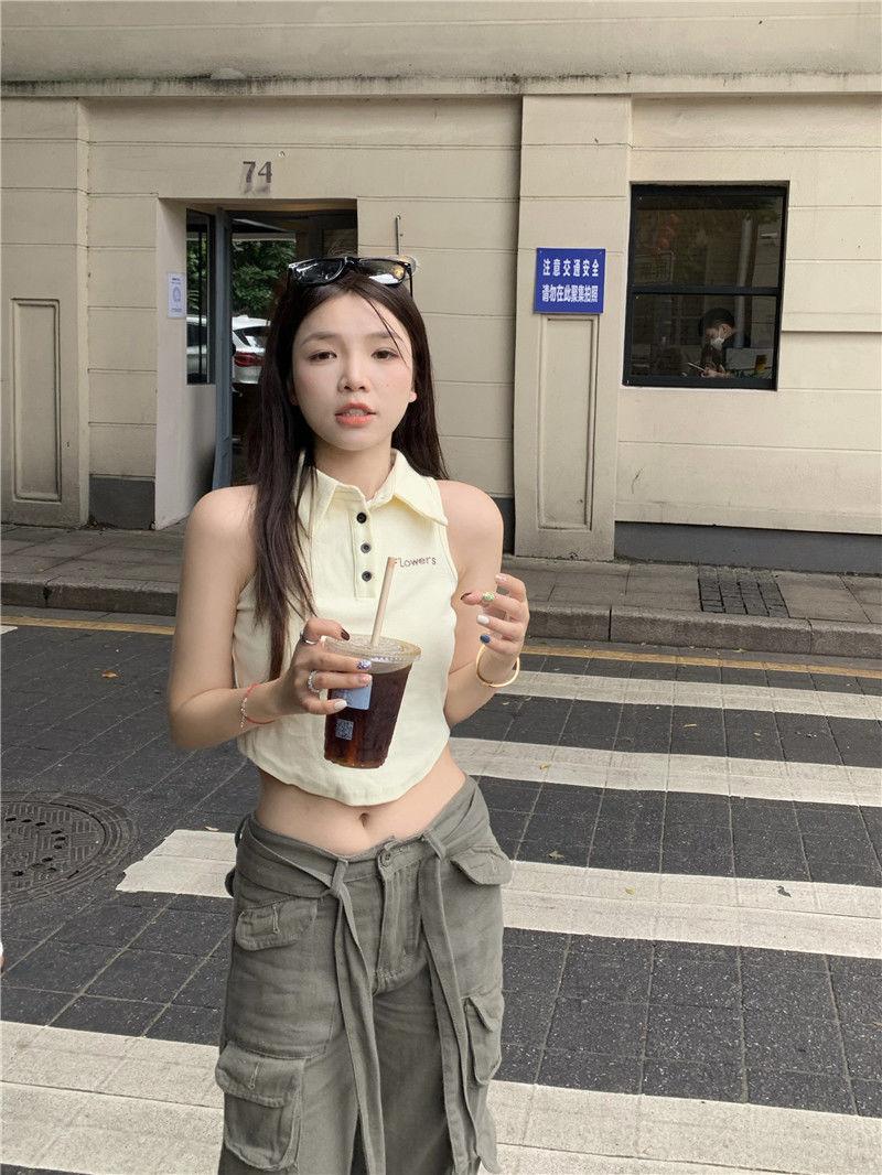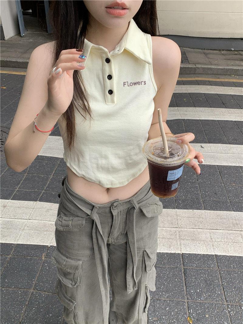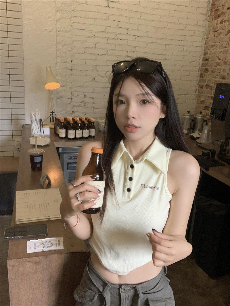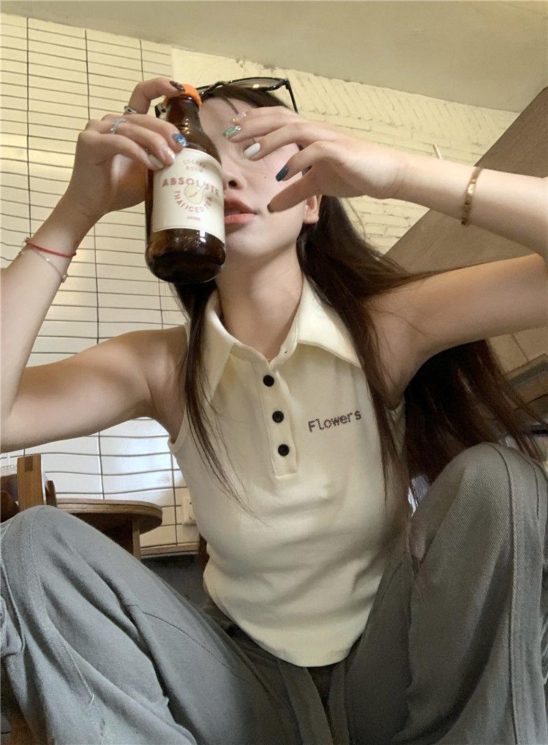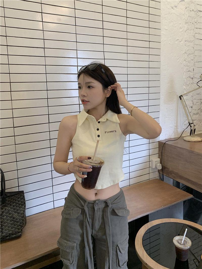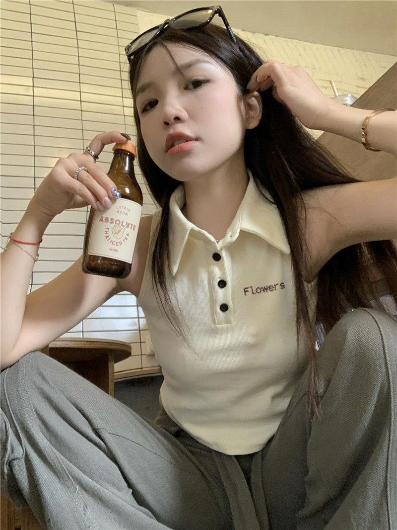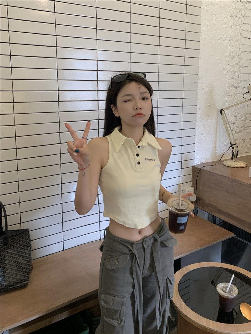 Chic Chaleco de Cuello Polo para Chica Hot Diseño Adelgazante de Verano para Mujer Novedad Ropa Exterior sin Mangas Top Corto Trendy