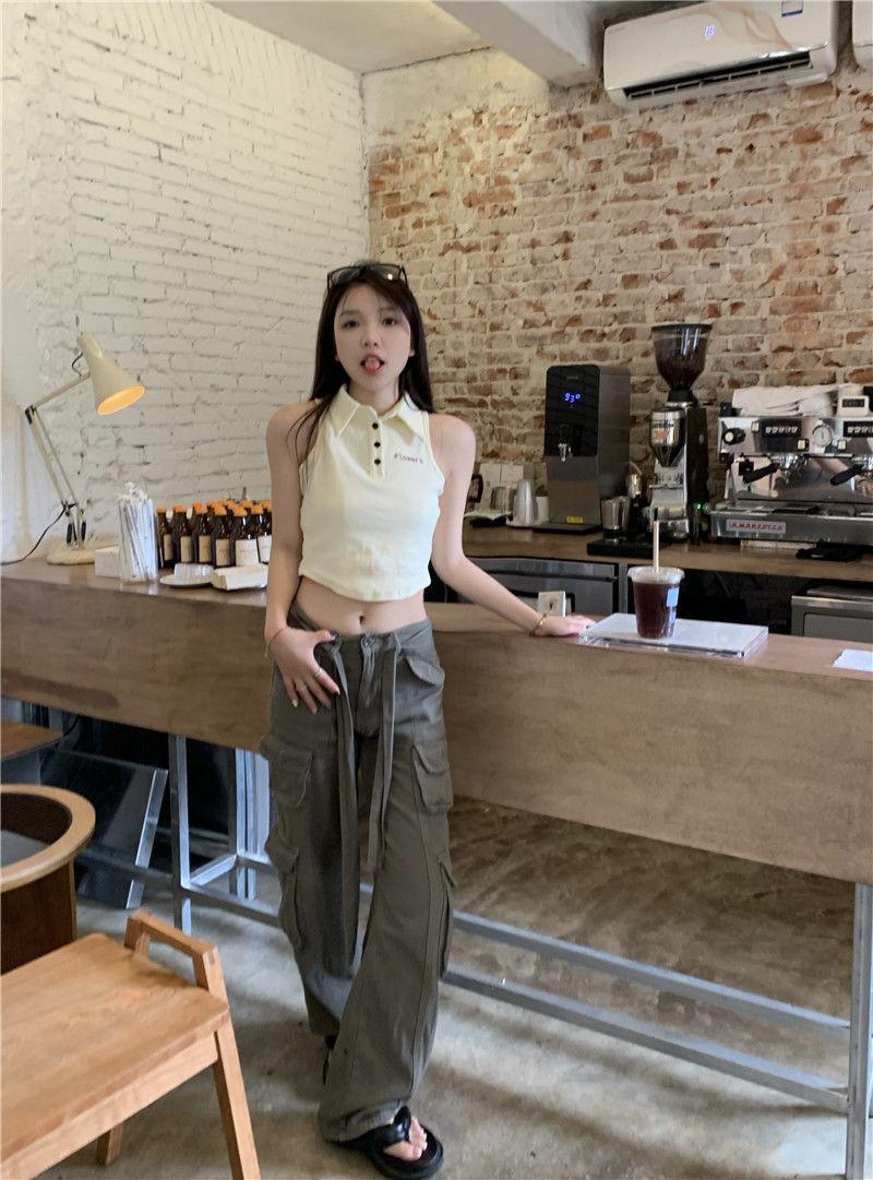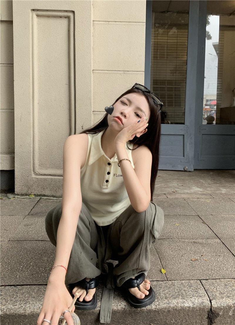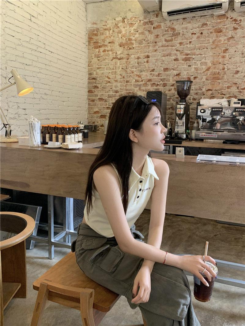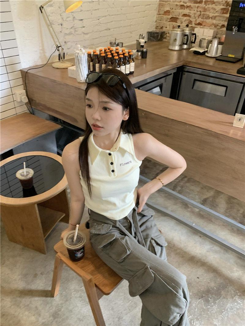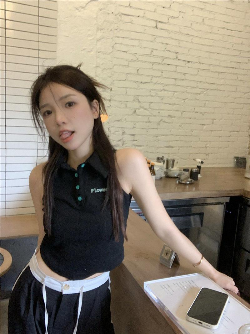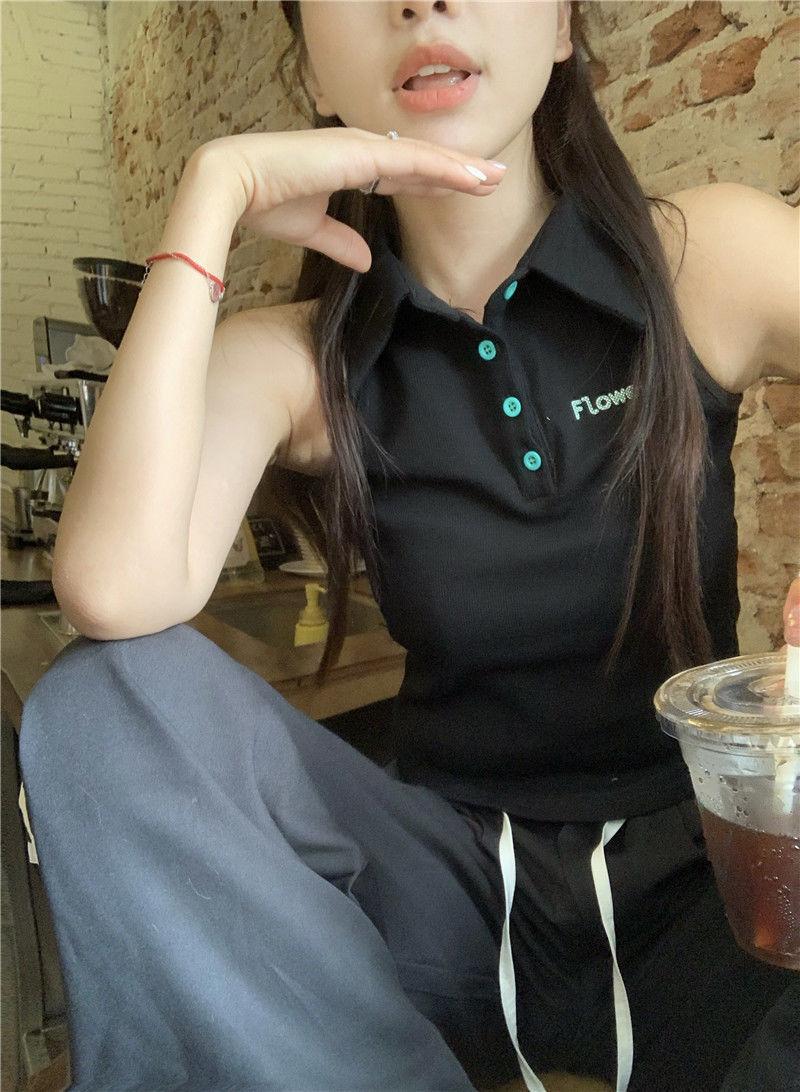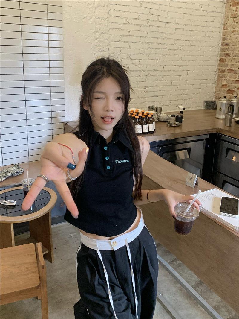 Chic Chaleco de Cuello Polo para Chica Hot Diseño Adelgazante de Verano para Mujer Novedad Ropa Exterior sin Mangas Top Corto Trendy