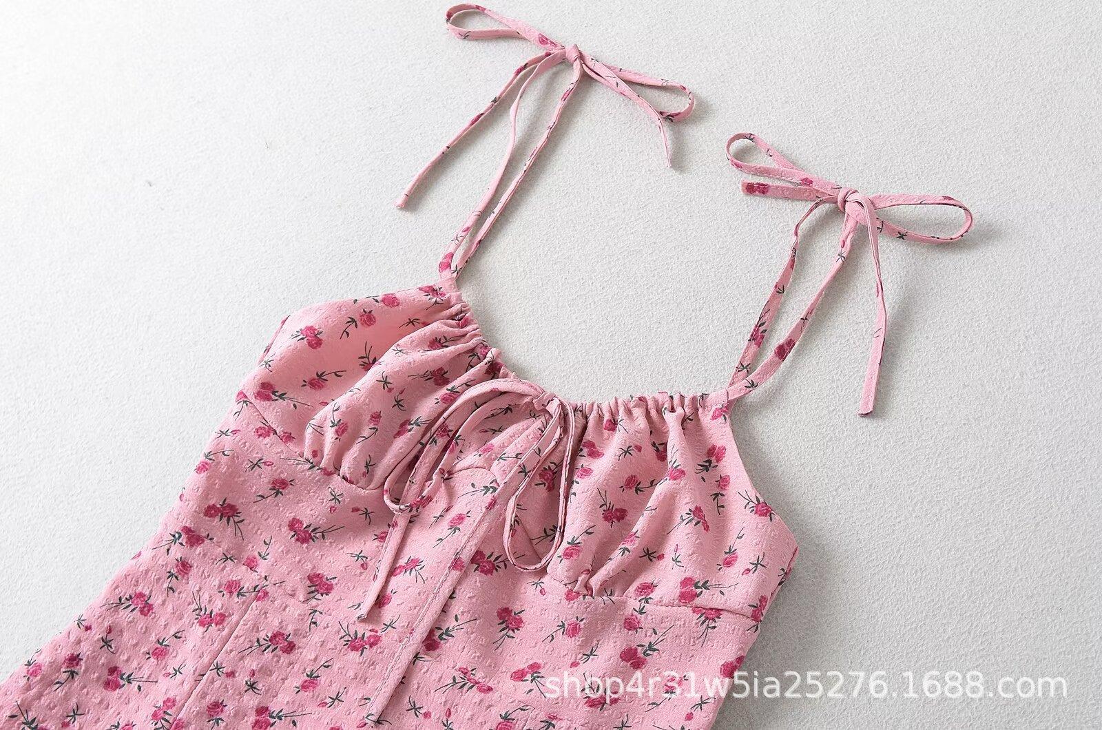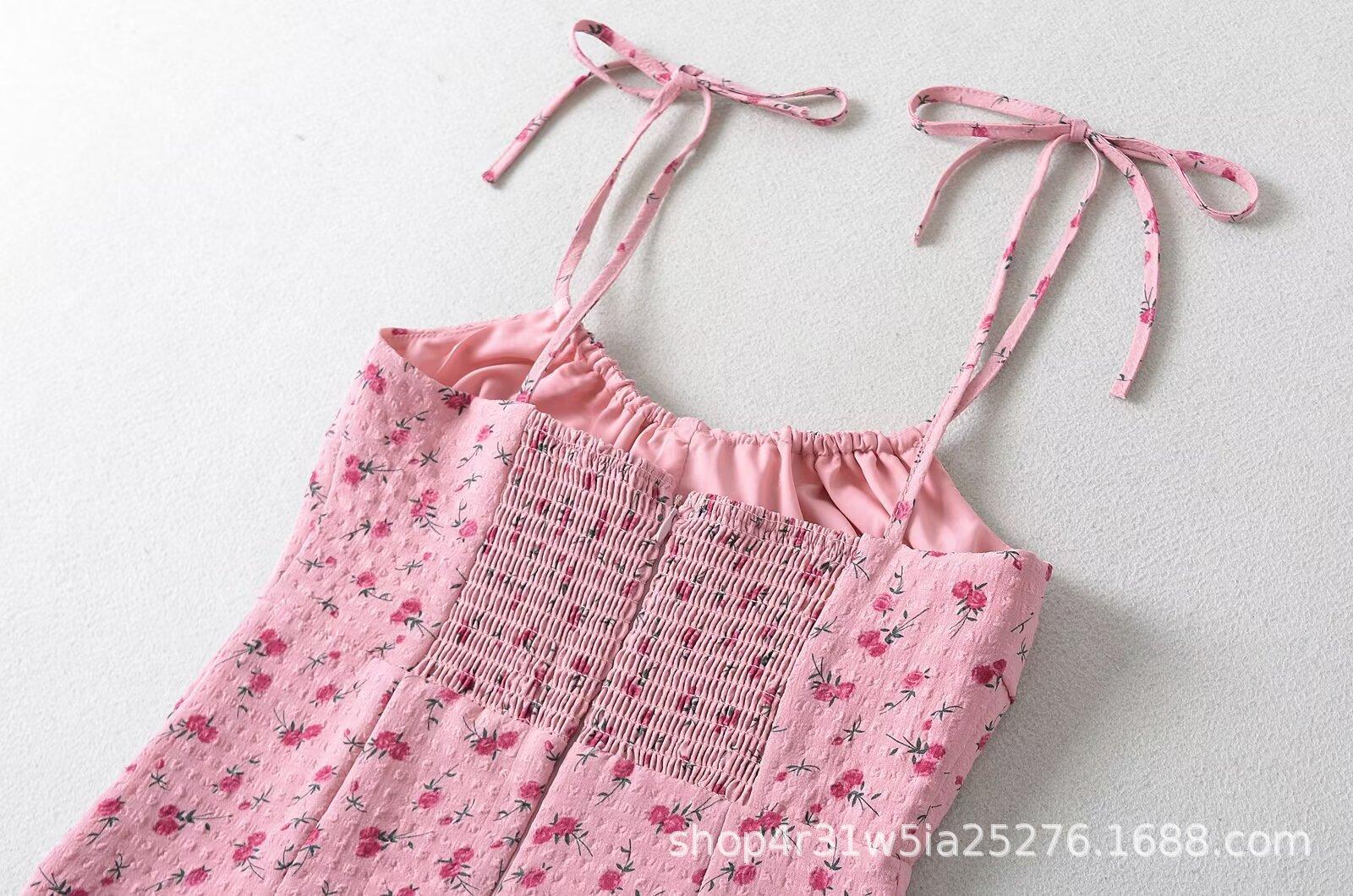 Estilo Europeo y Americano 2024 Verano Nuevo Ropa de Mujer Vestido de Tirantes Ajustado con Estampado Retro Francés al Por Mayor