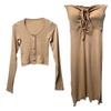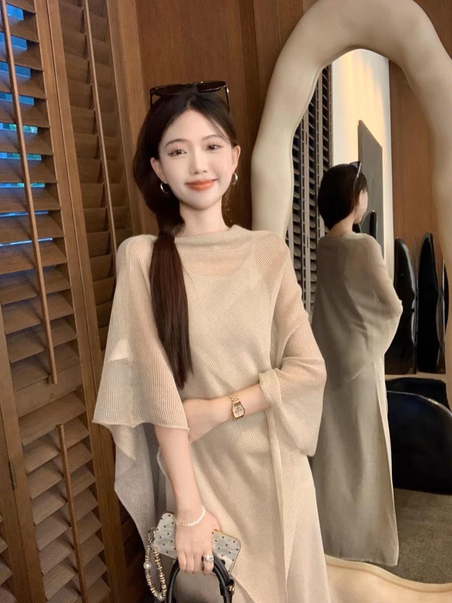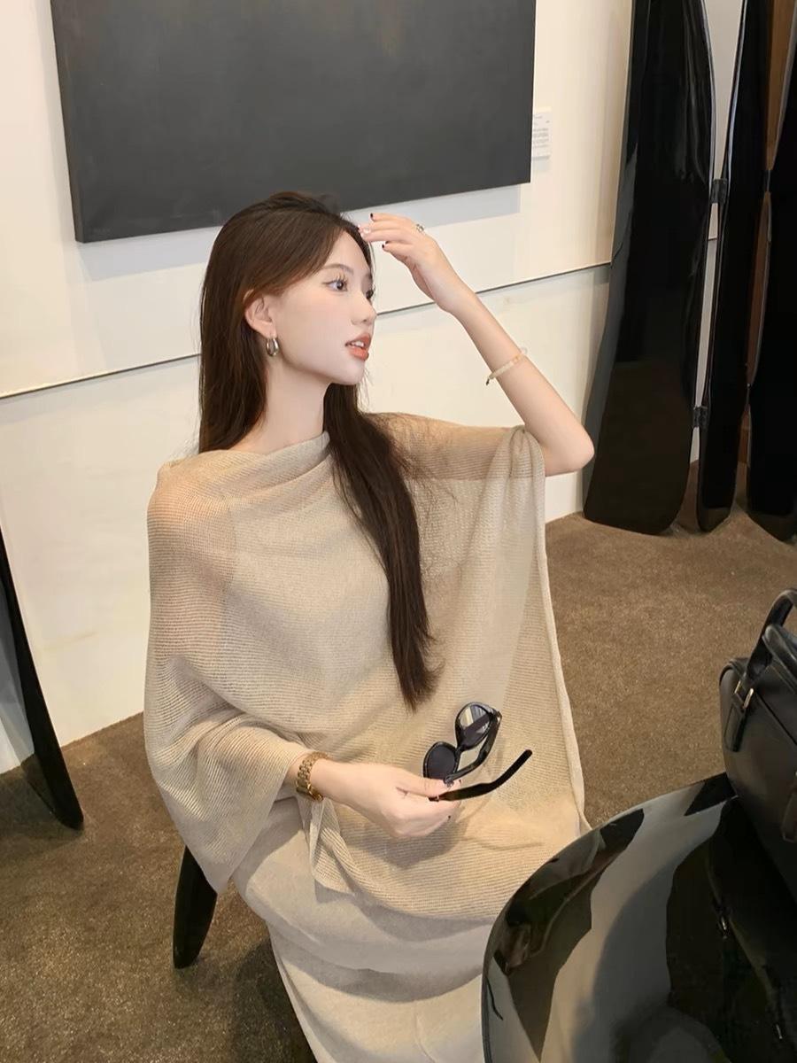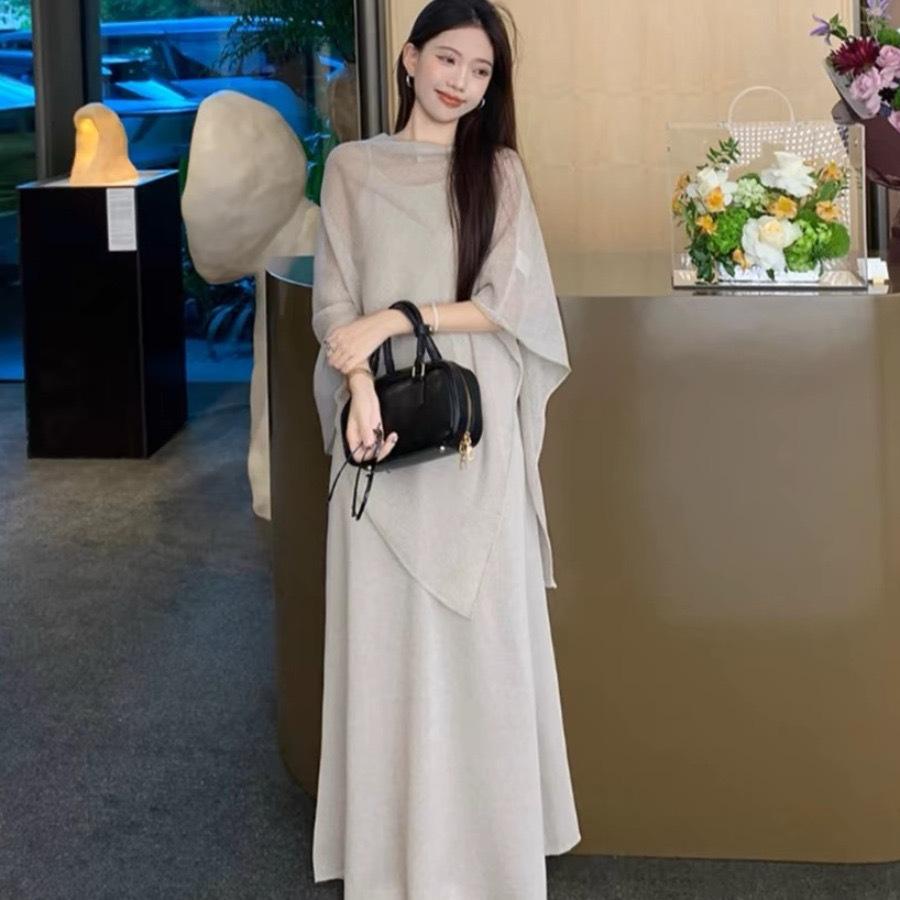 Estilo Flojo Irregular Micro-Transparente Tejido Cubrehombros Chal Temperamento Vestido de Tirantes Espagueti Conjunto de Dos Piezas Otoño 2025 Nuevo
