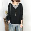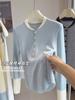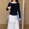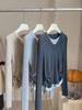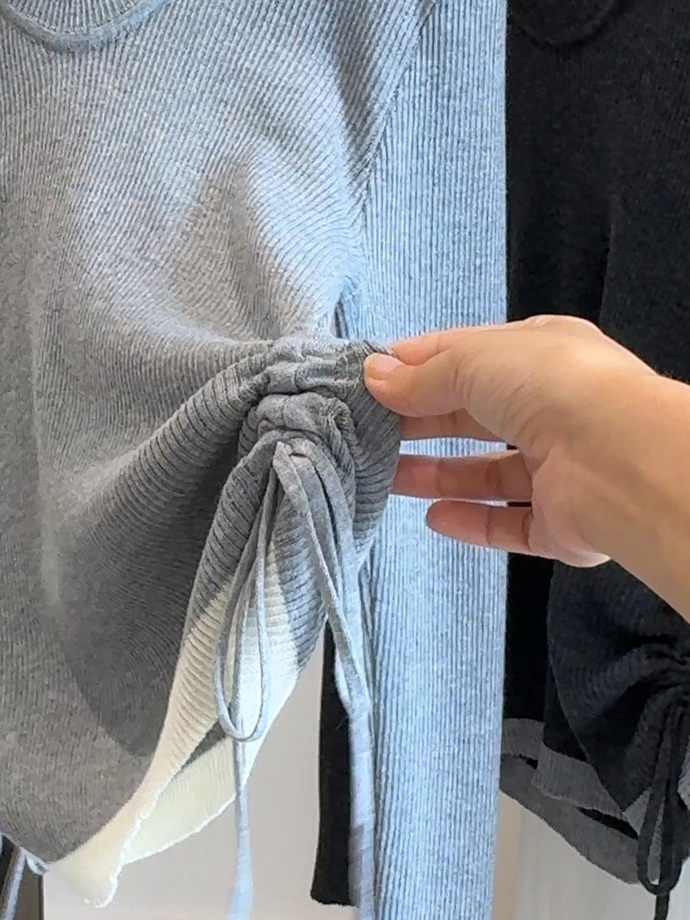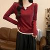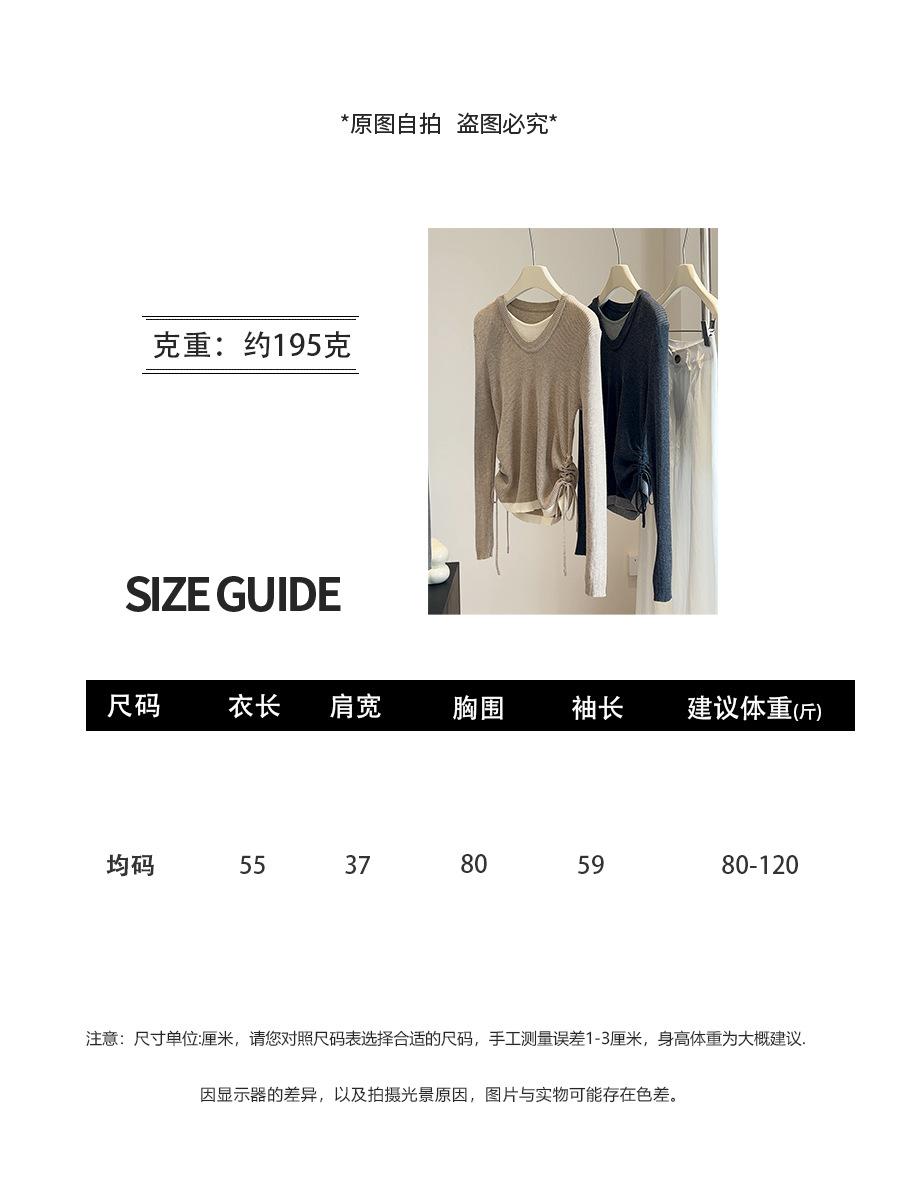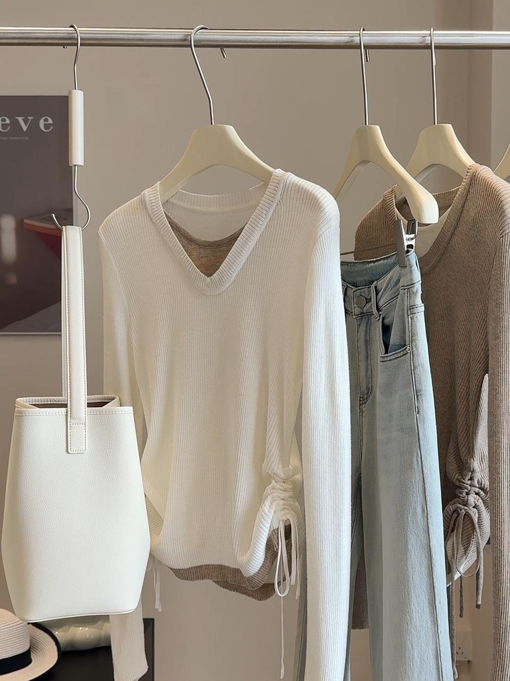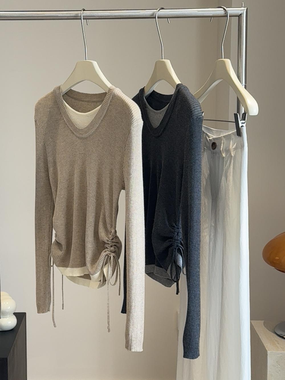 Principios de Otoño Estilo Coreano de Alta Gama 2025 Nuevo Camiseta Básica de Cuello Redondo para Mujer Falso Dos Piezas Manga Larga Cintura con Cordón Top de Punto
