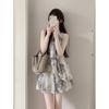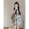 Ink Print Halter Neck Sleeveless Top, skirt, Ink Printed Halter Sleeveless Top + Skirt
