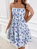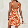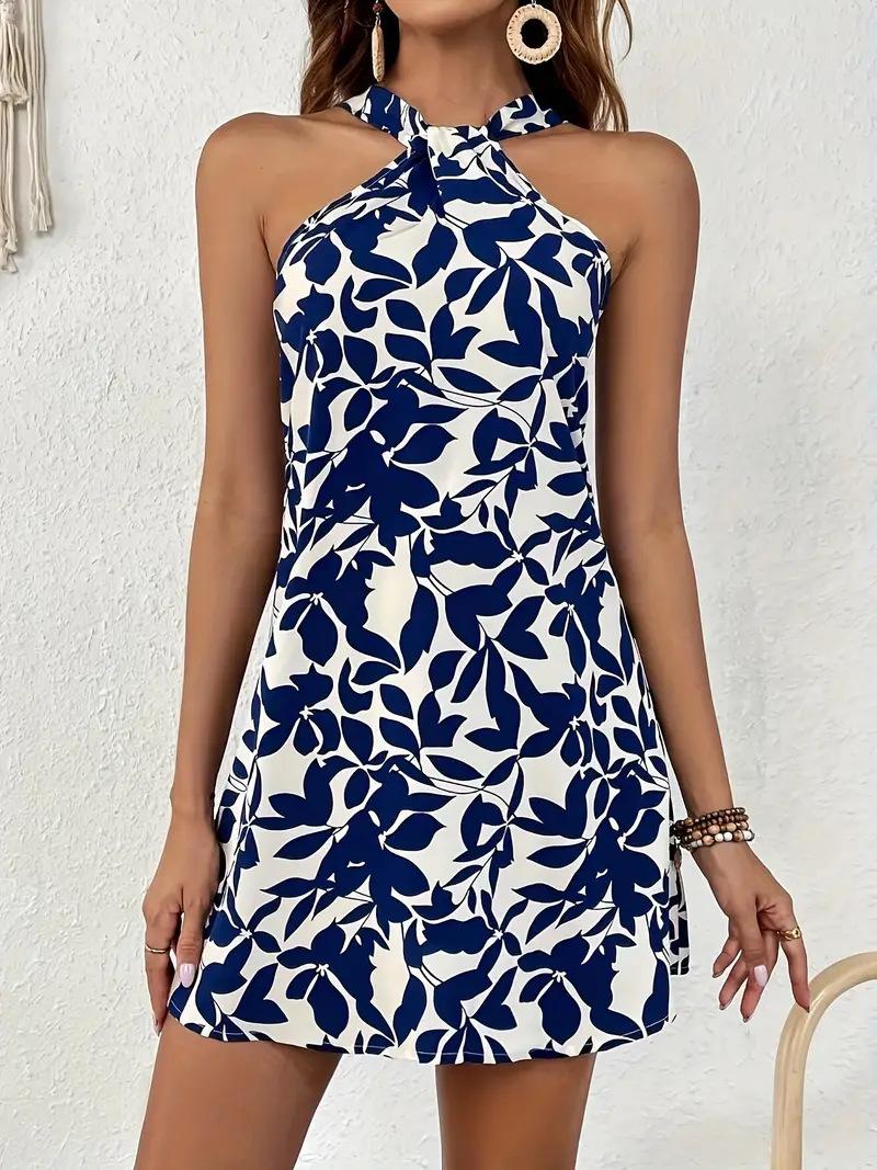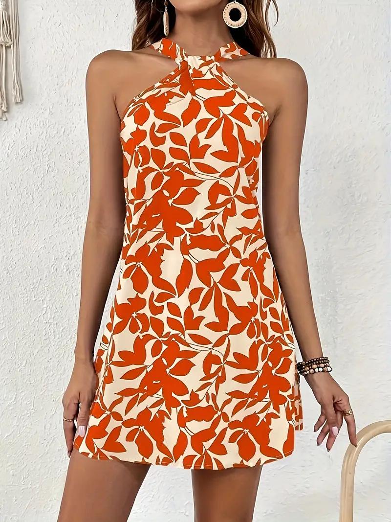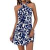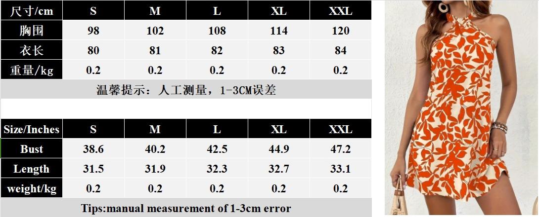 2024 Amazon Transfronterizo Más Vendido Europeo y Americano Sexy Sin Mangas Espalda Descubierta Vestido Corto Estampado de Hojas Vestido Halter