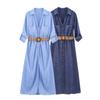 Comercio Exterior 2025 Nuevo Estilo de Verano Vestido Midi Estilo Europeo y Americano con Diseño de Cinturón Estampado Decorativo en Capas Falda Larga
