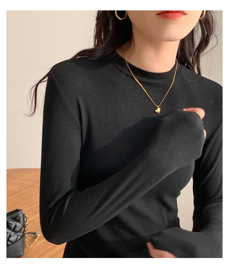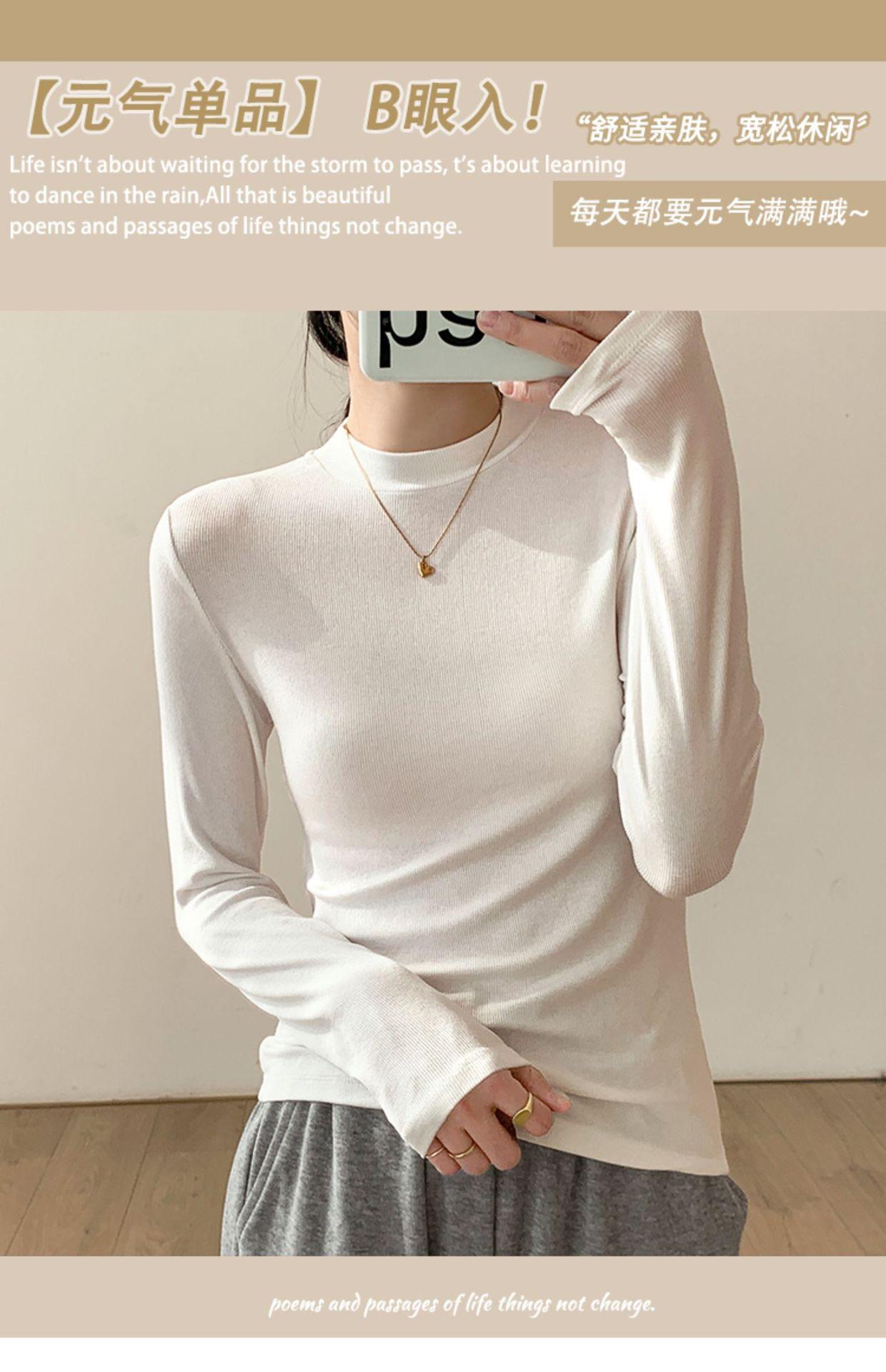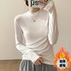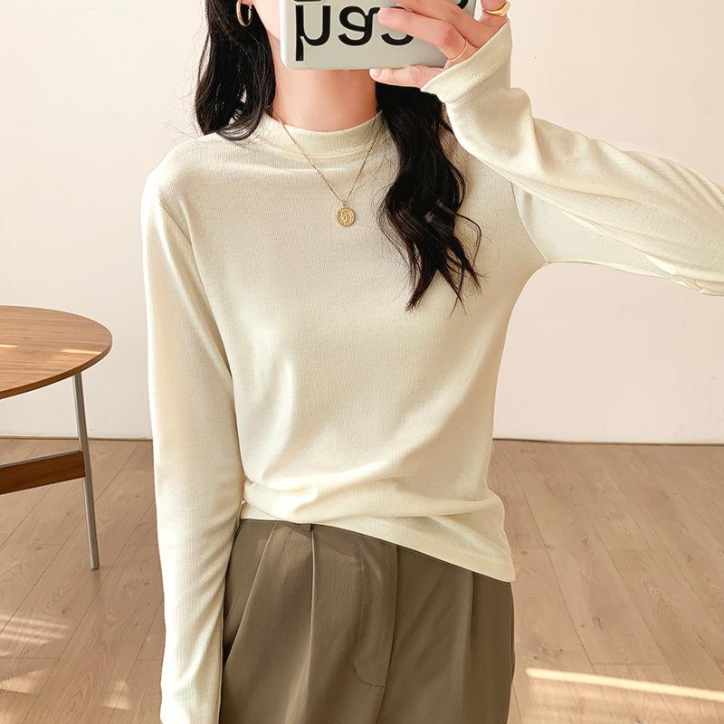 Camiseta Básica de Manga Larga Cepillada de Estilo Casual Simple Coreano para Mujer Moda Primavera 2025 Elegante Top Interior de Cuello Alto