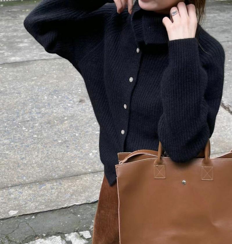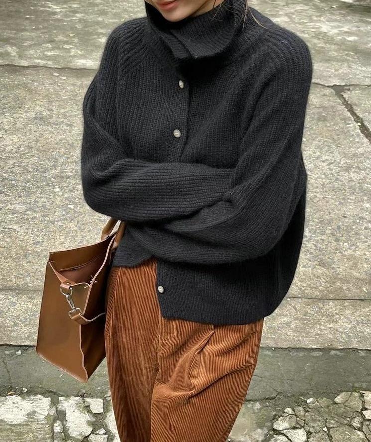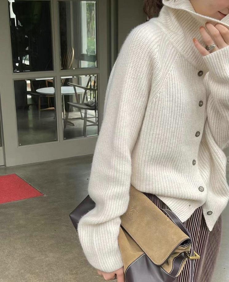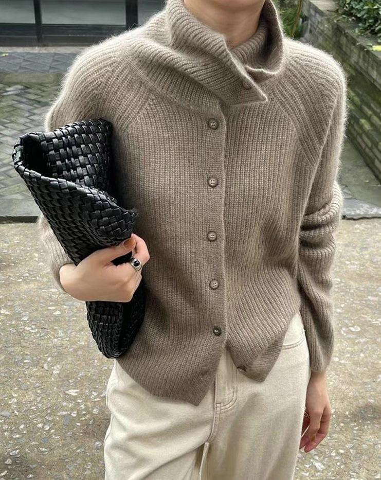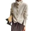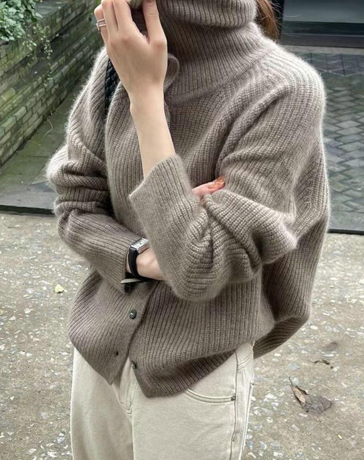 Cárdigan de punto de cuello alto para mujer para primavera y otoño, europeo de alta gama, simple, holgado, de hilo grueso, suéter básico de primavera, chaqueta de moda