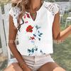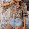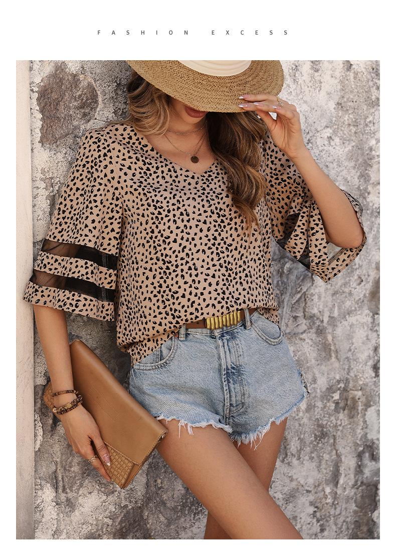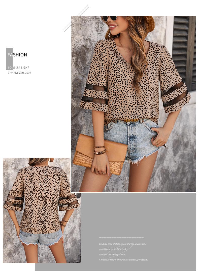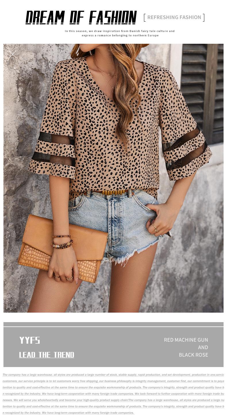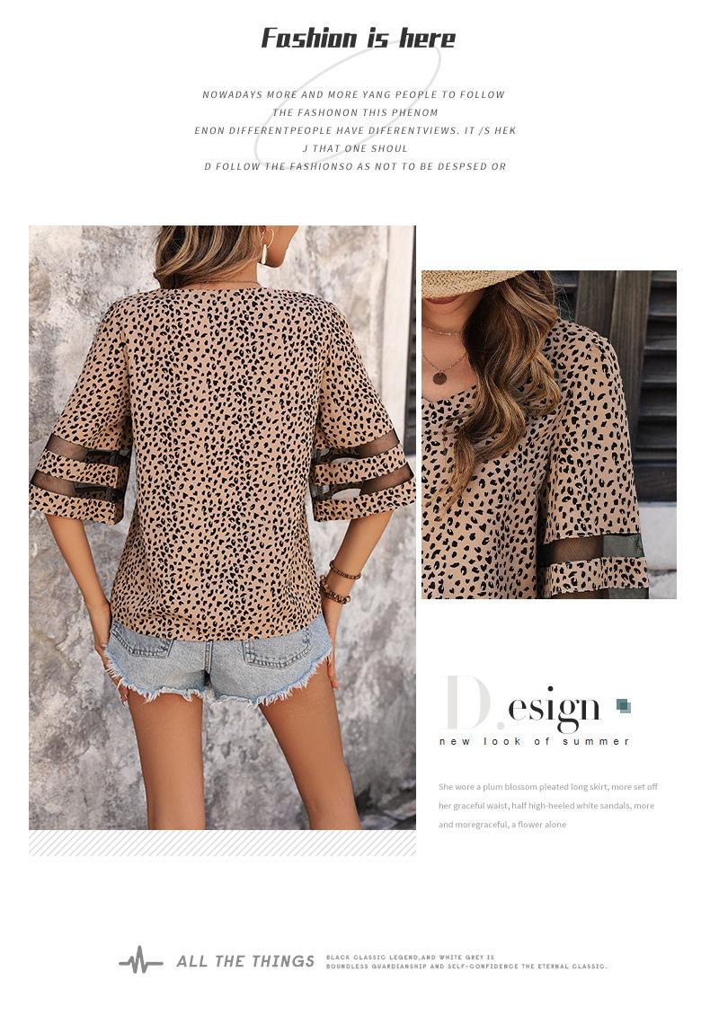 Verano 2024 Nueva Camisa de Mujer Comercio Exterior Transfronterizo Empalme de Malla Top de Manga Corta Cuello en V Lunares Blusa Casual