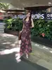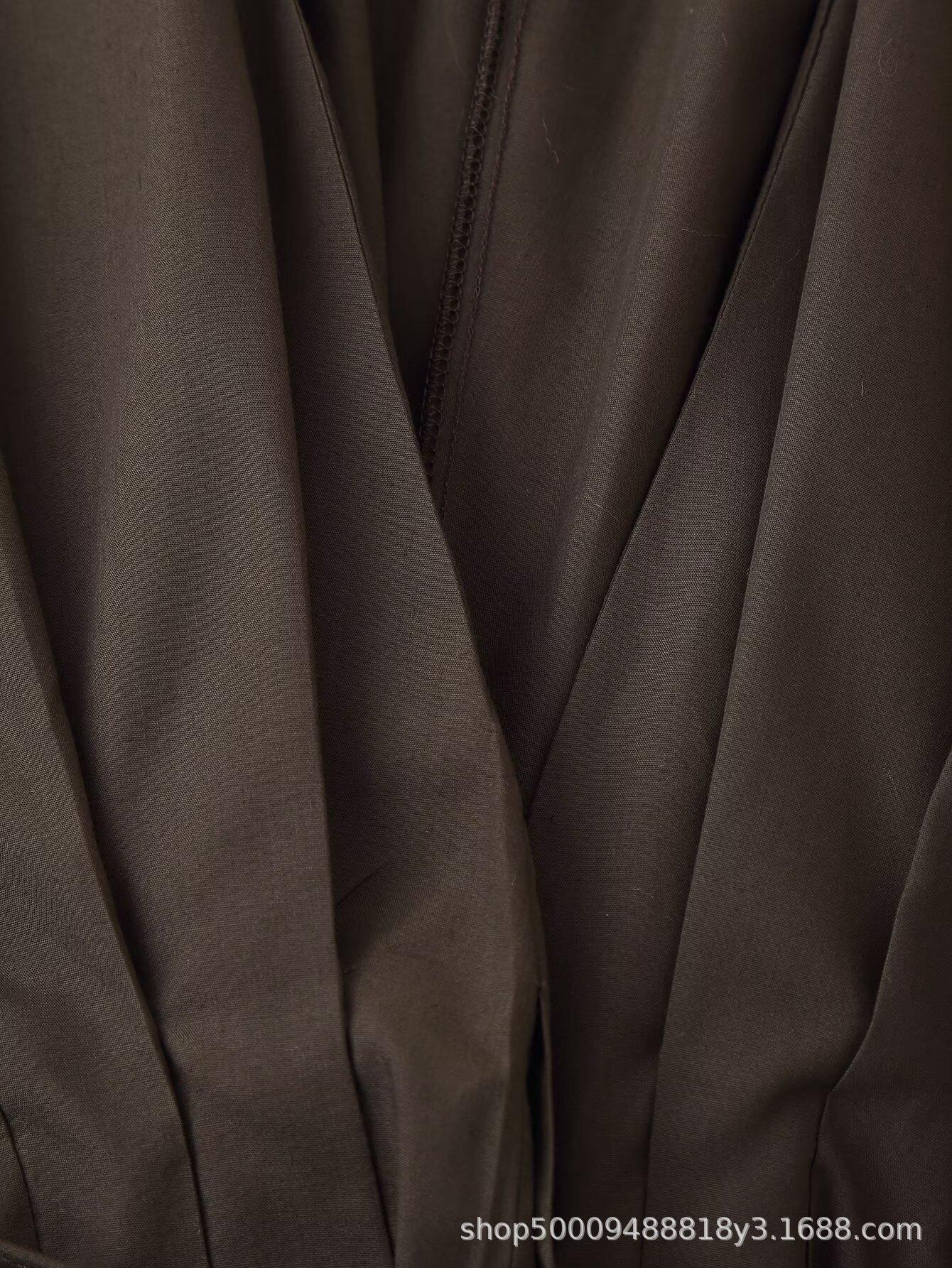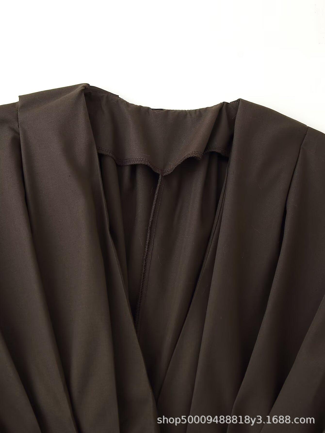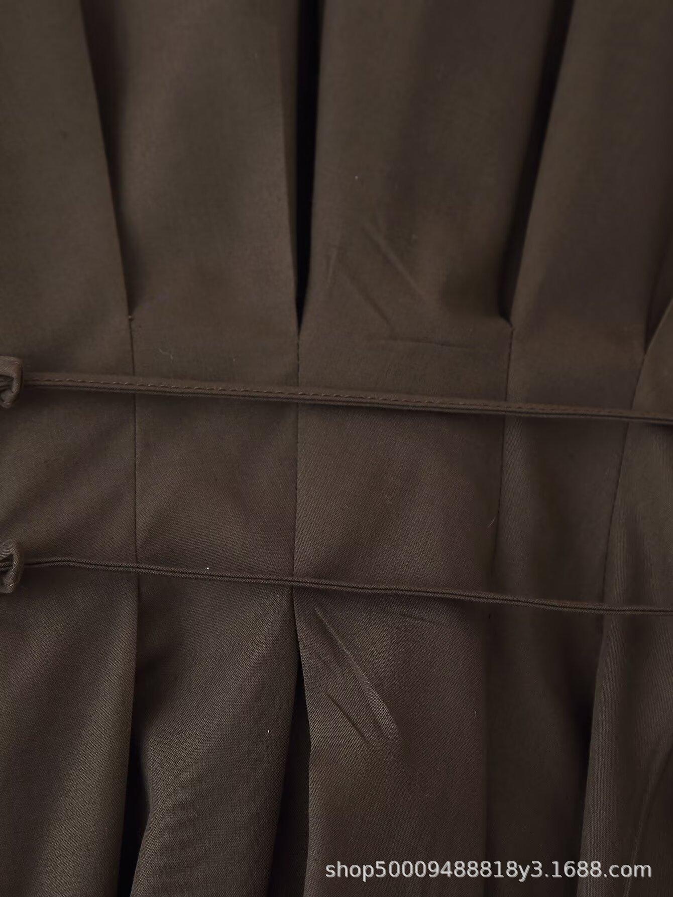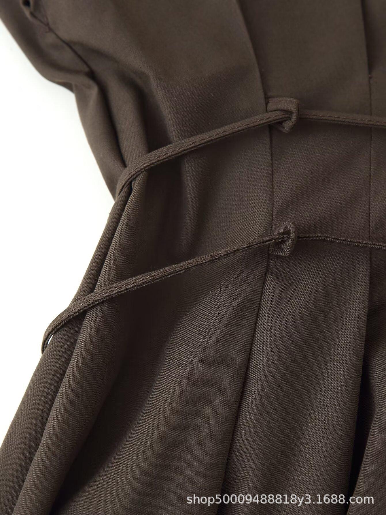 Exportación Transfronteriza 2025 Nueva Ropa de Verano para Mujer Aspecto Elegante y Adelgazante Cintura con Cordones Cuello en V Vestido Plisado