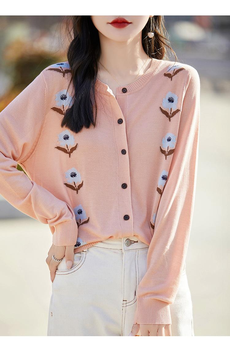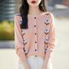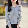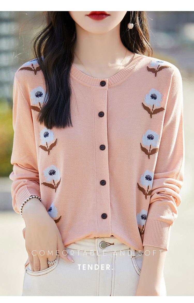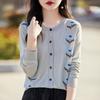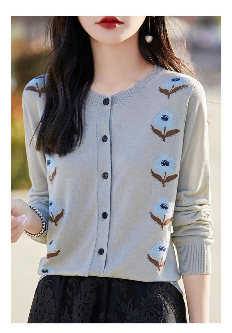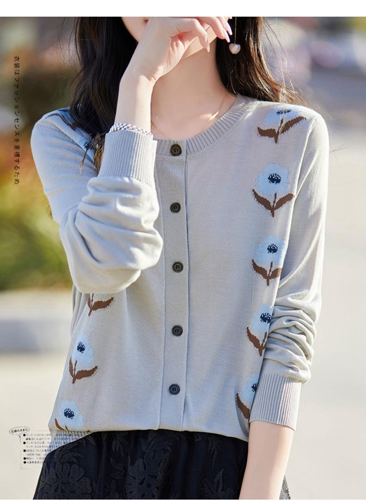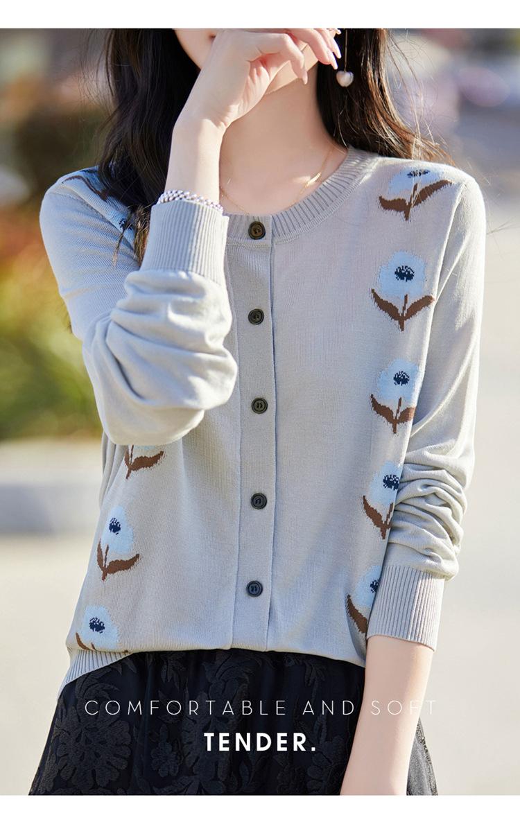Cárdigan de Punto de Cuello Redondo Nuevo Otoño Temprano 2025 para Mujer Jacquard Manga Larga Tops Suéter Suelto Tencel Top Exterior