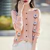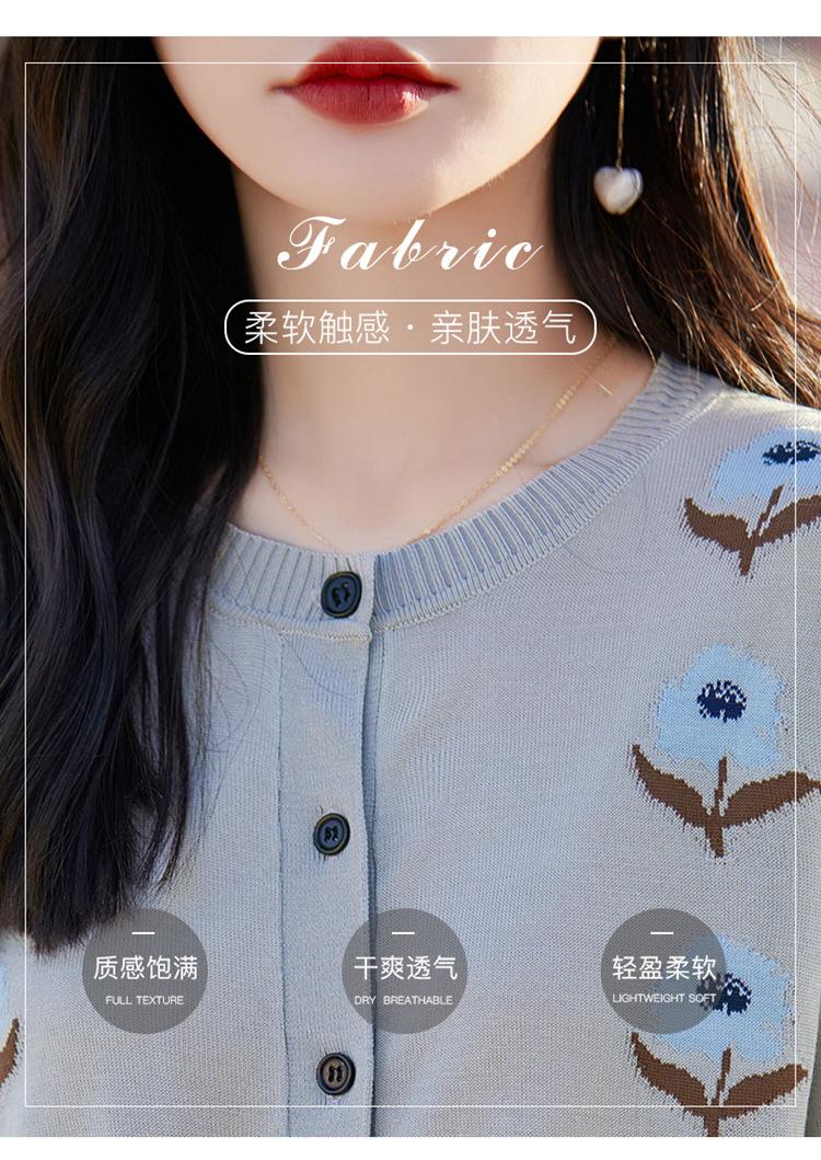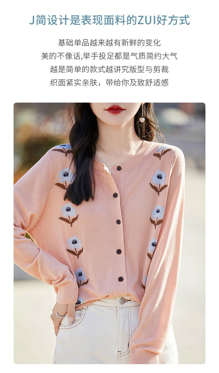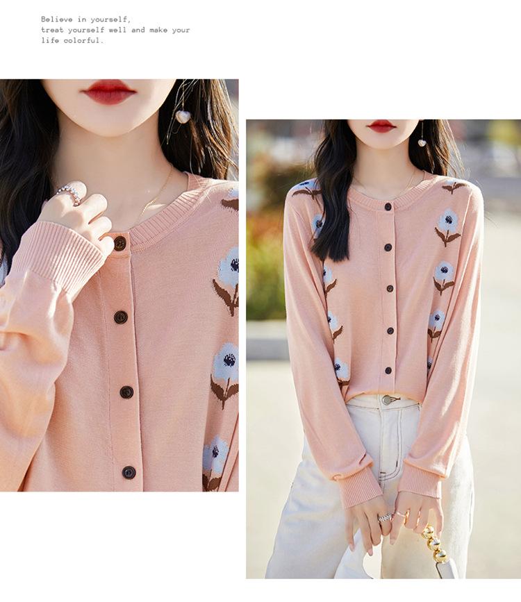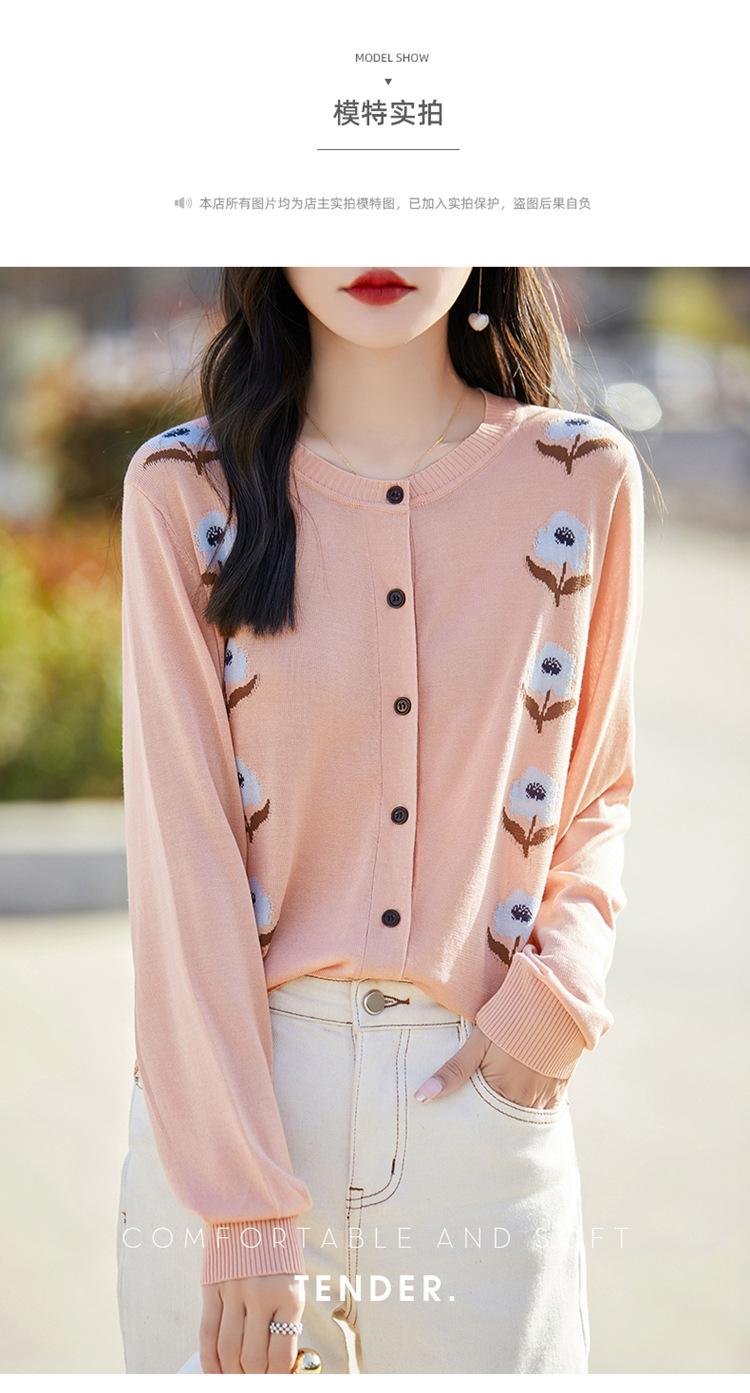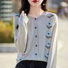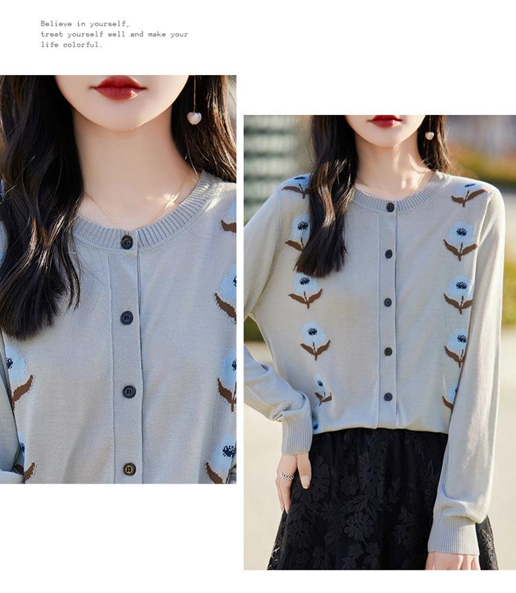Cárdigan de Punto de Cuello Redondo Nuevo Otoño Temprano 2025 para Mujer Jacquard Manga Larga Tops Suéter Suelto Tencel Top Exterior