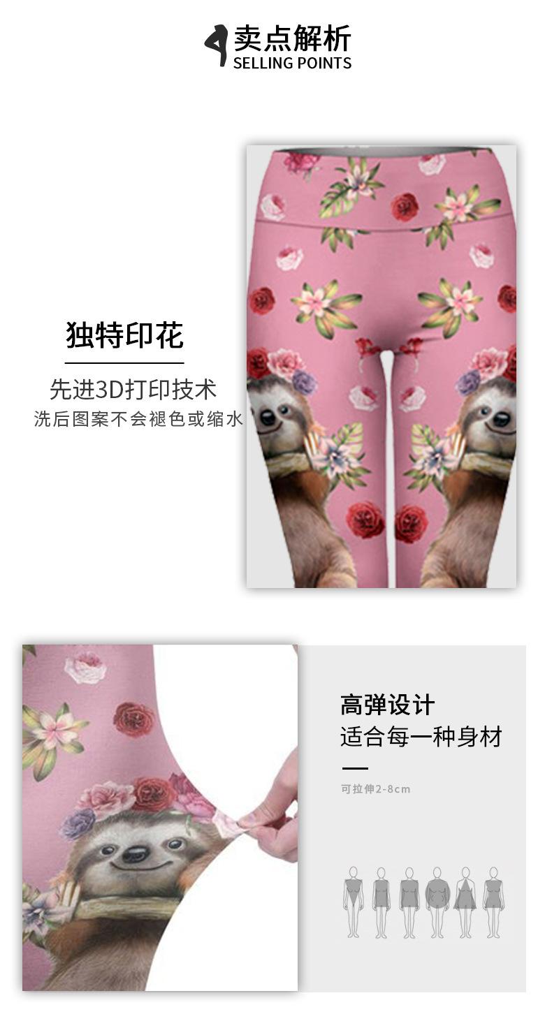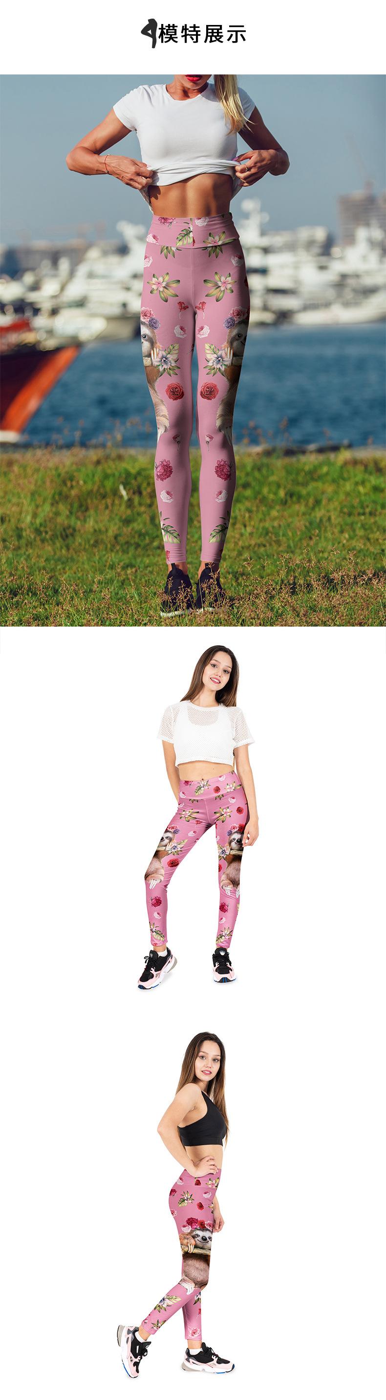 Pantalones de yoga estampados personalizados de lotes pequeños de perezoso europeos y americanos, lijado a doble cara, alta elasticidad, cintura alta, cómodos y ponibles