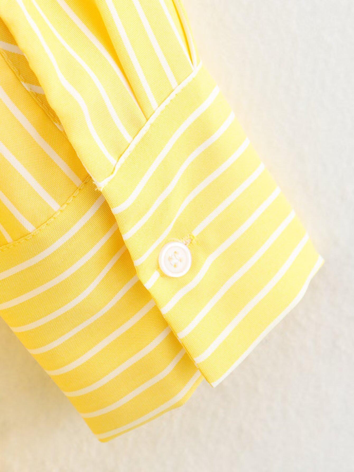Camisa amarilla de rayas sencilla, versátil, casual, moderna, estilo europeo y americano, superventas en Amazon y AliExpress