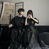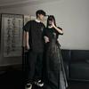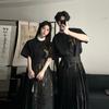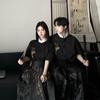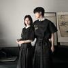 Hanfu Mejorado Estilo Chino Nuevo Conjunto Falda Mamian Traje de Pareja Traje de Verano con Botones de Plato y Bordado de Hoja de Bambú Camisa Retro