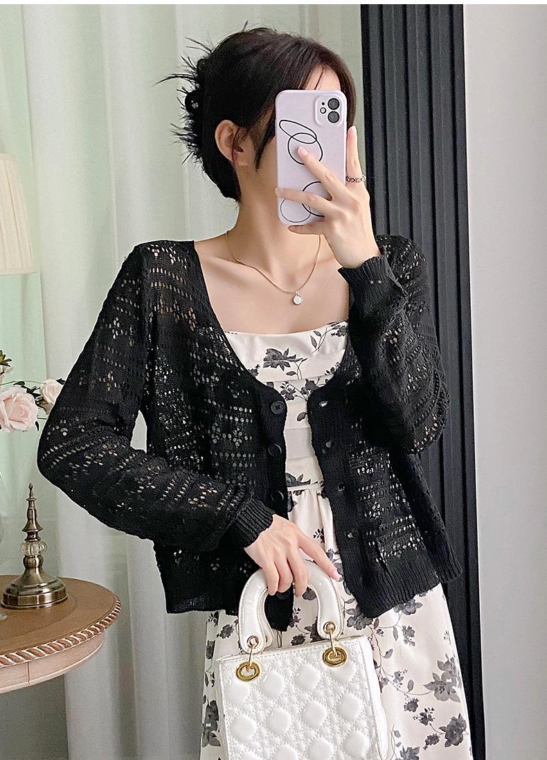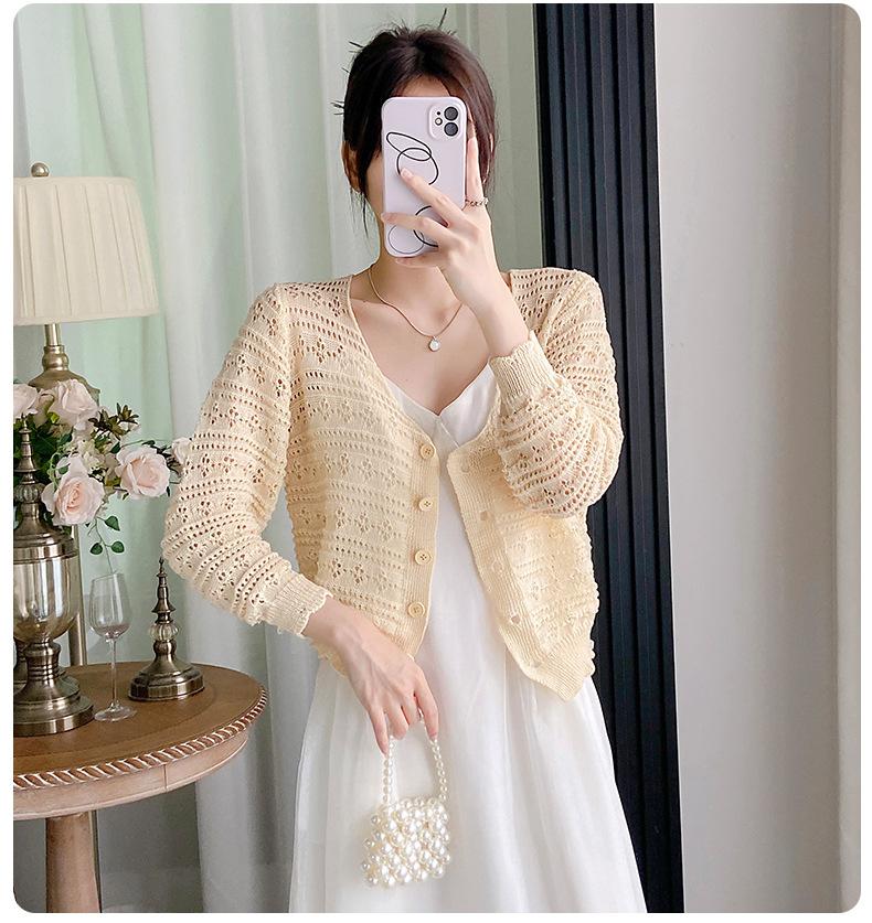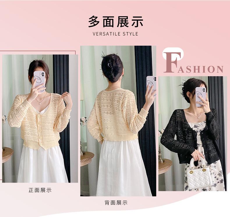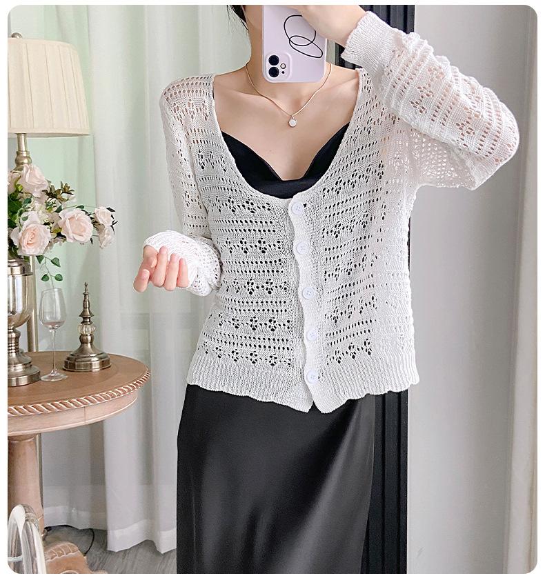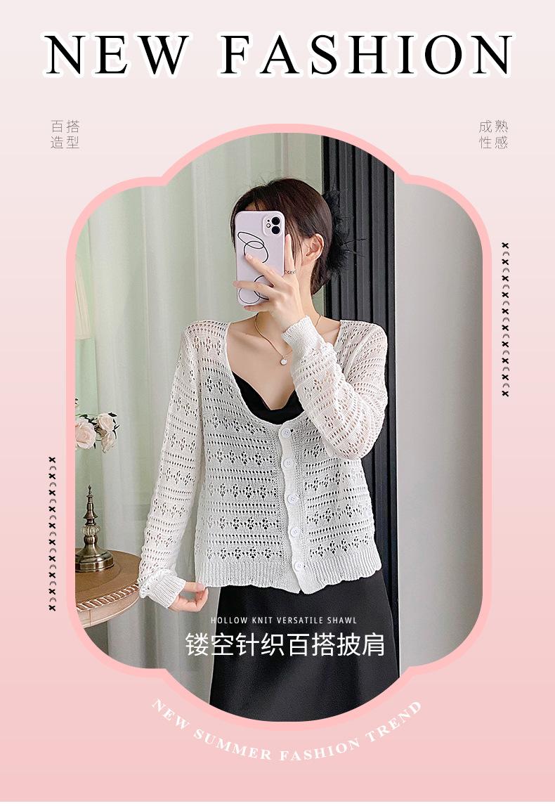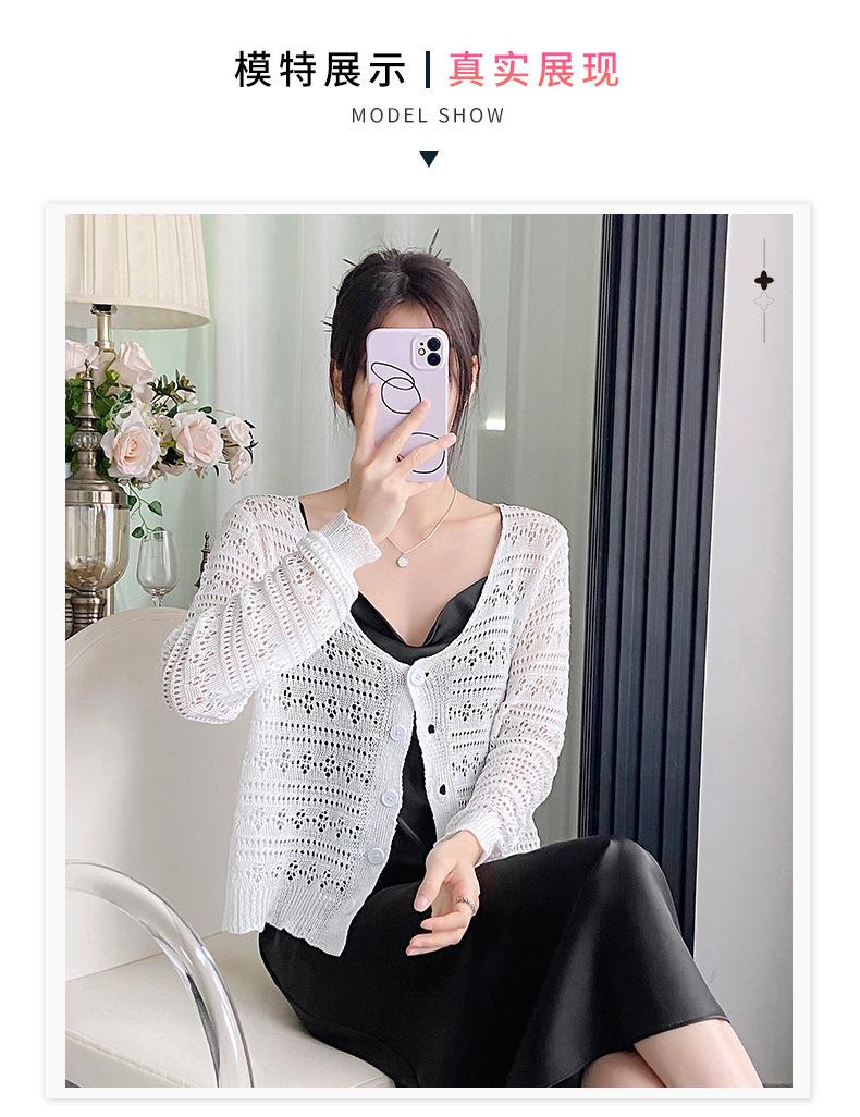 Cárdigan Calado Nuevo para Mujer Top de Manga Larga Delgado Cómodo Transpirable Casual Versátil Prendas de Punto Chaqueta de Temperamento de Alta Gama