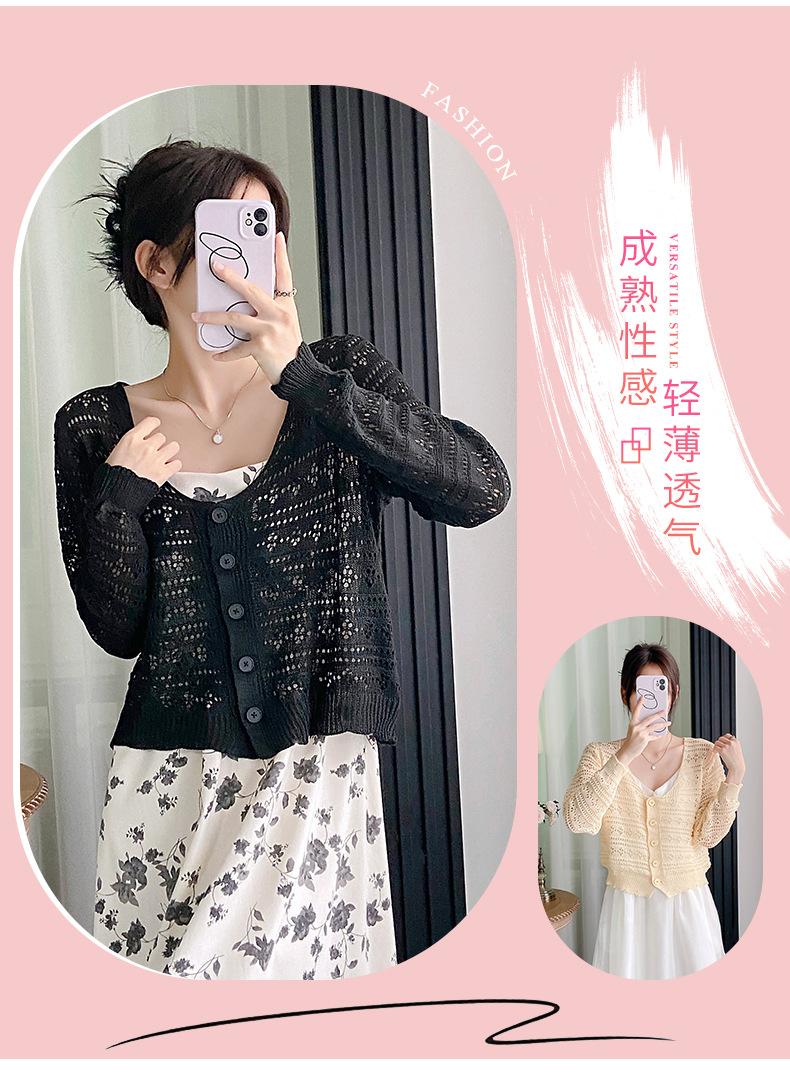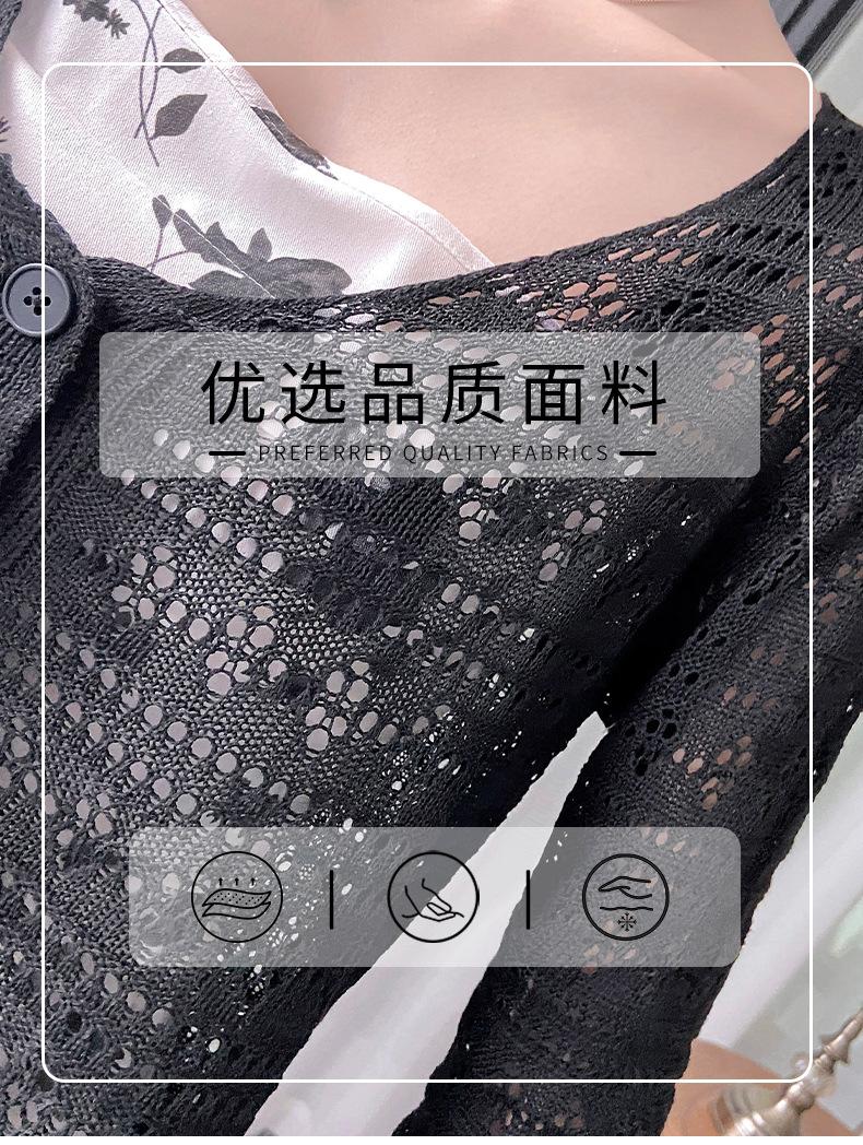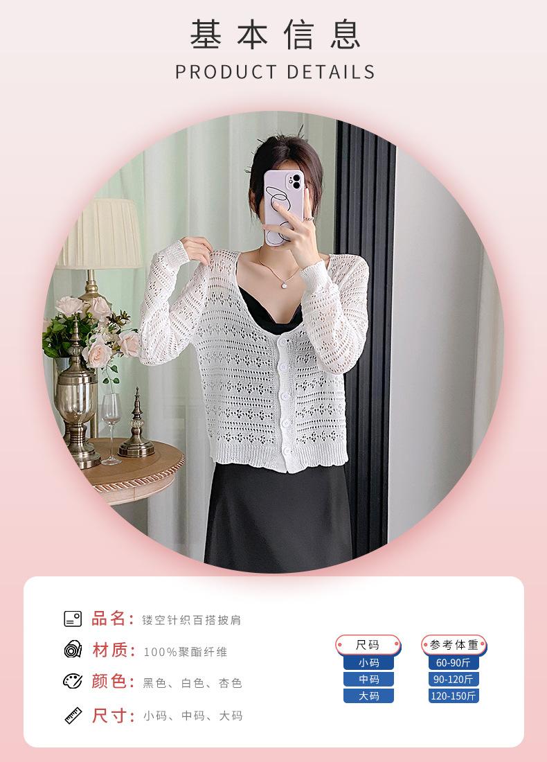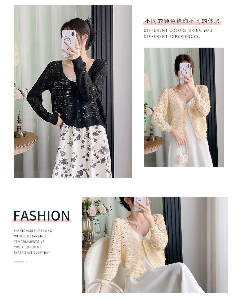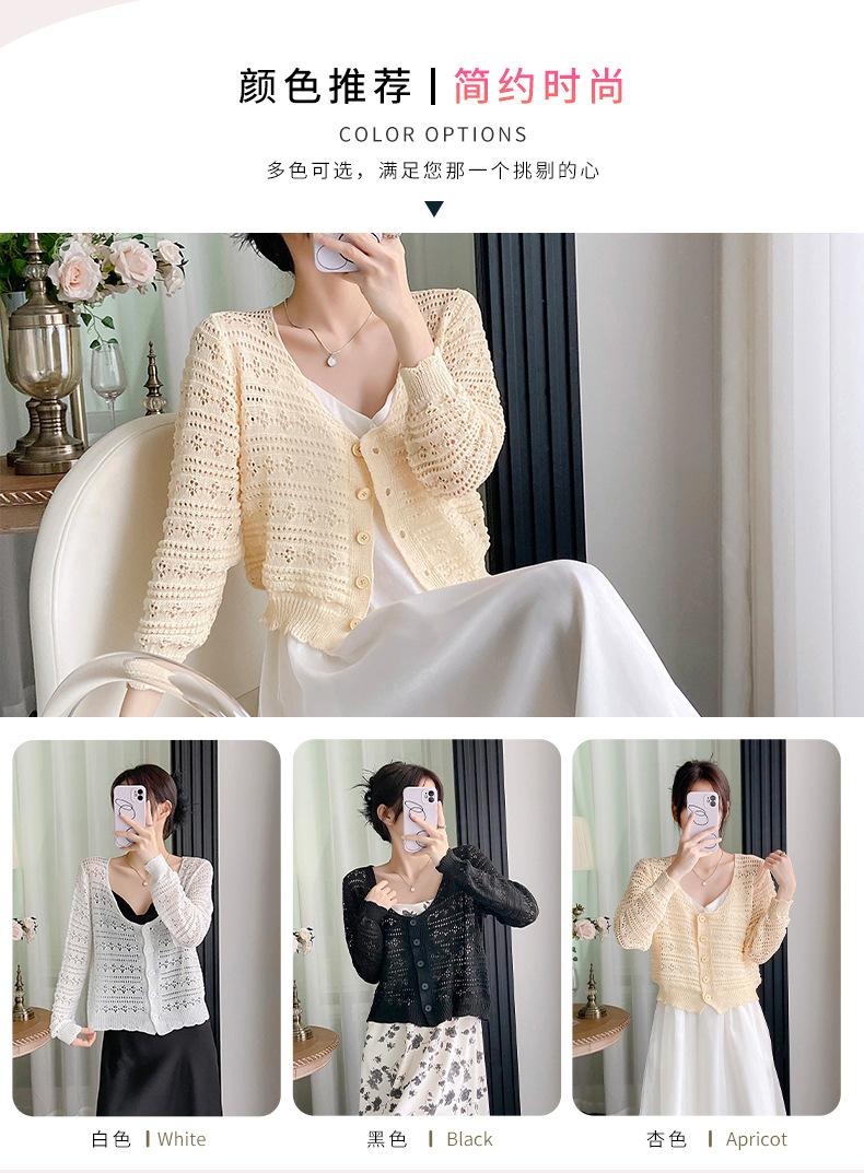 Cárdigan Calado Nuevo para Mujer Top de Manga Larga Delgado Cómodo Transpirable Casual Versátil Prendas de Punto Chaqueta de Temperamento de Alta Gama