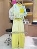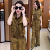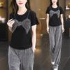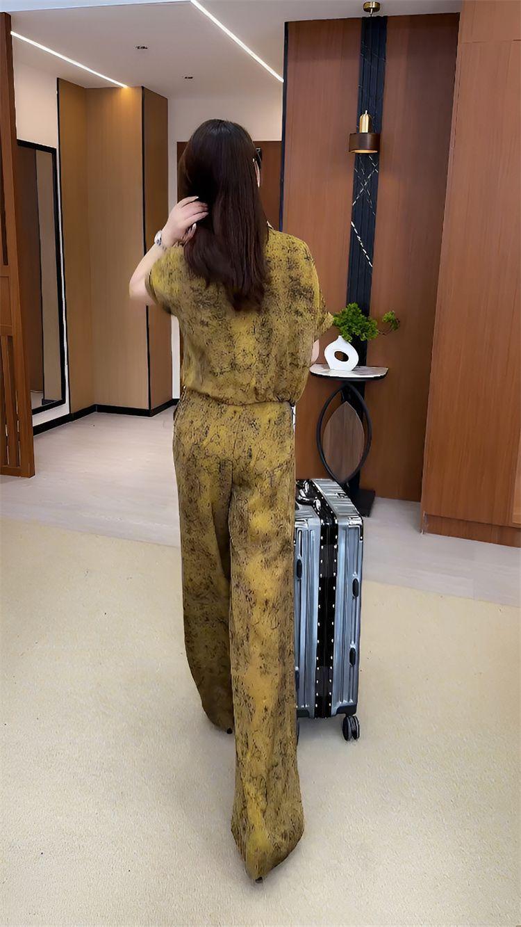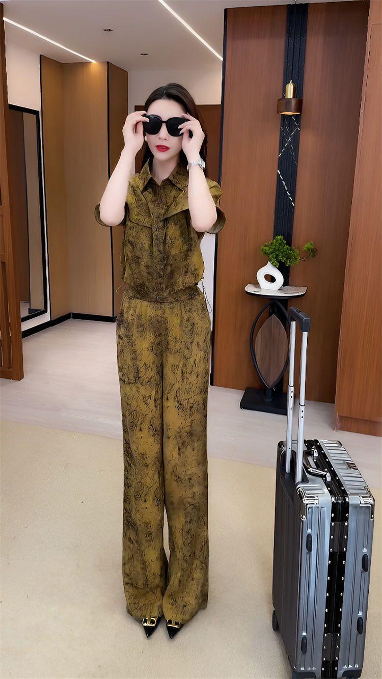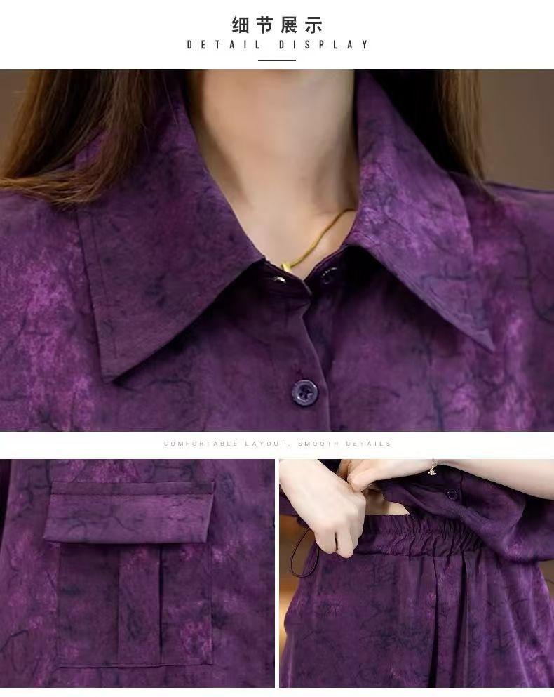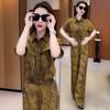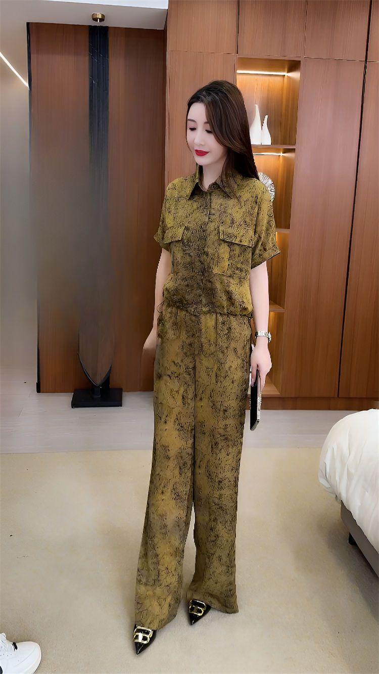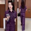 Verano Nueva Moda Camisa Reductora de Edad Pantalones de Pierna Ancha Adelgazantes Conjunto de Dos Piezas Talla Grande Casual Retro Traje de Manga Corta para Mujer