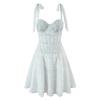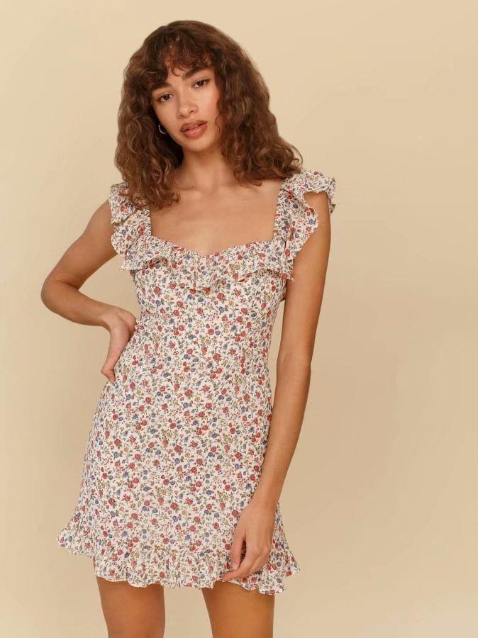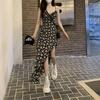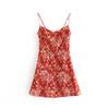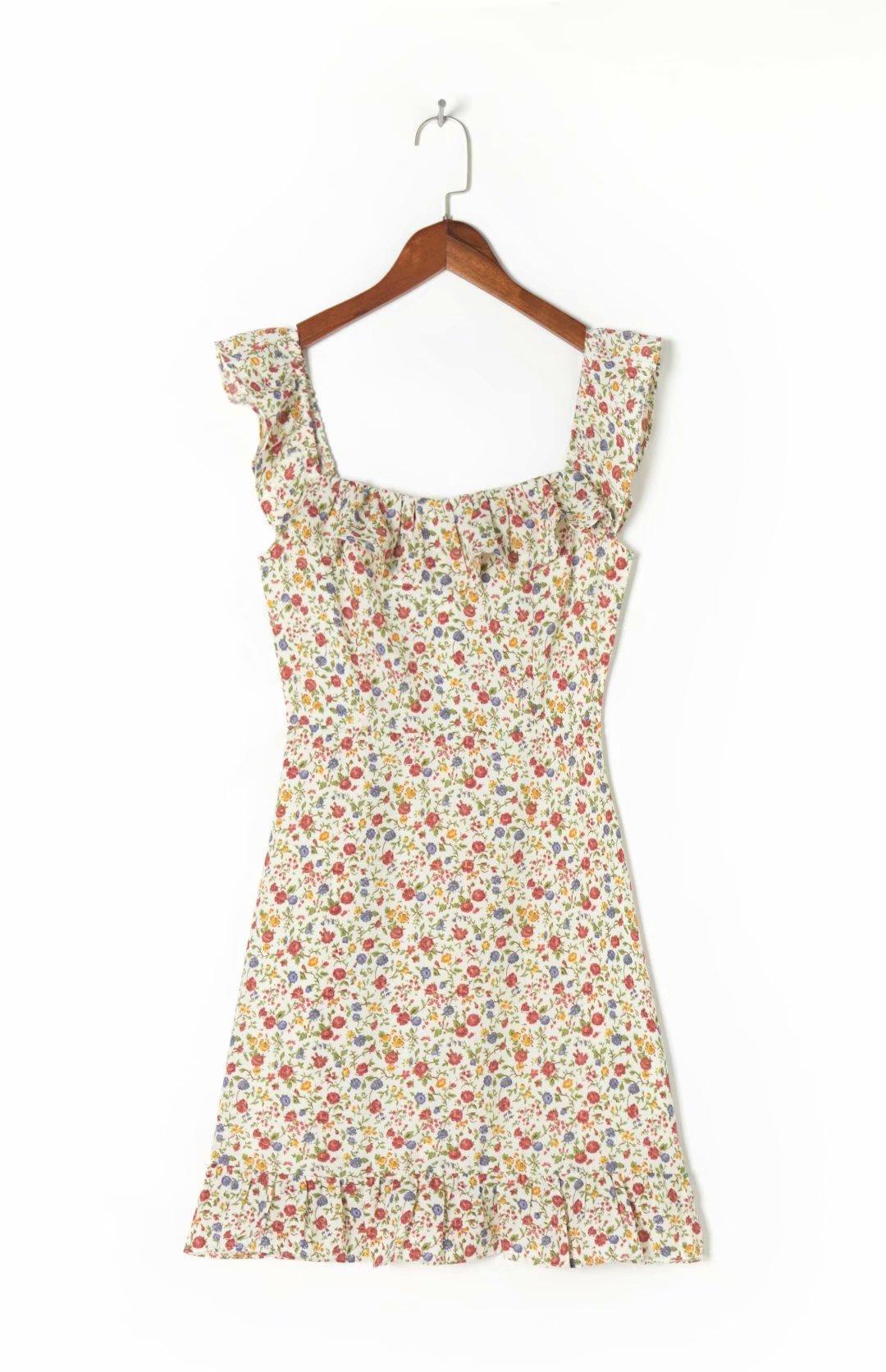 Verano Europeo y Americano Tipo Sling de Cintura Alta Encaje con Volantes Elegante Falda de Oficina Vestido Dulce con Flores Estampadas