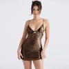 Este modelo está hecho de tela de seda de leche, que es suave y agradable para la piel, y tiene un diseño hueco en el pecho;