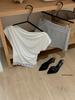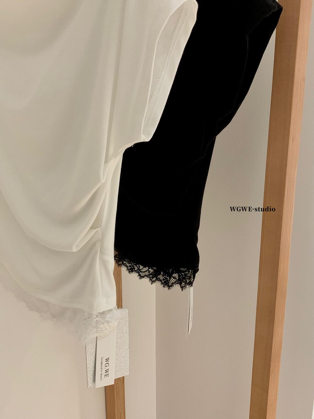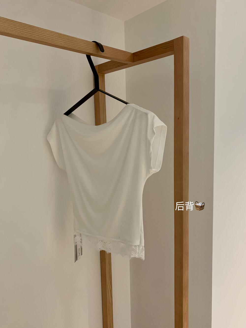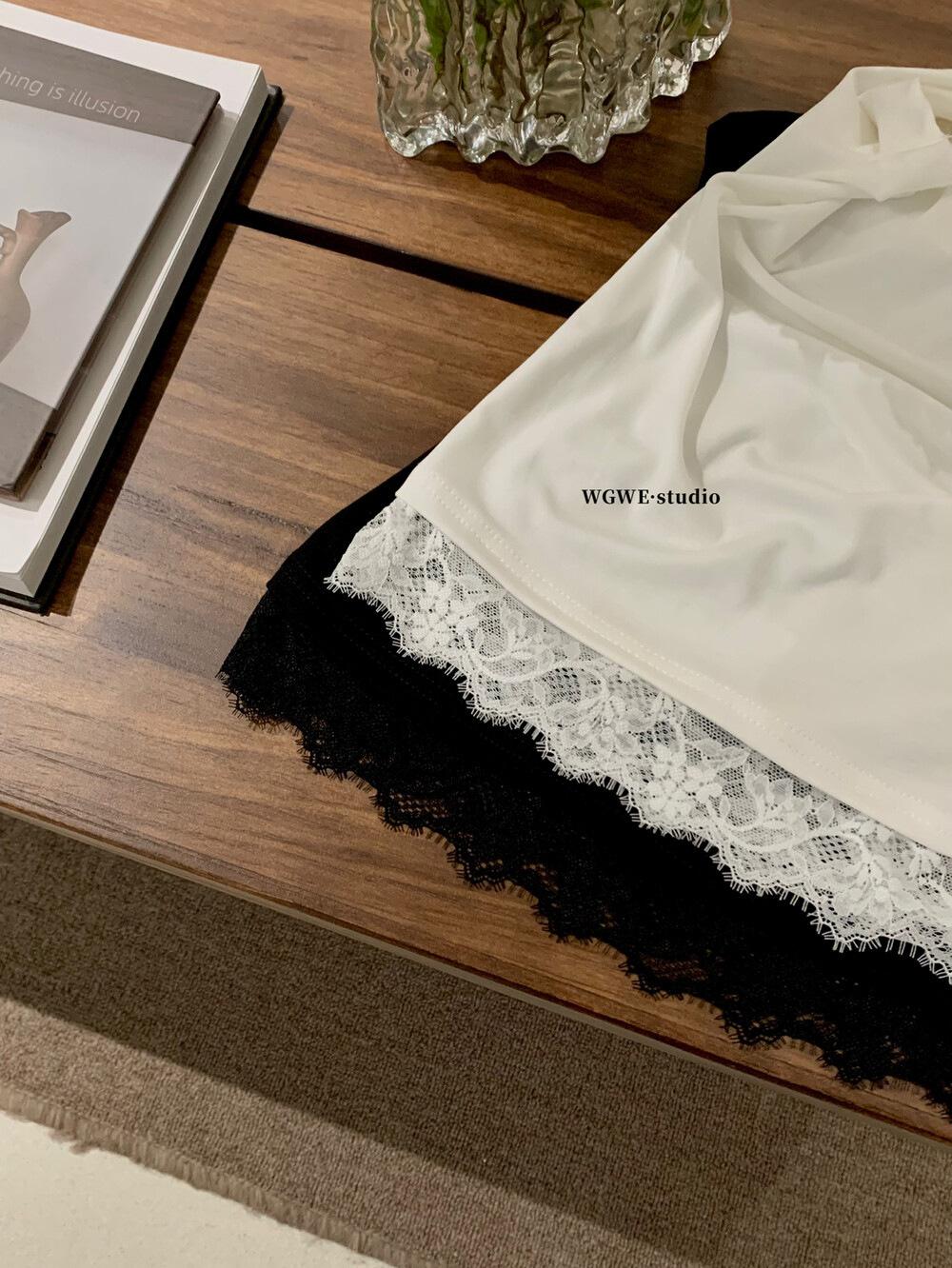 Liquidación sin devoluciones ni cambios Camiseta de moda pura y sexy para chica hot con encaje de retazos que adelgaza la cintura, de un hombro, sin mangas W6561