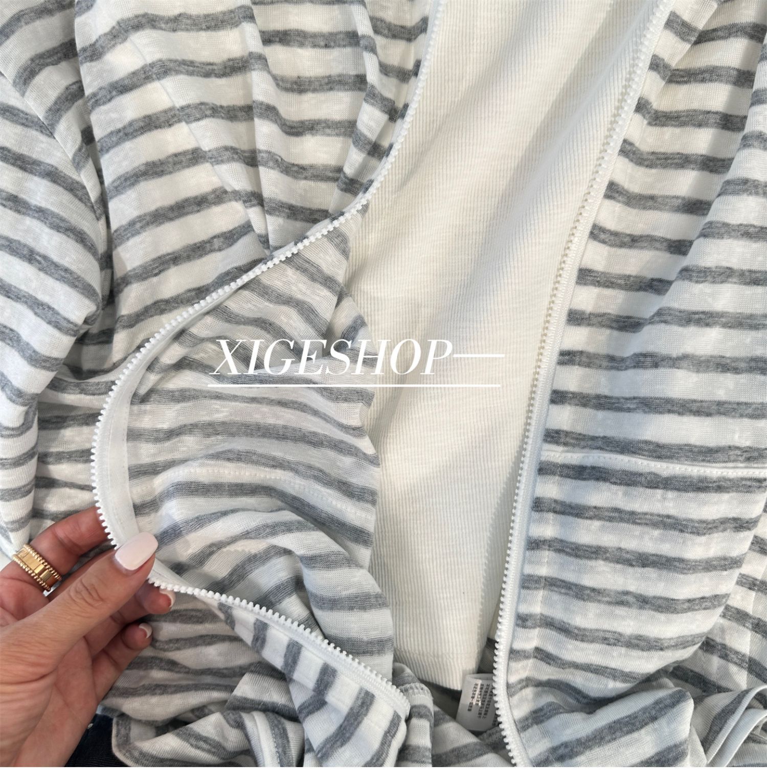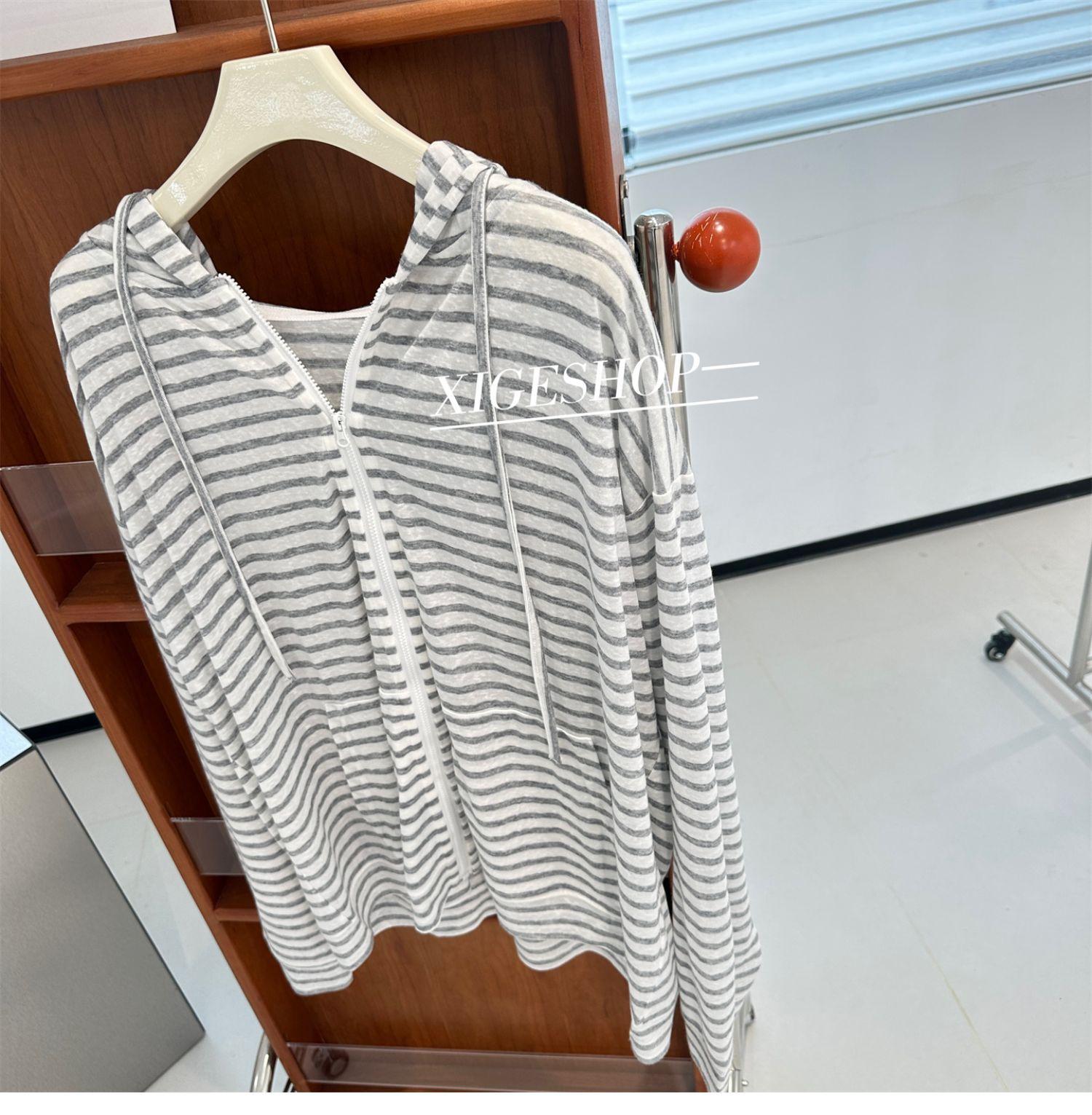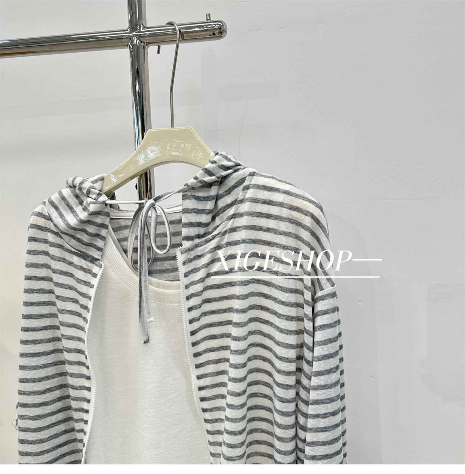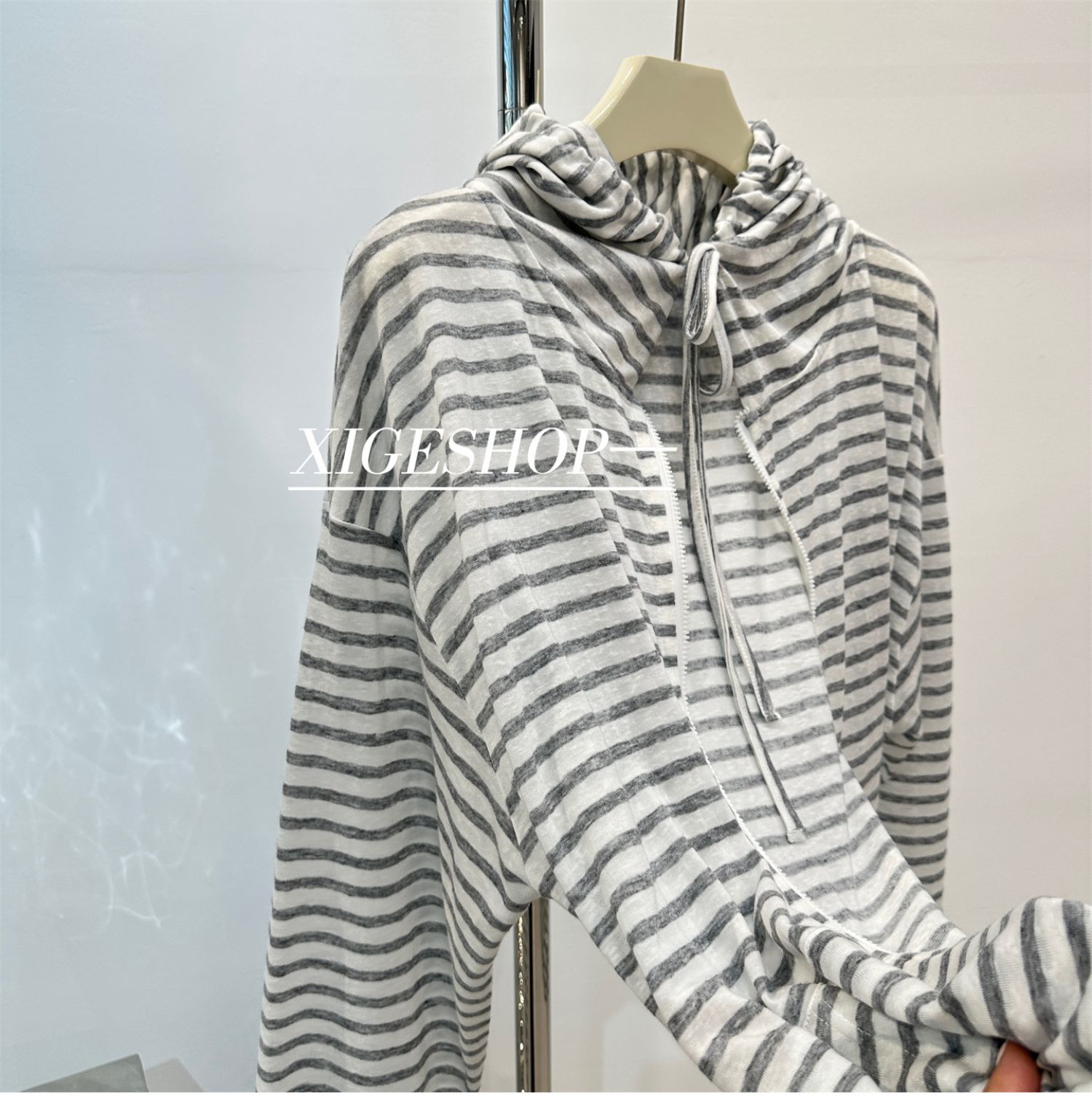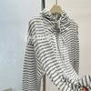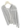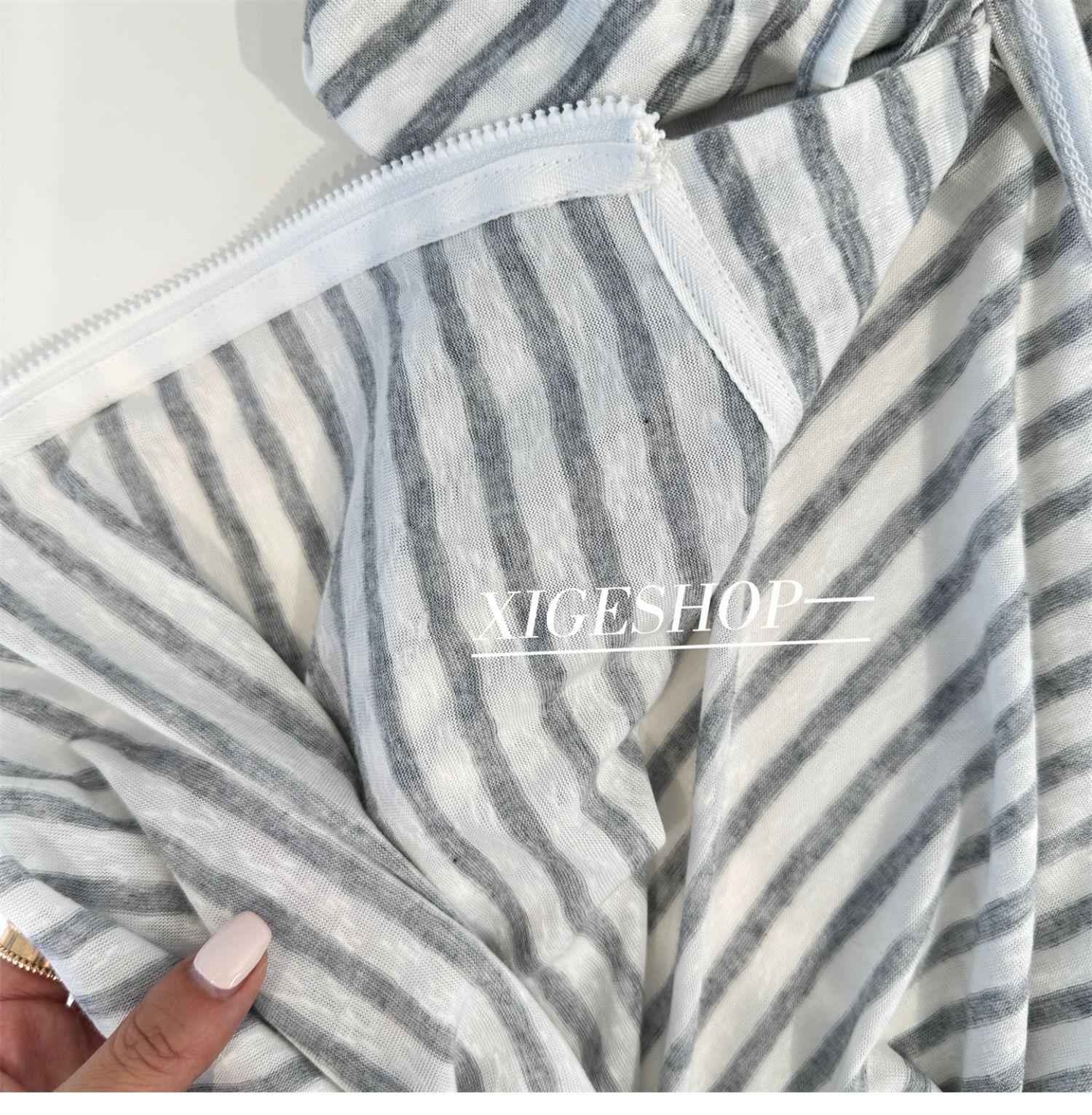 Sudadera con capucha a rayas grises para mujer Otoño temprano Delgada Holgada Perezosa Ajustada Versátil Casual Chaqueta con capucha 2025 Nueva