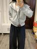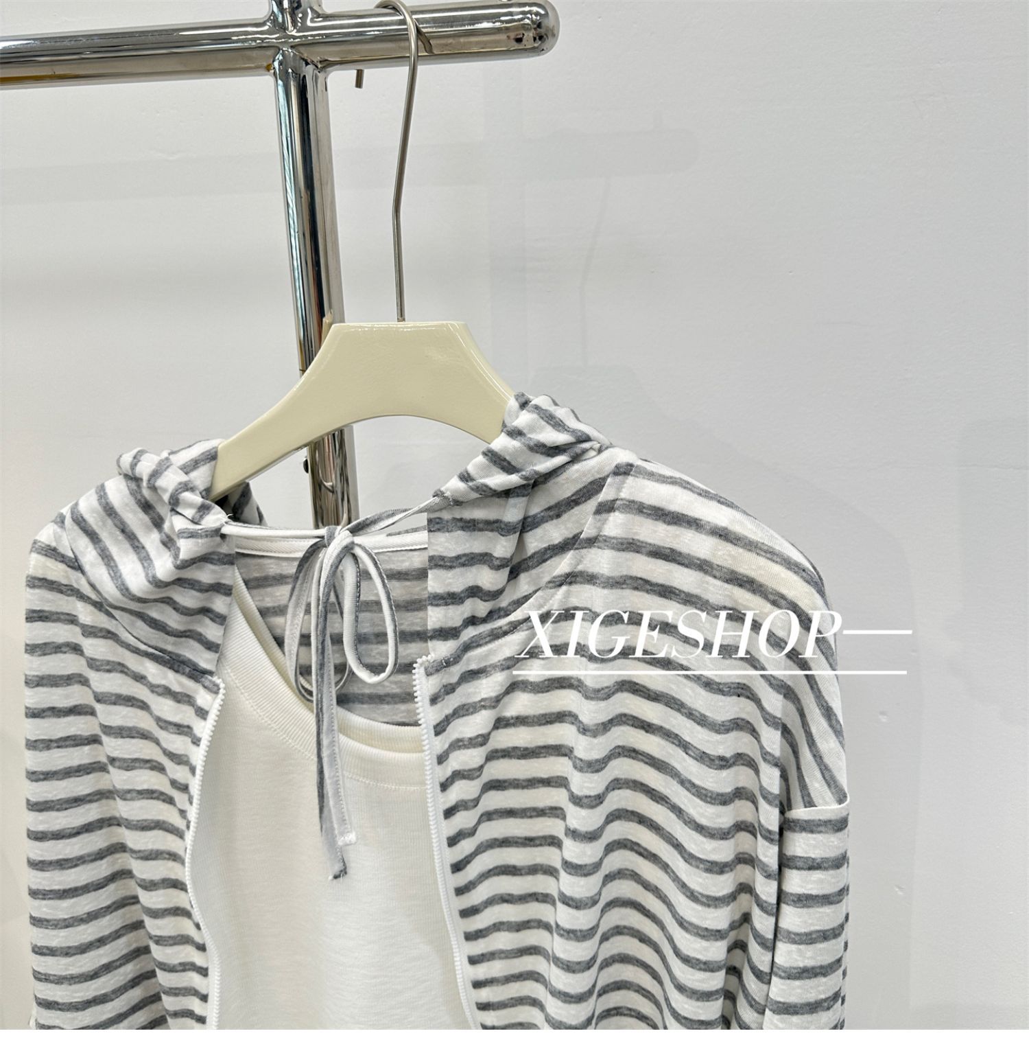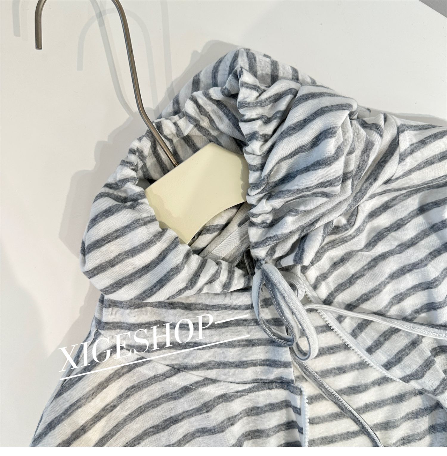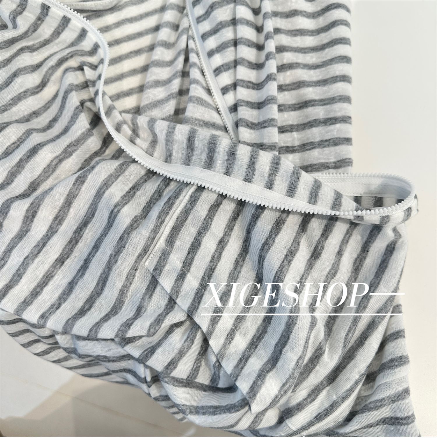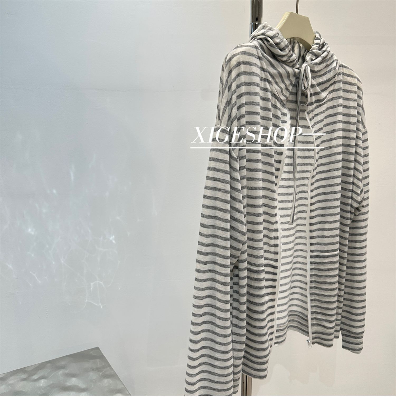 Sudadera con capucha a rayas grises para mujer Otoño temprano Delgada Holgada Perezosa Ajustada Versátil Casual Chaqueta con capucha 2025 Nueva