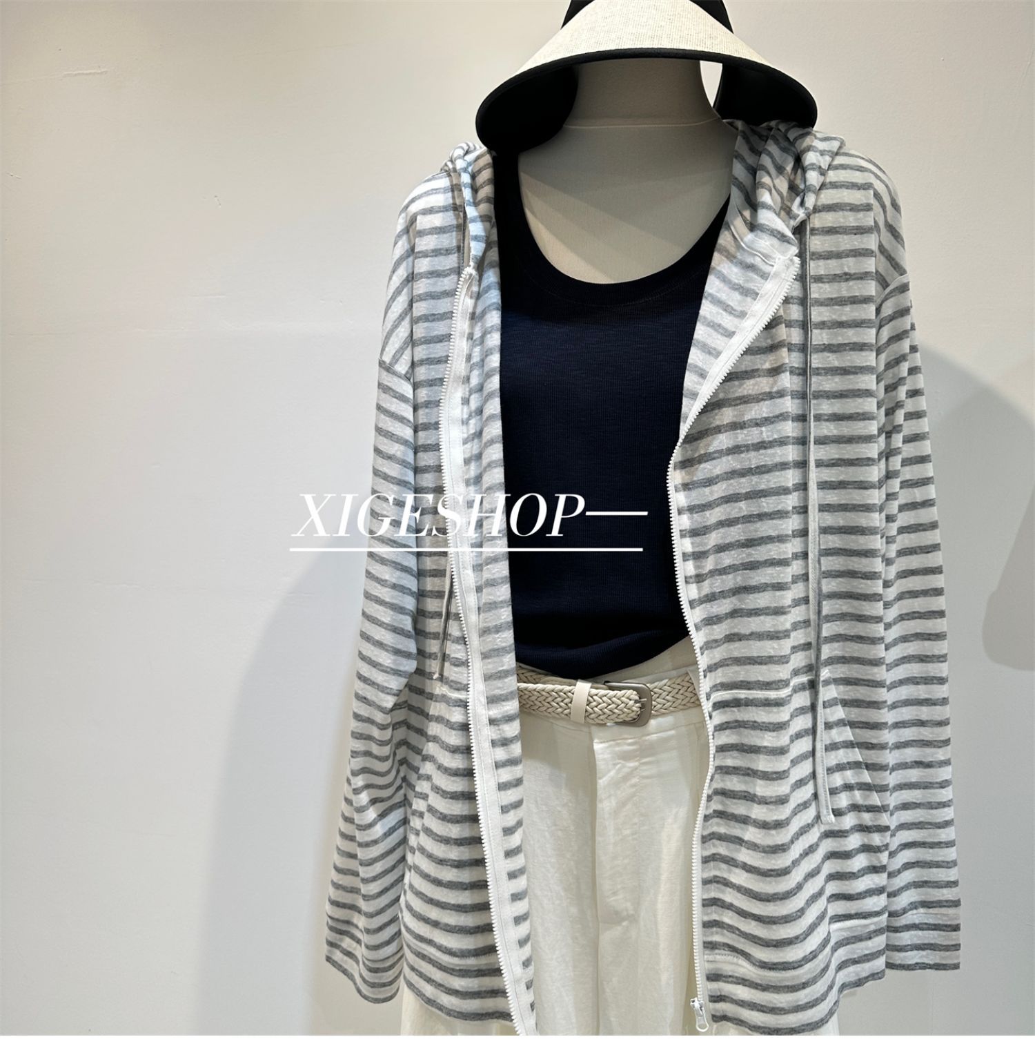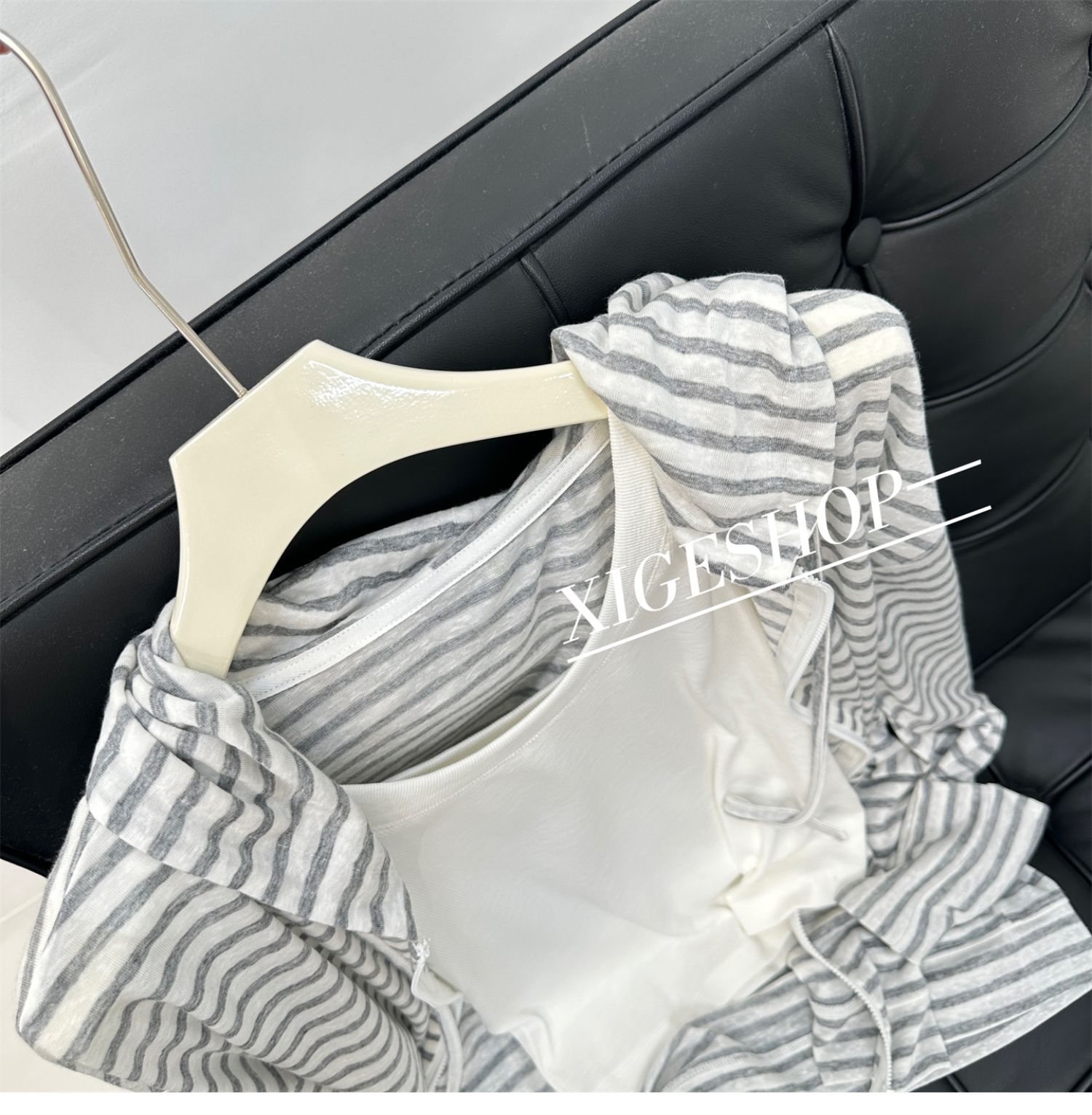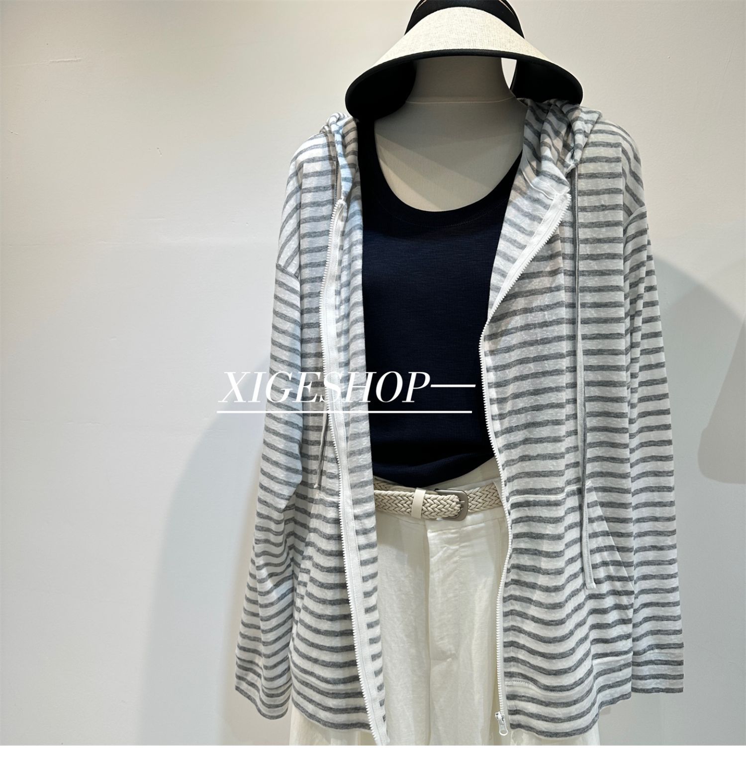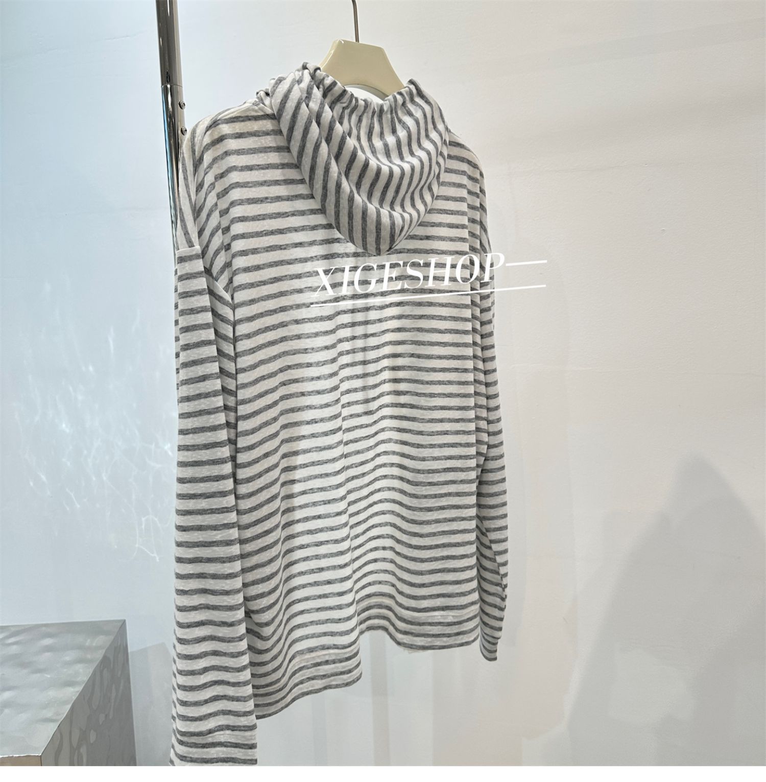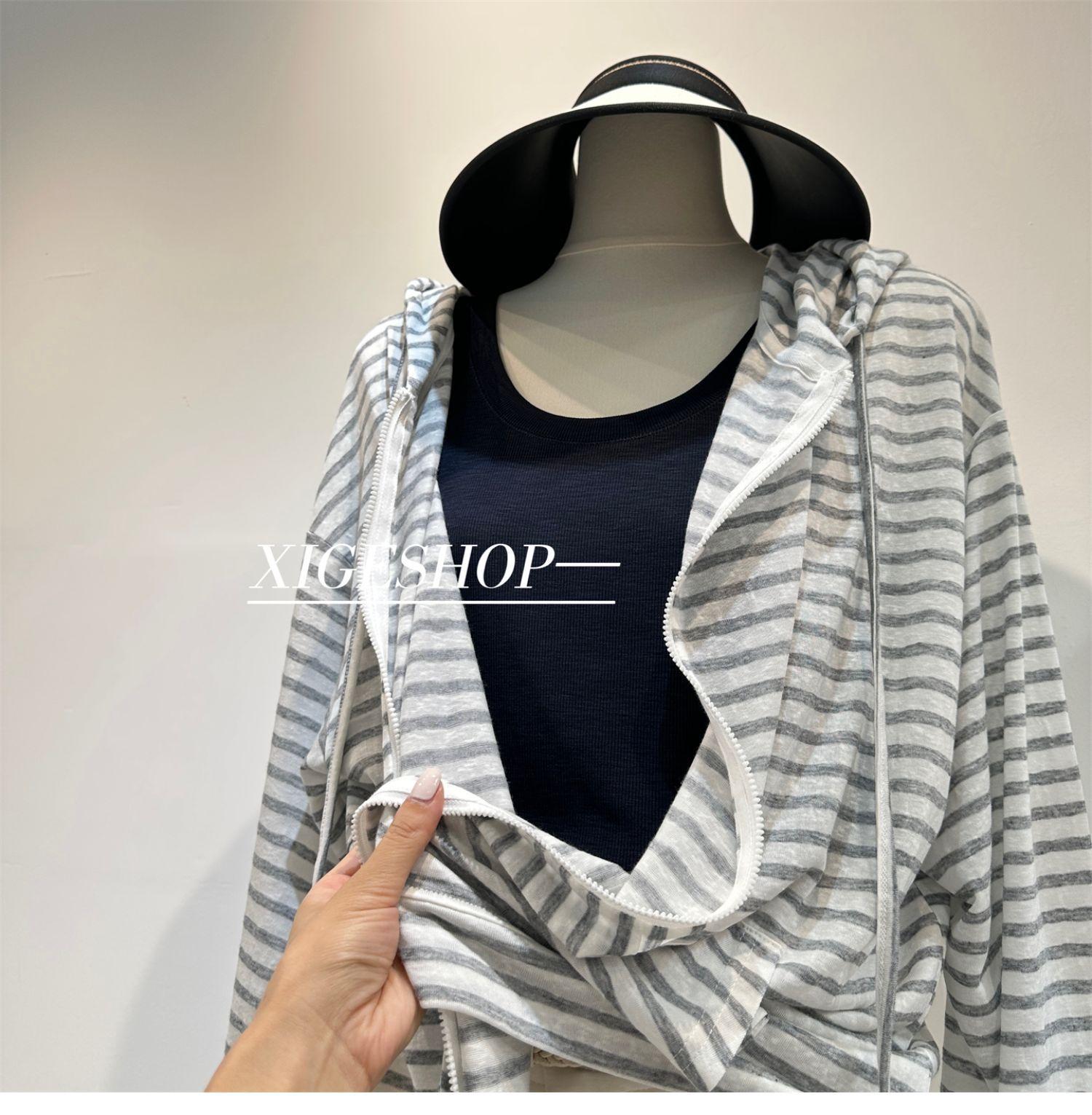 Sudadera con capucha a rayas grises para mujer Otoño temprano Delgada Holgada Perezosa Ajustada Versátil Casual Chaqueta con capucha 2025 Nueva