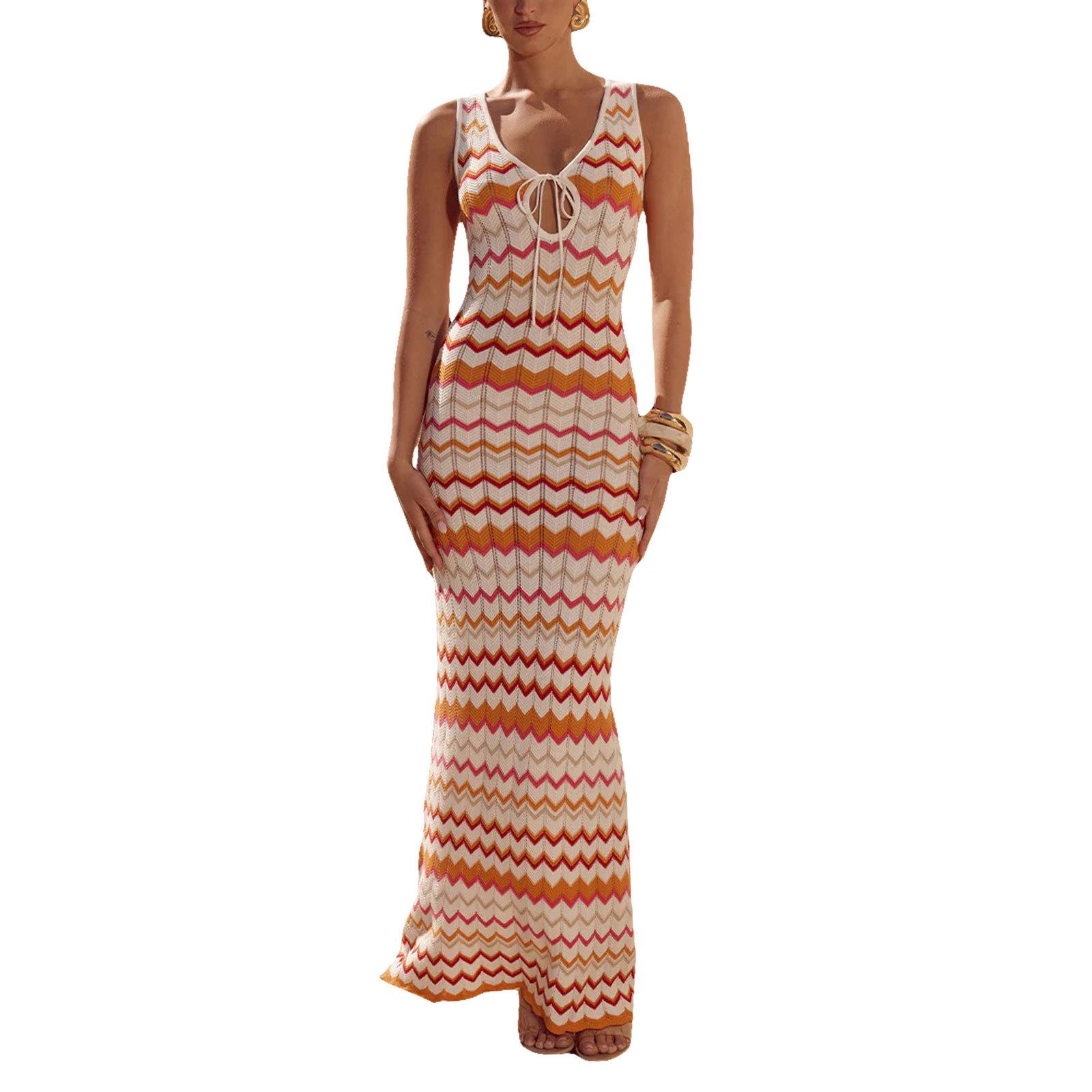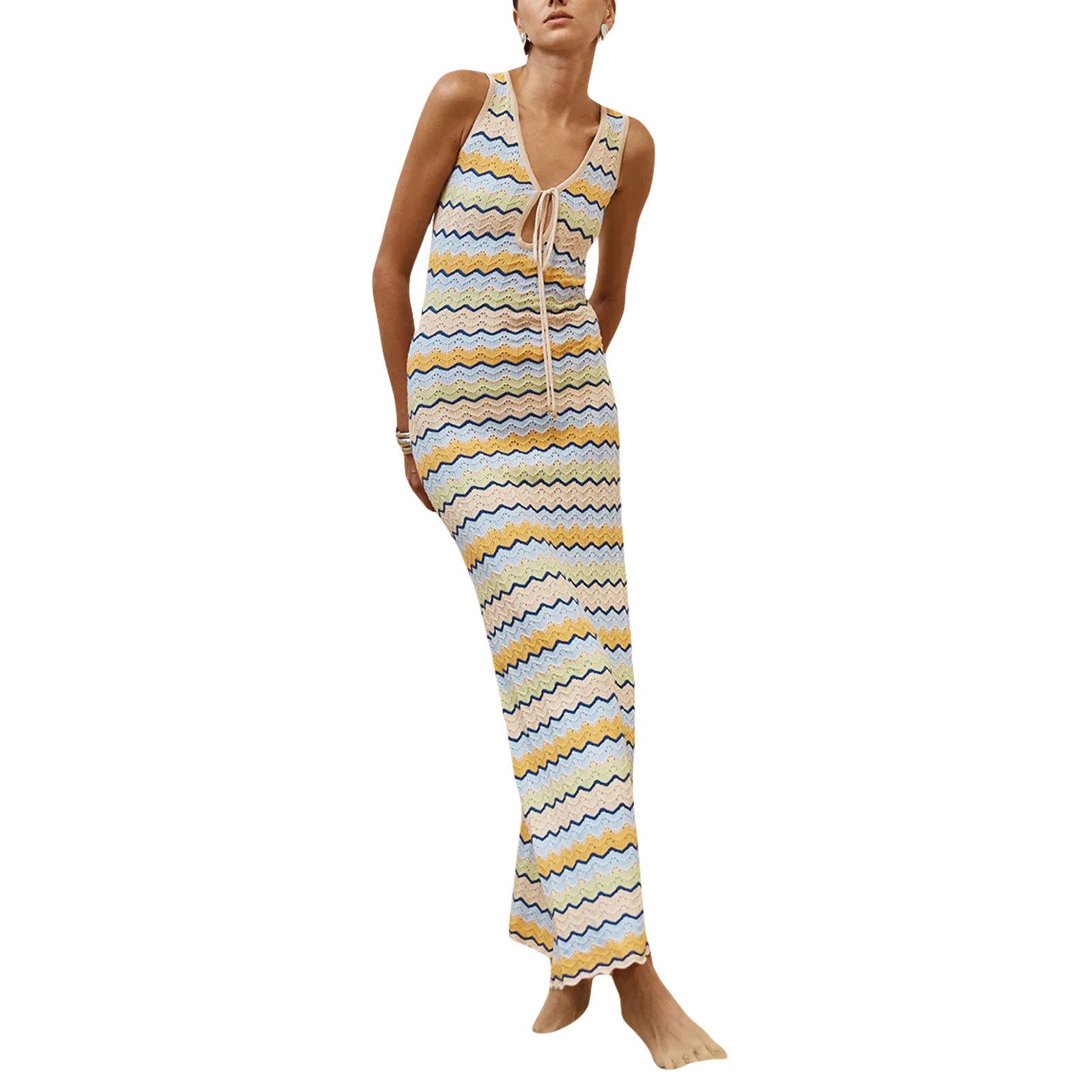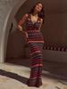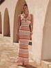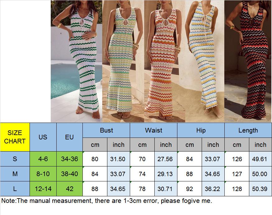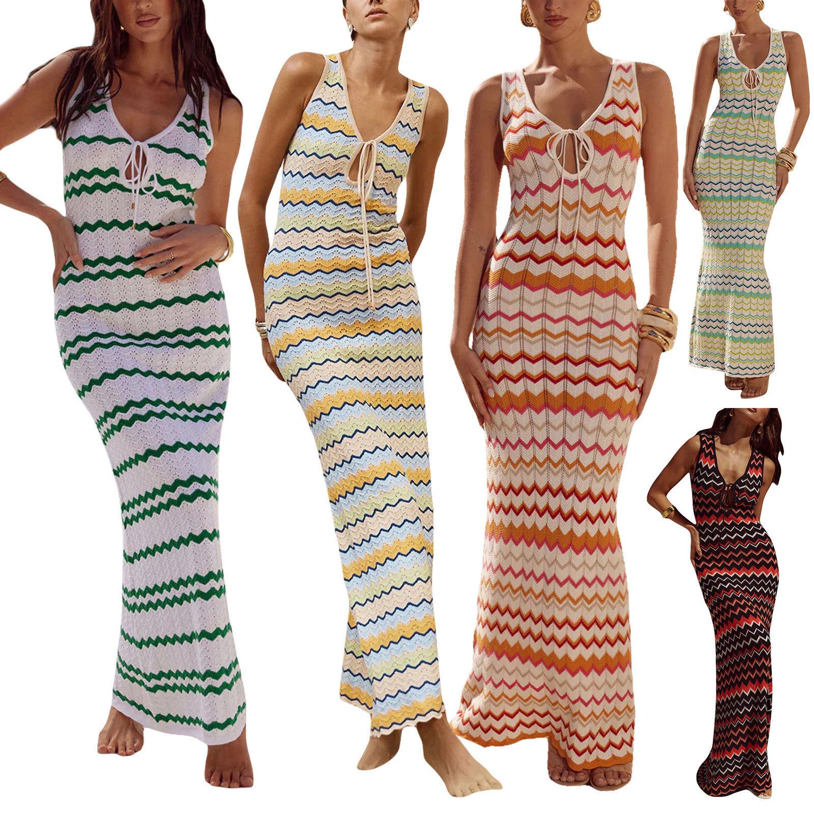 Comercio Exterior Transfronterizo Moda y Cómodo Europeo y Americano Nuevo Falda Larga de Punto a Rayas Sexy Vestido Chaleco Hueco